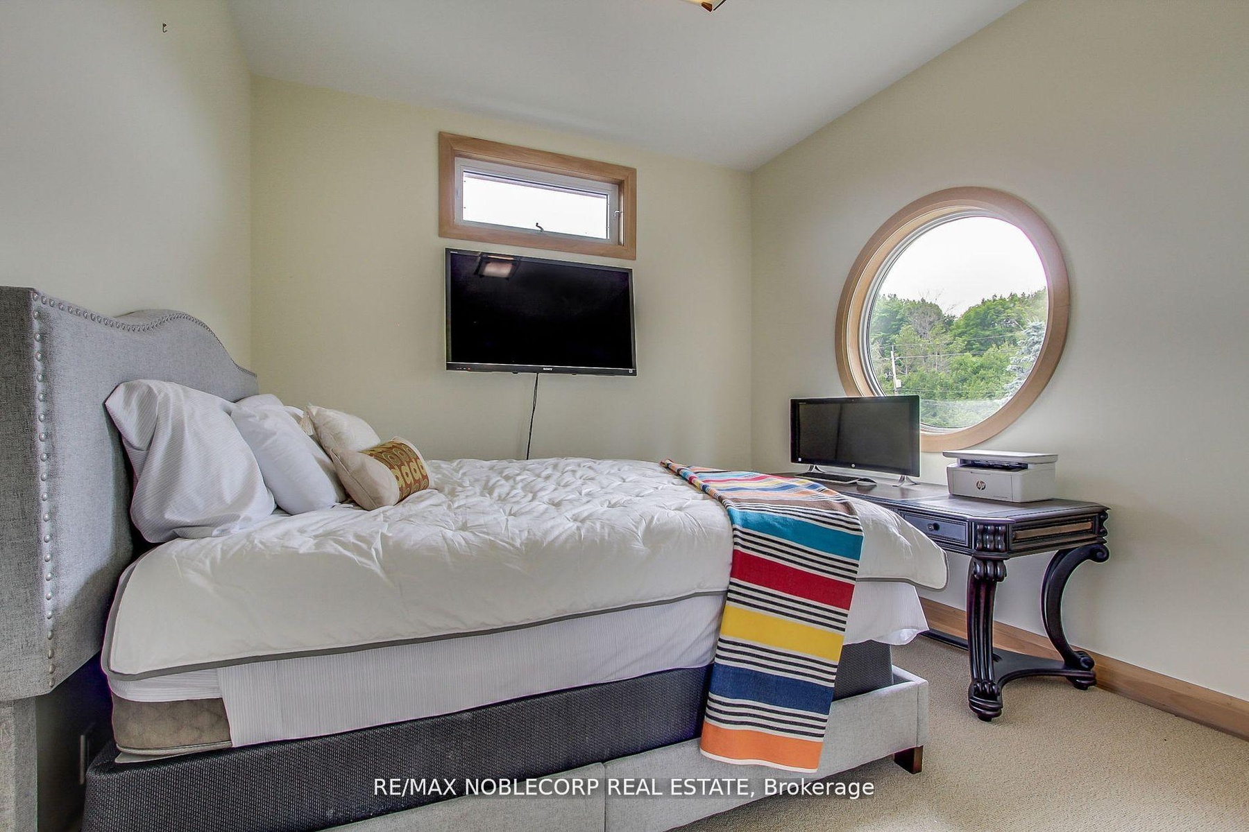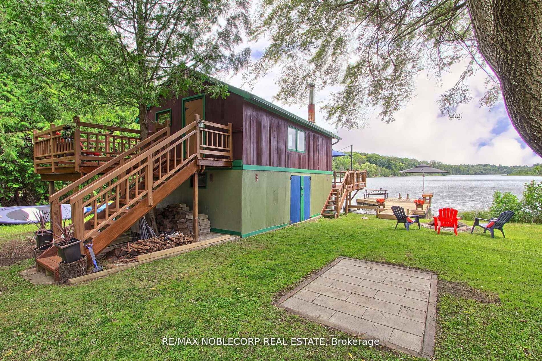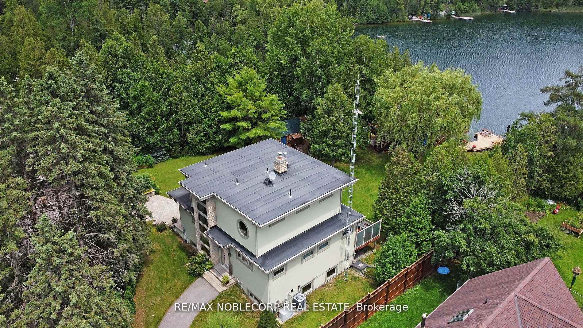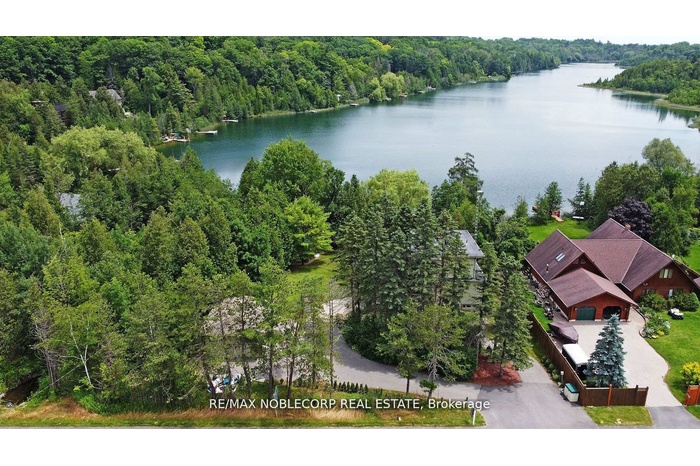 Asian Inspired Chalk Lake Beauty! Over 200K sent in upgrades, including a new fence. With 110 ft of waterfront & sandy beach, a 2-storey freshly painted "cottage," custom-built, 3 Br, 2-story Home w/ Exquisite Views of the Lake. Asian inspired Primary Br 12th century Japanese Castle Doors to the Asian influenced bathrooms, Elf & front entrance, this home is a must-see. Glass Railings and a large, Freshly Painted Deck on the house's waterside ensure No Obstructed Views. Newly Paved Driveway with Space for Ten Vehicles. Top floor: 10 feet high with a Custom Stacked Stone Fireplace in the great room; Main floor Master Br with WI closet and Exquisite Ensuite with Glass Shower and Soaker Tub, 2nd level with 2 Br, Fully Enclosed Tiki Hut, New Dock. Min To 407, Golf, Skiing. Too Many Upgrades to List, this property is an Entertainer's Paradise. Unique home with Meticulous Landscaping and a Lot of Love..
