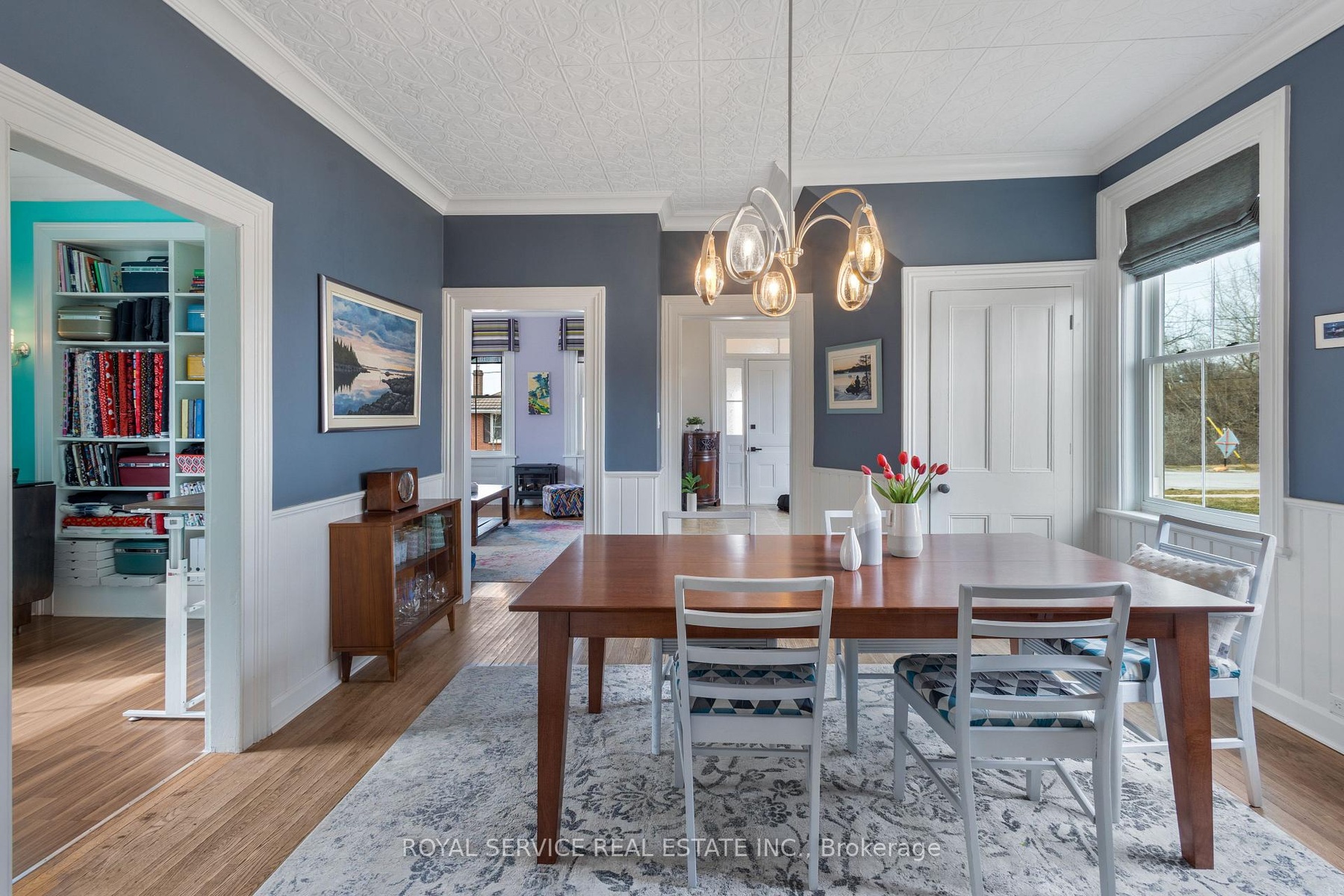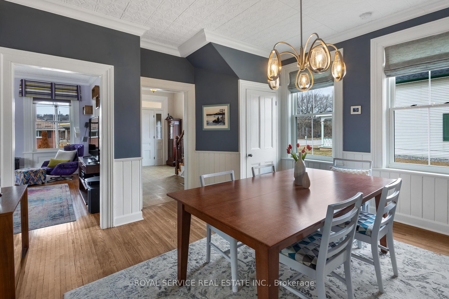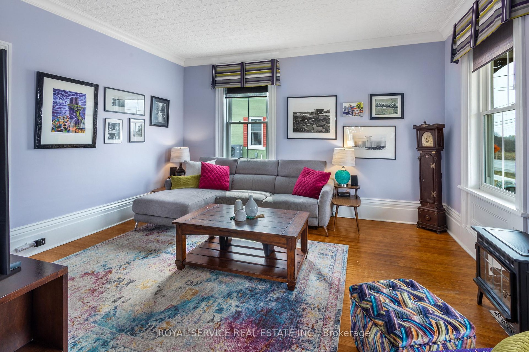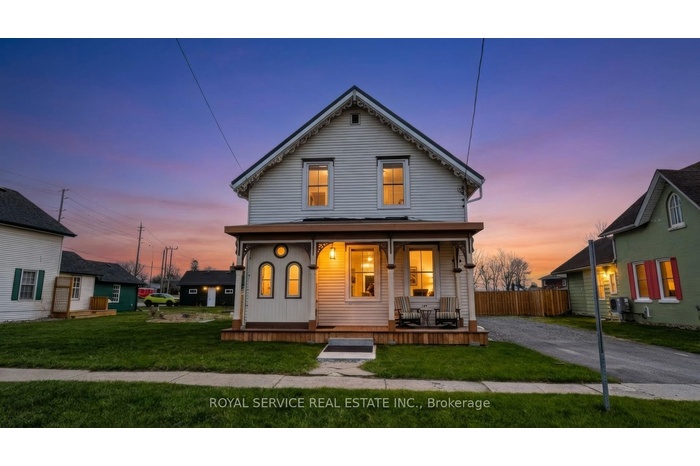 A Piece of Port Hope History - With All the Right Updates. Step into one of Port Hope's storied Captain's Houses and feel the difference that over a century of good bones makes. This two-storey century home sits on a level double lot, just a two-minute walk to the waterfront, 10 minute walk to downtown, and is close to so many amenities. At just under 2,000 SqFt of finished space, there's room to spread out. A sizable front foyer with 9ft ceilings and curved staircase opens into generously sized primary rooms filled with natural light from the large windows. You'll love the historic mouldings and trim throughout the home. The eat in kitchen features granite countertops, original tin ceiling, SS appliances (including a gas stove) and flows well for cooking and gathering. A rear entrance mudroom with main floor laundry and powder room adds everyday practicality, and a new front porch and enclosed portico make for a welcoming arrival. There are three bedrooms upstairs plus a flexible main-floor room that works well as a fourth bedroom, home office, or studio. The large primary bedroom includes a spacious walk-in closet. A full bath with heated tile floors & quartz counters and a powder room serve the household comfortably. The big-ticket items have all been looked after, including metal roof, eavestroughs, windows, mechanicals, and attic insulation, so you can settle in without a long to-do list. Custom window treatments including motorized blinds are all included. This home also offers more storage than you often find in homes of this era. A brand new rear wrap-around deck and fully fenced yard open onto a large, level backyard - a blank canvas ready for your flower beds, gardens or whatever else you can imagine for your space. A home with real history, ready for its next chapter.