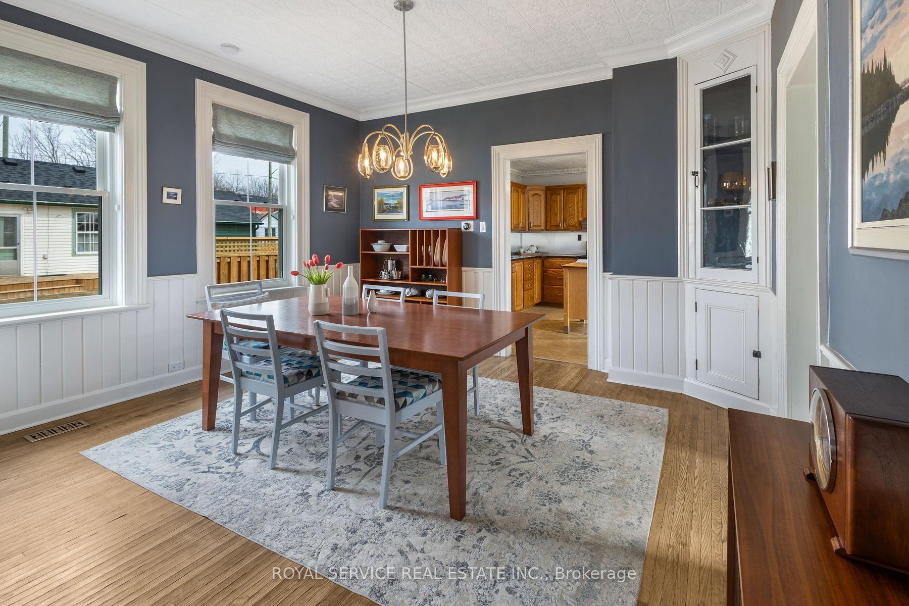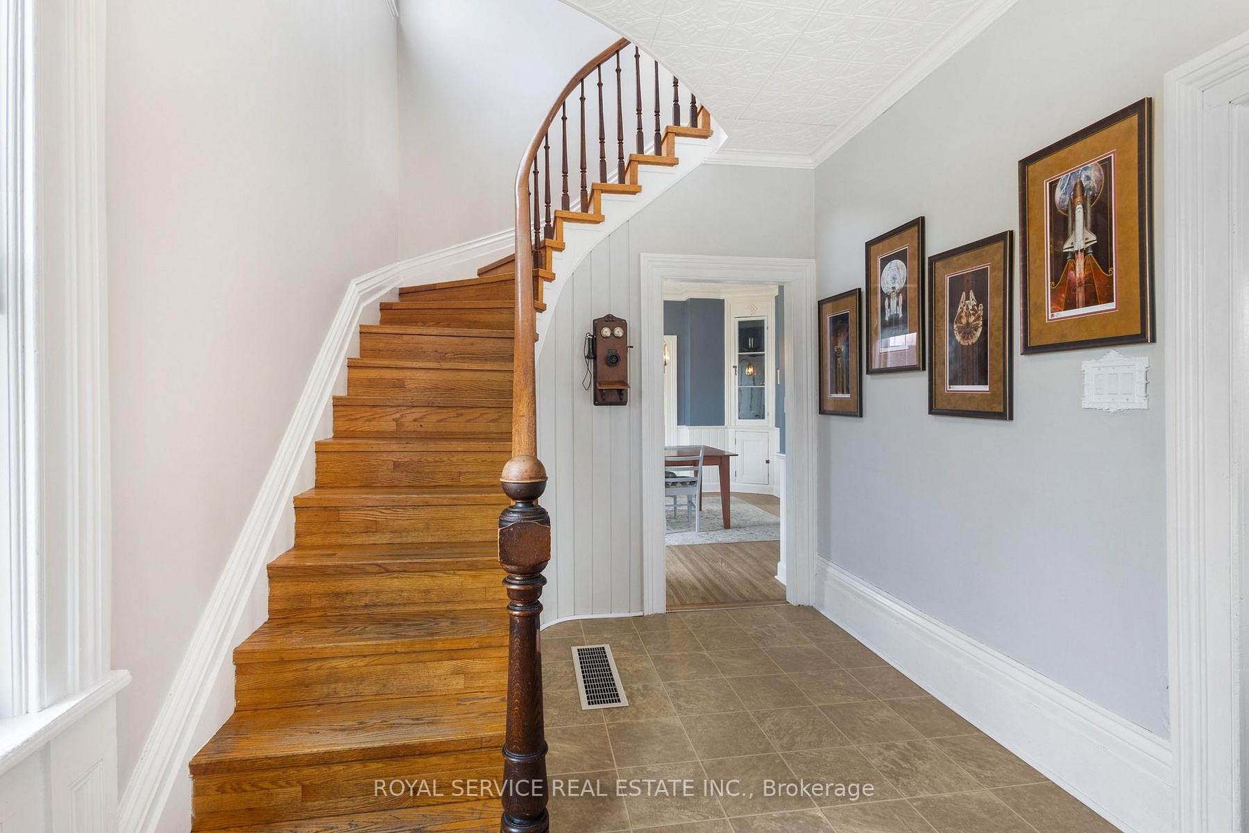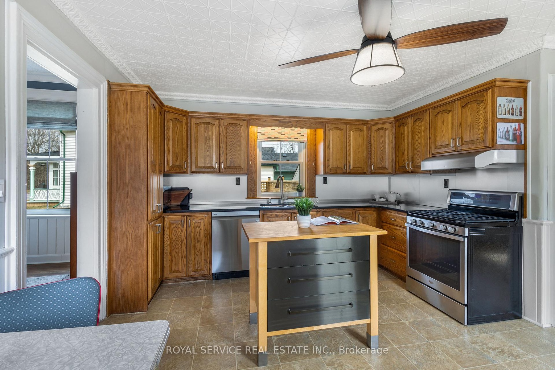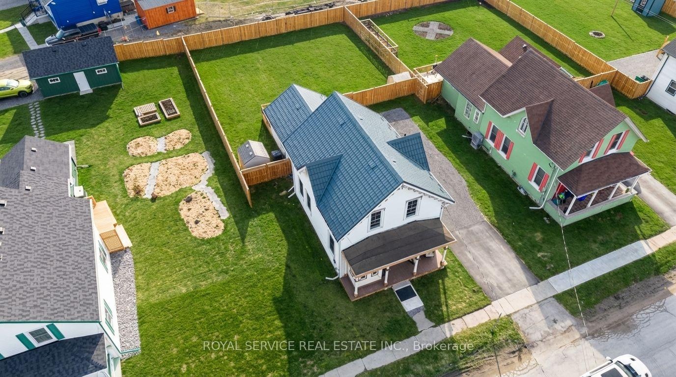 A Piece of Port Hope History - With All the Right Updates. Step into one of Port Hope's storied Captain's Houses and feel the difference that over a century of good bones makes. This two-storey century home sits on a level double lot, just a two-minute walk to the waterfront, 10 minute walk to downtown, and is close to so many amenities. At just under 2,000 SqFt of finished space, there's room to spread out. A sizable front foyer with 9ft ceilings and curved staircase opens into generously sized primary rooms filled with natural light from the large windows. You'll love the historic mouldings and trim throughout the home. The eat in kitchen features granite countertops, original tin ceiling, SS appliances (including a gas stove) and flows well for cooking and gathering. A rear entrance mudroom with main floor laundry and powder room adds everyday practicality, and a new front porch and enclosed portico make for a welcoming arrival. There are three bedrooms upstairs plus a flexible main-floor room that works well as a fourth bedroom, home office, or studio. The large primary bedroom includes a spacious walk-in closet. A full bath with heated tile floors & quartz counters and a powder room serve the household comfortably. The big-ticket items have all been looked after, including metal roof, eavestroughs, windows, mechanicals, and attic insulation, so you can settle in without a long to-do list. Custom window treatments including motorized blinds are all included. This home also offers more storage than you often find in homes of this era. A brand new rear wrap-around deck and fully fenced yard open onto a large, level backyard - a blank canvas ready for your flower beds, gardens or whatever else you can imagine for your space. A home with real history, ready for its next chapter.