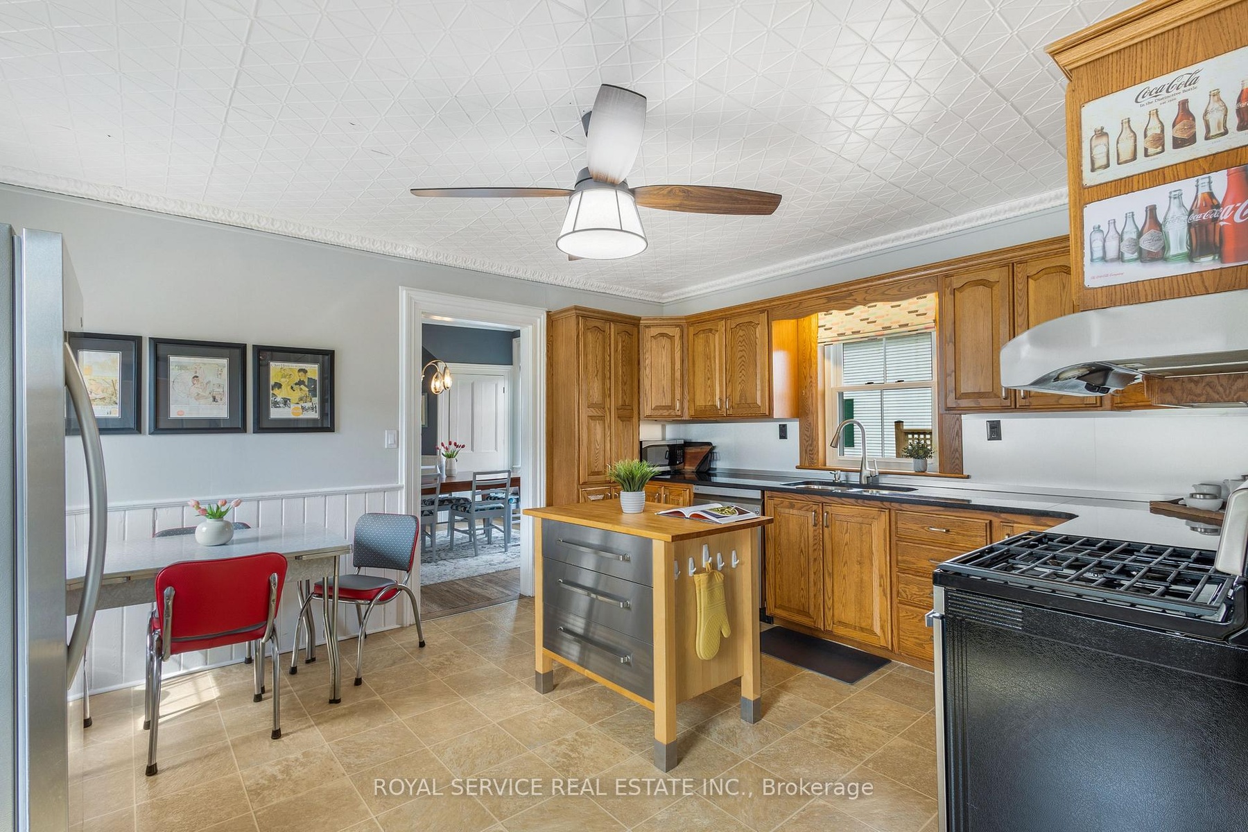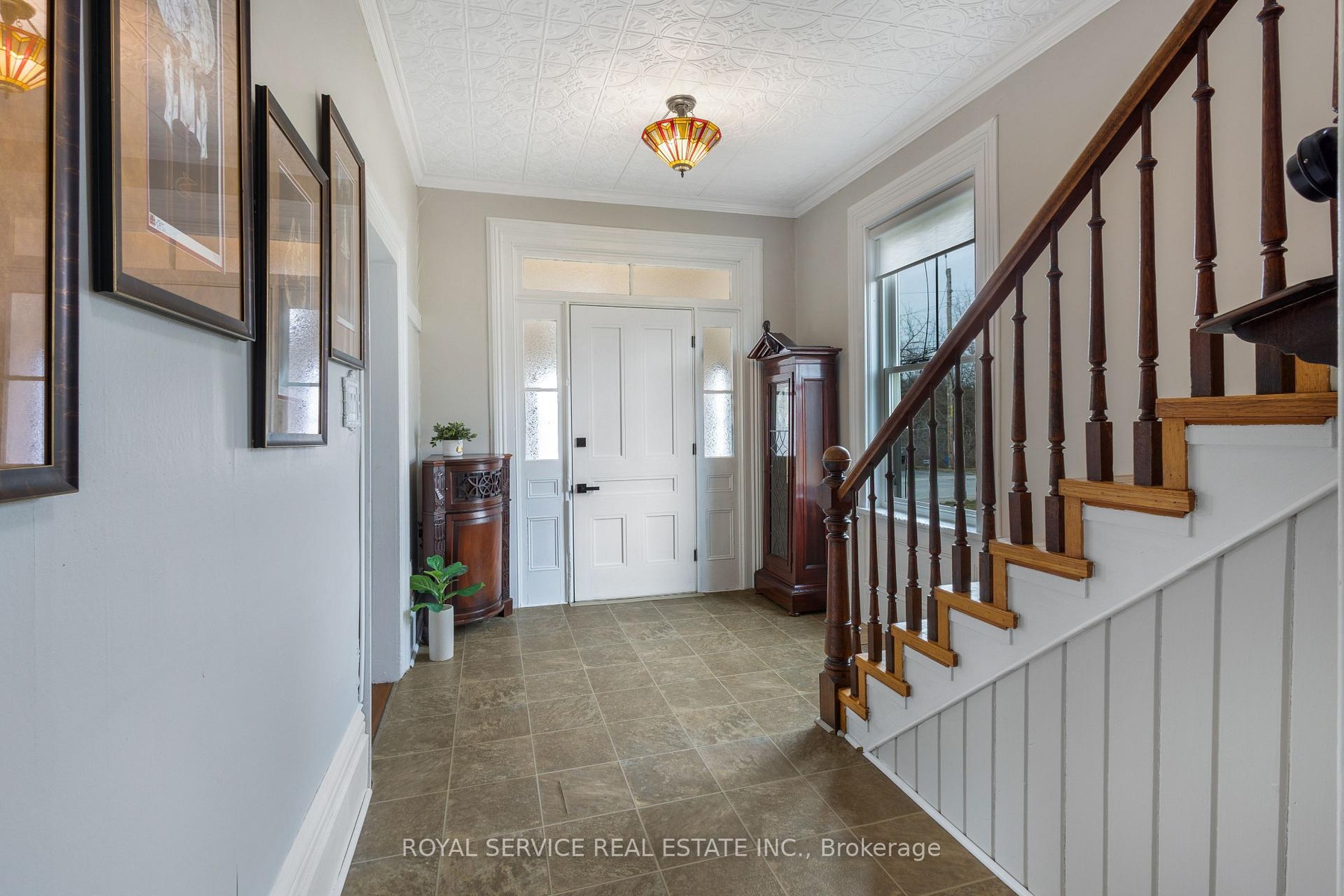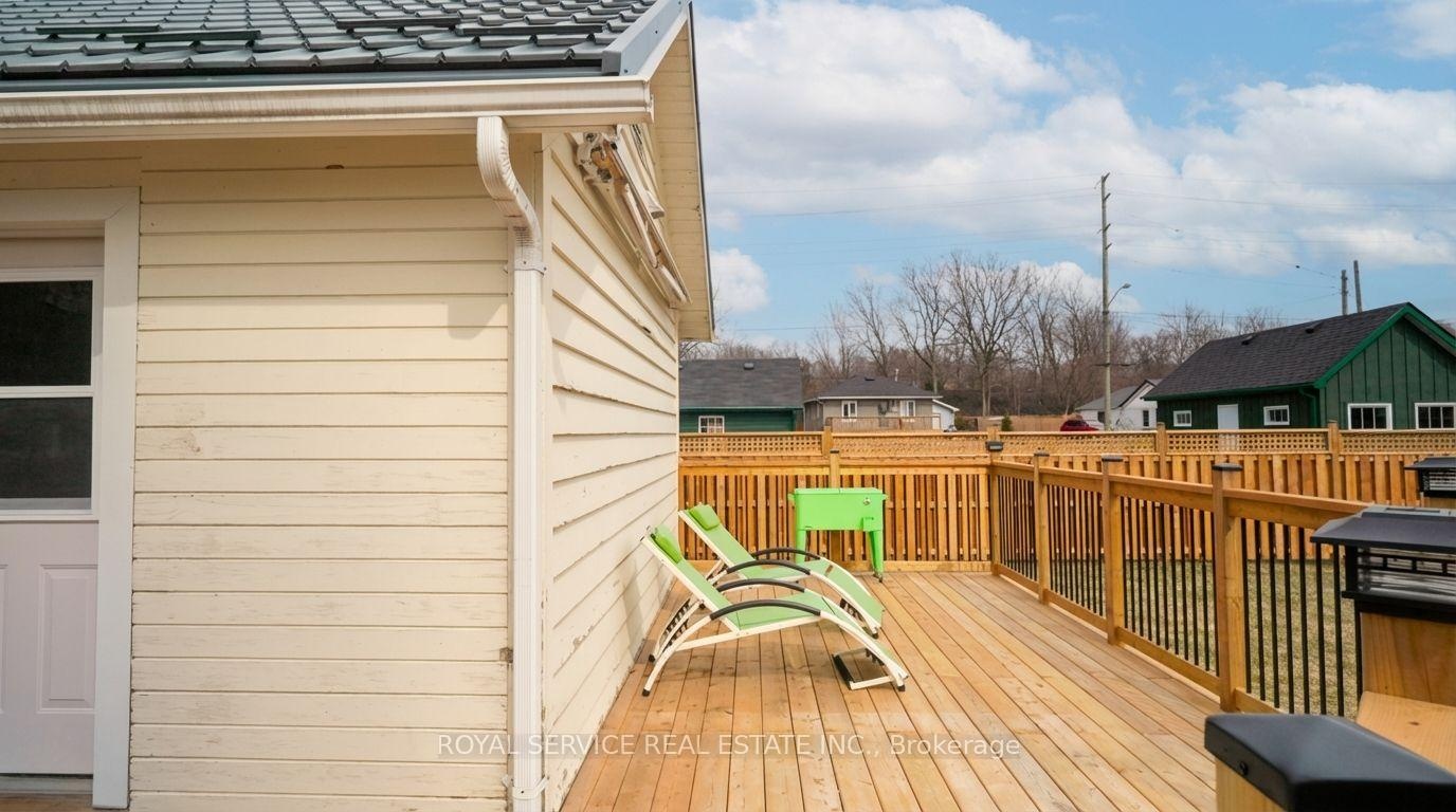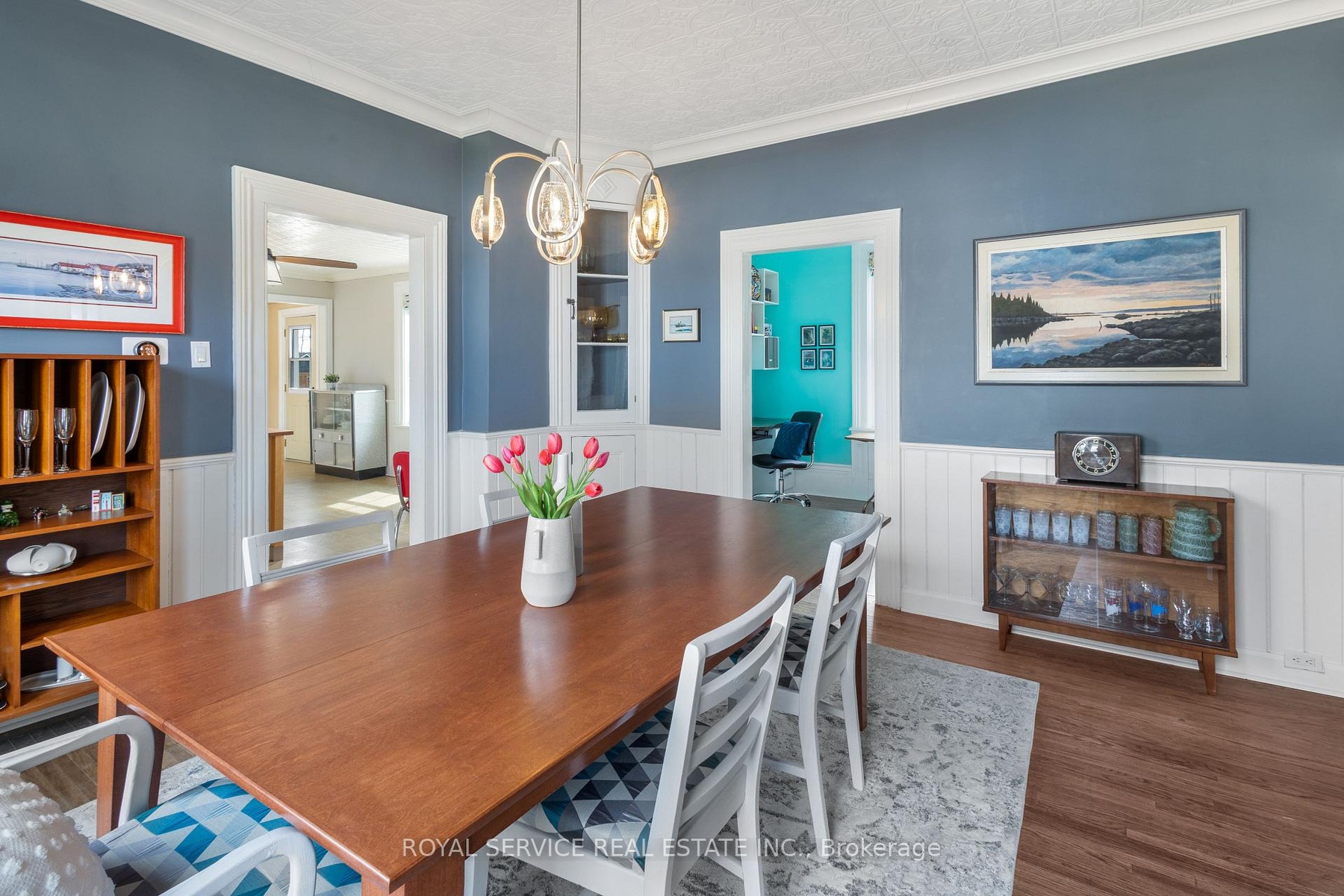 A Piece of Port Hope History - With All the Right Updates. Step into one of Port Hope's storied Captain's Houses and feel the difference that over a century of good bones makes. This two-storey century home sits on a level double lot, just a two-minute walk to the waterfront, 10 minute walk to downtown, and is close to so many amenities. At just under 2,000 SqFt of finished space, there's room to spread out. A sizable front foyer with 9ft ceilings and curved staircase opens into generously sized primary rooms filled with natural light from the large windows. You'll love the historic mouldings and trim throughout the home. The eat in kitchen features granite countertops, original tin ceiling, SS appliances (including a gas stove) and flows well for cooking and gathering. A rear entrance mudroom with main floor laundry and powder room adds everyday practicality, and a new front porch and enclosed portico make for a welcoming arrival. There are three bedrooms upstairs plus a flexible main-floor room that works well as a fourth bedroom, home office, or studio. The large primary bedroom includes a spacious walk-in closet. A full bath with heated tile floors & quartz counters and a powder room serve the household comfortably. The big-ticket items have all been looked after, including metal roof, eavestroughs, windows, mechanicals, and attic insulation, so you can settle in without a long to-do list. Custom window treatments including motorized blinds are all included. This home also offers more storage than you often find in homes of this era. A brand new rear wrap-around deck and fully fenced yard open onto a large, level backyard - a blank canvas ready for your flower beds, gardens or whatever else you can imagine for your space. A home with real history, ready for its next chapter.
