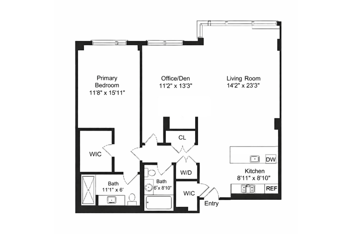 Residence 501 at 26 Broadway is a thoughtfully customized 1-bedroom, 2-bathroom condominium with sweeping Williamsburg Bridge views, expansive living space, and an easy turnkey lifestyle in one of Williamsburg's most sought-after waterfront settings. Originally configured as a 2-bedroom, the home has been reimagined to create a more open and inviting layout, with the second bedroom transformed into a den/office area that enhances the flow for entertaining, working from home, or everyday living. The layout can also be easily converted back to a 2-bedroom if desired.