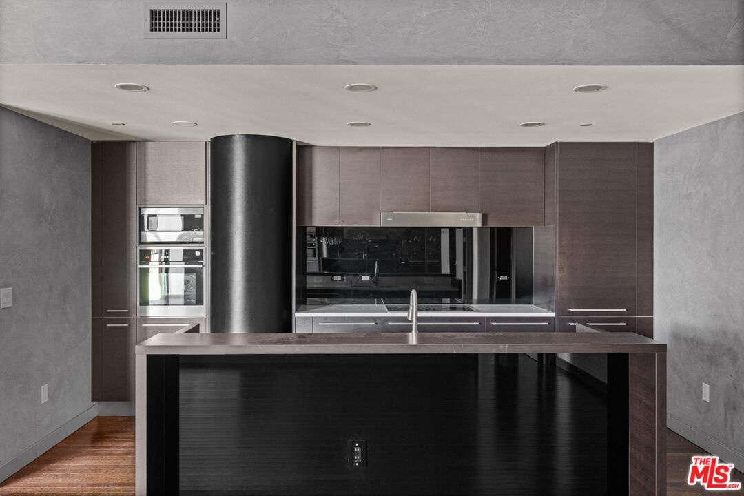 Nearly 2,000 sqft of corner living on the 9th floor of The W Hollywood Residences. Open-plan living and dining with floor-to-ceiling windows pulling in light from two exposures, and a generously sized porcelain-tiled terrace that looks directly at Capitol Records, the Pantages Theatre, and the Hollywood Hills. It's the kind of view your friends will be jealous of. Two bedrooms, each with their own en-suite bath and closet, give you real flexibility with the space. Use the second as a guest room, home office, or media room, it works for all of it. Two full bathrooms and a powder, motorized blackout curtains in the living area and primary bedroom, and two tandem parking spaces. The primary suite is spacious and private, with a Poliform walk-in closet, built-in vanity, and en-suite with dual vanities, soaking tub, and separate walk-in shower. Residents enjoy exclusive access to a recently renovated half-acre rooftop retreat with sweeping views from Downtown to Century City, pool, hot tub, cabanas, two BBQ areas, fire pits, a dog park, fitness center, and screening room. 24-hour concierge, valet and self-parking options, on-site security, and owner perks and discounts across the W Hotel network. Steps from the Pantages Theatre, Capitol Records, Trader Joe's, the new flagship Equinox, and the Vinyl District, home to Mother Wolf, Grandmaster Recorders, Bar Lis, Superba, and more. This is one of Hollywood's most dynamic and culturally rich pockets, and it's all right outside your door. The current aesthetic is bold and dramatic, Venetian plaster walls, floor-to-ceiling mirrors, and statement fixtures throughout. For the right buyer, it's a ready-made look. For someone with their own vision, the bones and the square footage give you serious room to work with. Either way, at nearly 2,000 sqft with this view and this address, the opportunity speaks for itself.