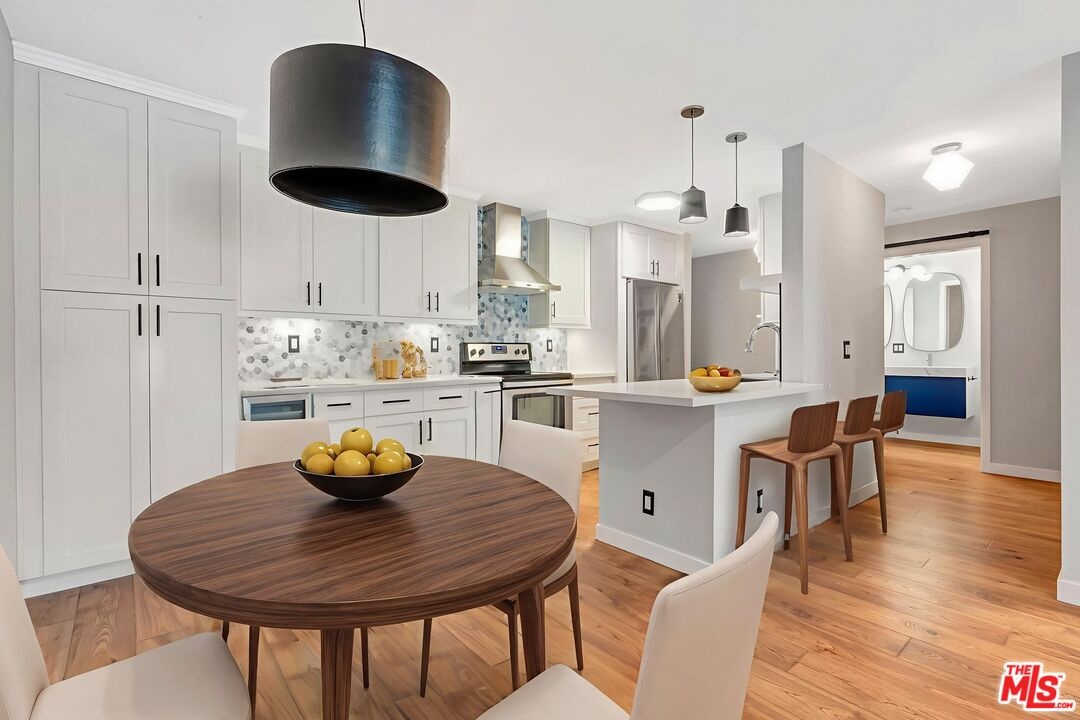 Located in the heart of West Hollywood, this thoughtfully updated 1-bedroom, 1-bath residence offers comfort, style, and convenience in one of the city's most sought-after neighborhoods. The open living and dining area features a new electric fireplace, built-in shelving, and a wet bar, creating an inviting setting for both relaxing and entertaining. The kitchen is designed with all new countertops and cabinetry, stainless-steel appliances, and a wine fridge, blending functionality with modern appeal. A covered patio extends the living space outdoors, while the bedroom includes a walk-in closet and an adjacent updated bath. Additional highlights include an in-unit washer and dryer (a rare feature in this building), newly installed HVAC system, and an upgraded electrical panel. This quiet first-floor corner unit shares only one wall and includes one assigned parking space plus guest parking. West Knoll Condominiums provides a range of amenities including a pool, spa/sauna, sundeck, controlled access, and gated subterranean parking with an additional parking lot for guests. Situated just north of Santa Monica Boulevard and west of La Cienega, this home places you close to everyday conveniences and vibrant local destinations. Enjoy easy access to Trader Joe's and the newly opened Erewhon, as well as the reimagined West Hollywood Park & Dog Park with its Aquatic & Recreation Center offering fitness and open green space, and the storied Sunset Strip, known for its restaurants, music venues, and iconic nightlife.