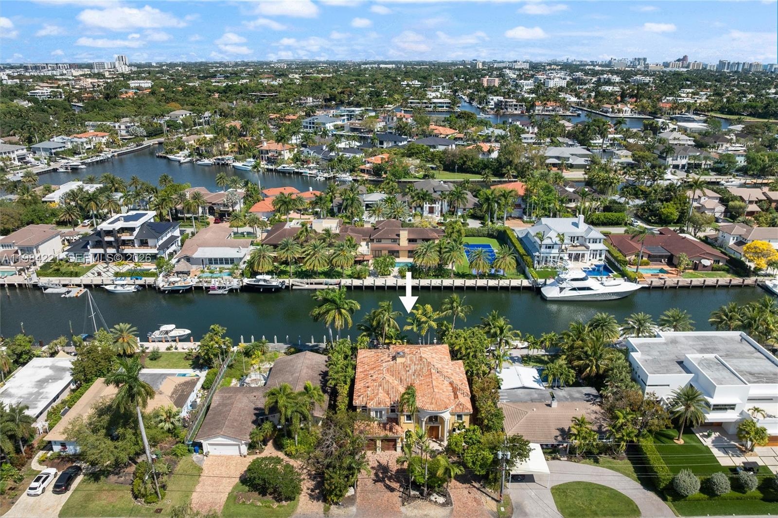 Priced to sell! Custom 4 BR/4.5 BA waterfront residence with pool is located on 75' of deepwater and on one of the neighborhood's finest streets. The dock features a 15,000 lb. boat lift and enjoy fast and easy access with no fixed bridges to Port Everglades Inlet. The residence features a grand double height living room plus dining room, family room, open kitchen, custom travertine flooring throughout, a four sided custom fireplace, lower level guest suite or captain's/staff quarters with private entrance, covered patio with built in BBQ, updated pool/spa, 2 new A/C units and more. The upper level features 2 bedrooms with en-suite baths and a grand primary suite with spa bath, dual closets and office. Close proximity to yacht club, restaurants, beach clubs, Las Olas/Downtown, airport, cruise port and all major roads.