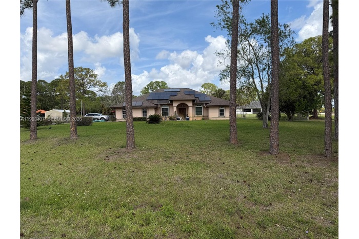 WONDERFUL PROPERTY WITH 4 BEDS AND 3 BATHS LOCATED IN THE ACREAGE. COUNTRY LIVING IN THE CITY WITH A 1.54 ACRES FULLY FENCED YARD. NEAR MAJOR ROADS AND HIGHWAYS, NEW PUBLIX SHOPPING PLAZA WITH NEW STORES AND RESTAURANTS JUST A FEW MINUTES AWAY. MANY UPGRADES INCLUDING SOLAR PANELS MAKING YOUR ELECTRIC BILL ABOUT $32 A MONTH, WATER HEATER HAS OWN SOLAR PANEL, IMPACT WINDOWS WITH ACCORDION SHUTTERS, AUTOMATIC SPRINKLERS, ROOF INSTALLED 2023, OPEN FLOOR PLAN WITH PLENTY OF SUNSHINE COMING IN, GREAT FOR FAMILY OR ENTERTAINING. CALL TO SHOW. NO HOA.