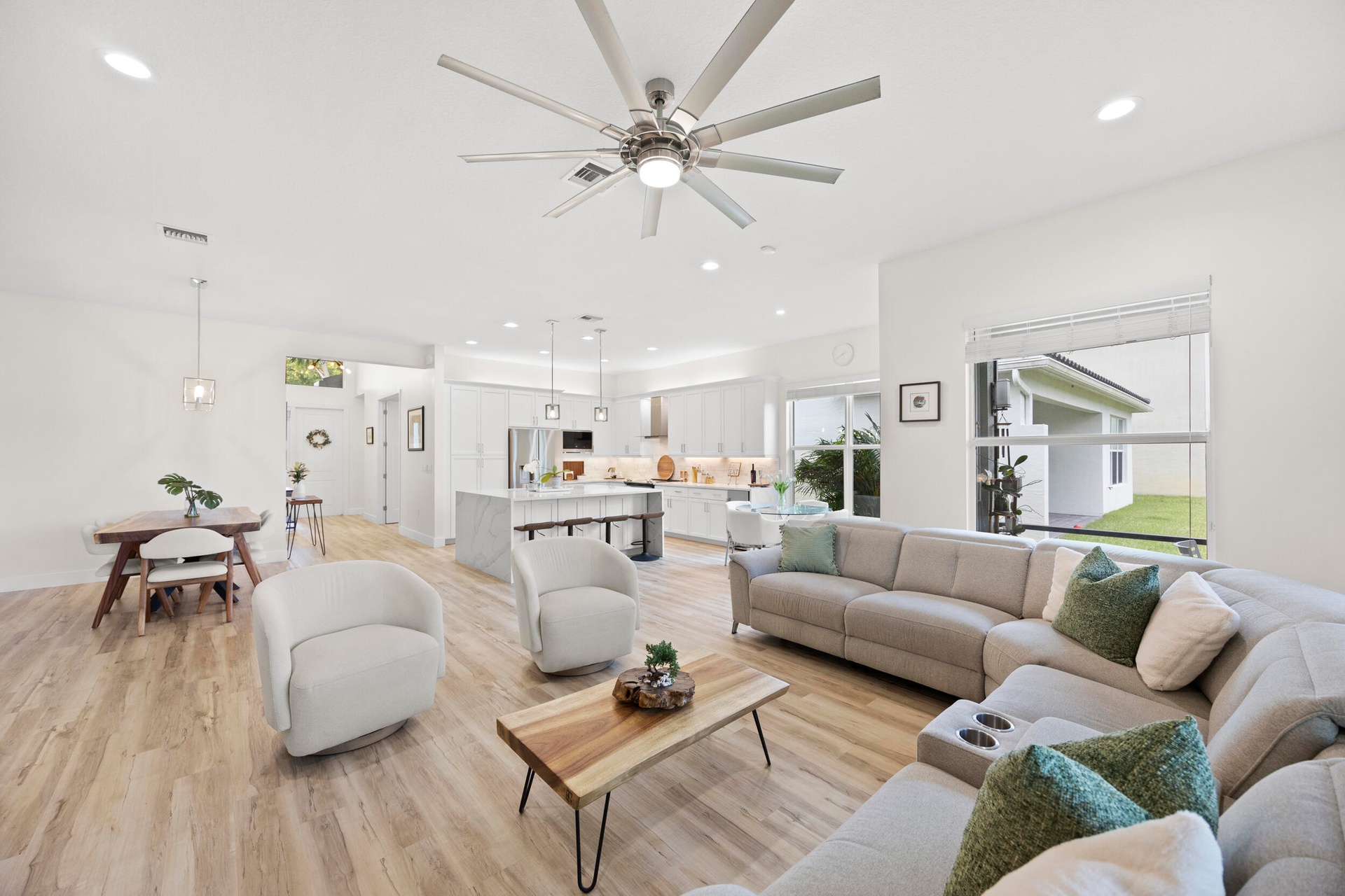 Welcome to this stunning, fully renovated one-story lakefront home in the highly desirable Dakota community of West Delray Beach Florida. This 3 bedroom, 2.5 bath move in ready residence sits on a premium lot with tranquil water views and offers a clean, modern design with high-end and modern finishes throughout. The open floor plan concept features a stunning expanded kitchen with white shaker cabinets, quartz countertops with waterfalls, custom backsplash, upgraded stainless steel appliances, wine/beverage center, vented hood and a gorgeous Calacatta Gold quartz oversized island with extra storage. Additional custom pull outs have been added to the pantry and all bottom kitchen cabinets for ease of use. MORE... The open living areas are bright and inviting, with LED lighting throughout, newer fixtures, and fresh interior paint (2025). Sliding doors lead to a screened patio with manual shades, ideal for relaxing while enjoying the lake view. Enjoy a formal dining room, dinette, and extra sitting by the large kitchen island. The ample & recently landscaped east facing backyard is perfect for your own custom pool (home has been pre-wired for a pool addition). The primary suite offers a water view, 2 large custom closets and a modern & bright renovated spa inspired bathroom with Calacatta quartz tops, roll in shower, floor to ceiling wall tile and new lighting and tile flooring. Secondary bedrooms also feature custom closets, and all bathrooms include new quartz countertops, upgraded fixtures and bidets. Additional highlights include a custom laundry room with extra cabinetry, quartz top and sink, plus a fully finished 2 car garage with epoxy floors, built-ins, and overhead storage. Major exterior upgrades provide peace of mind, including a 2018 roof, full hurricane impact windows, impact garage door, AC and water heater (2018), gutters, and smart home features like Ring cameras and fiber optic internet . Located in a 24-hour guard-gated community, Dakota offers resort-style amenities including a clubhouse, fitness center, pools, new covered playground, BBQ area, indoor and outdoor basketball, tennis, pickleball, and more. Dakota is an all age community with many planned activities throughout the year and a low monthly HOA fee. Located in Palm Beach County school district with highly rated public and private schools, this home combines luxury, comfort, and convenience in one of Delray Beach's most sought-after communities. 6 miles to east Atlantic Avenue for fine dining experiences and nearby beaches. ***Investor friendly. Lease on day 1 with a 7 month minimum.***