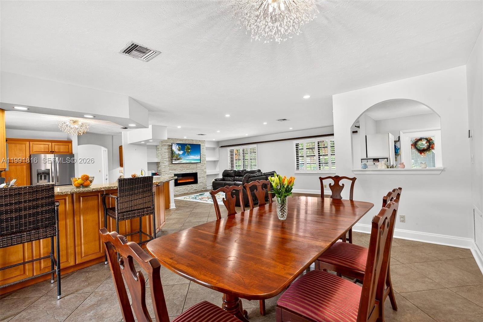 Step into your backyard oasis featuring a sparkling pool and generous space to relax, play, or entertain year-round. Inside, enjoy a beautifully updated oversized kitchen with a dedicated coffee bar, a large dining area, and a spacious living room centered around a cozy fireplace. The home also offers generously sized bedrooms and three convenient cabana baths for seamless indoor-outdoor living.