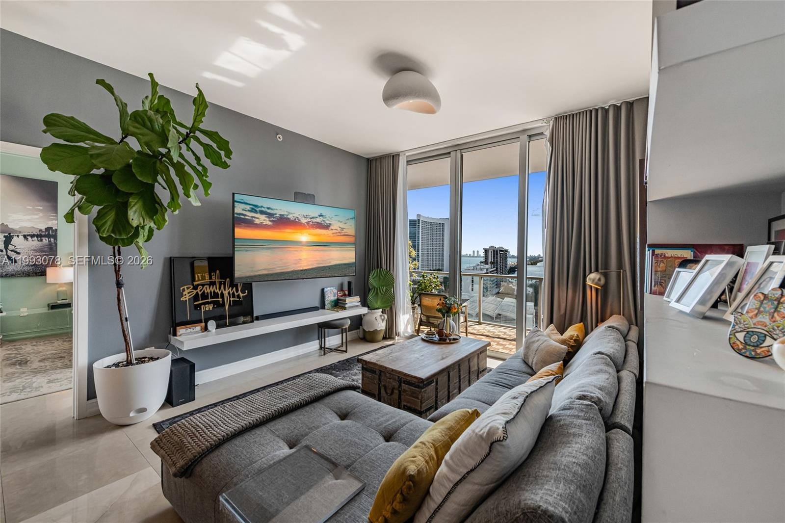 Rare, exceptional opportunity in Midtown: a fully upgraded 2-bed 2.5-bath residence in 2Midtown, offering elevated living with expansive, unobstructed bay and ocean views, and the ever-changing skyline of Edgewater and South Beach. This residence features a tastefully remodeled kitchen with porcelain backsplash and custom handles, stainless steel appliances, new dishwasher and stovetop, new in-unit stacked washer/dryer, enhanced ceiling lights, additional spotlights in the kitchen, walk-in closet buildouts, and wood deck balcony flooring that connects all bedrooms and living spaces. The layout is a split floor plan, for extra privacy in each of the bedrooms. A true turn-key residence, and stand-out opportunity in the building; option available to purchase this residence fully furnished for an additional amount. Live in the heart of Midtown with major shops, groceries, services at your doorstep. This home is more than just a condo — it's elevated Midtown living, priced below market value. Truly a must-see!