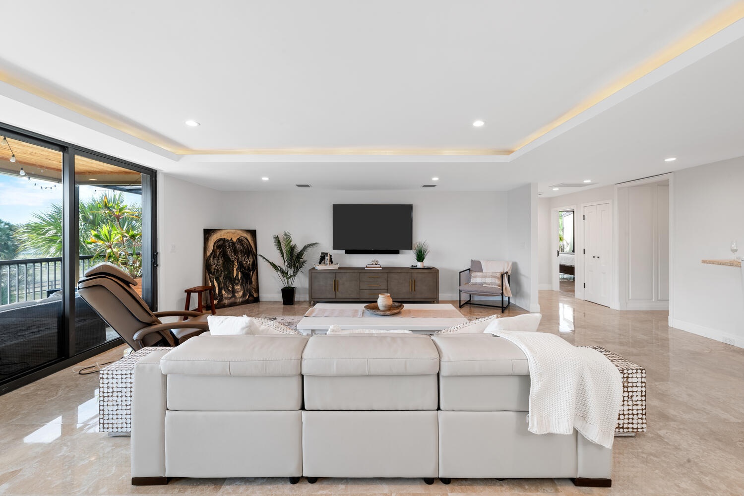 Perched above the prestigious Polo Club, this exceptional Polo Island penthouse residence offers a rare sense of privacy, prestige, and breathtaking views overlooking the lush, tropical grounds and the world-class Global Dressage show grounds. Accessible by private elevator, the four-bedroom, four-bath layout is designed for refined living, featuring new impact glass throughout, new LED lighting, and thoughtfully curated upgrades. The expansive wraparound balconies envelop the entire residence, creating an unparalleled indoor-outdoor lifestyle, perfect for entertaining guests, hosting sunset gatherings, or simply relaxing and soaking up the Florida sunshine while enjoying sweeping vistas and tranquil surroundings from every angle. Available off-season only, May to October for $7,500/mo.