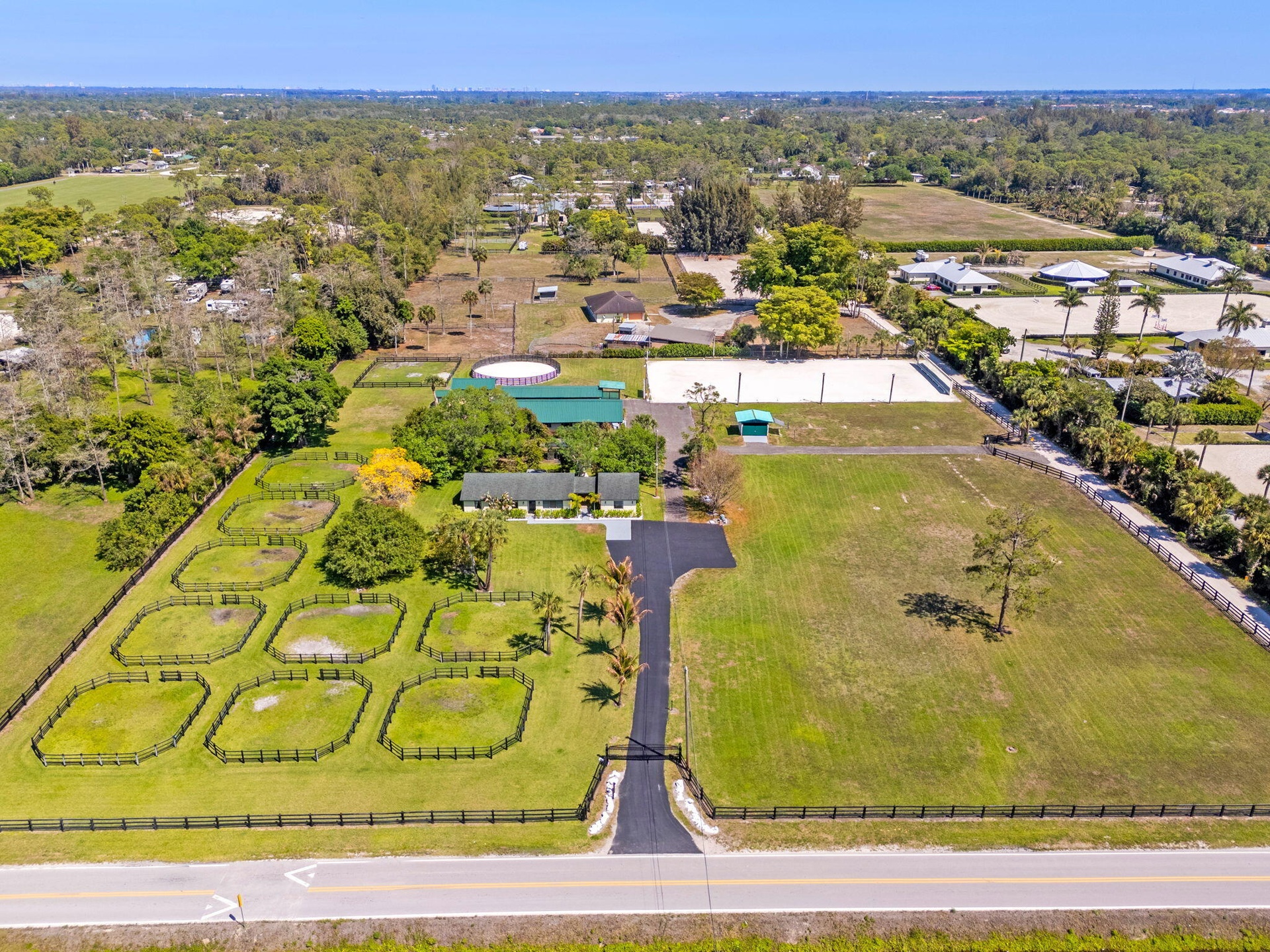 Curb appeal and property features/layout will be the best you see on the market! Location is PERFECT as you are just a straight drive to Wellington and short distance to the Wellington showgrounds! You almost can't get any closer than this without being right in Wellington! Absolutely Stunning property featuring a completely remodeled 3 bed / 2 bath main home and a 1 bed/1 bath apartment with a full kitchen! Stunning 200 x 90ft riding arena with GGT footing, LED lighting and dressage mirrors! The property was designed with every detail in mind and with the idea of future expansion. Currently you have two separate barns and both are in pristine condition for a total of 13 stalls, two ac tack rooms and feed rooms. Enjoy your hobby and run your business with this extraordinary property!