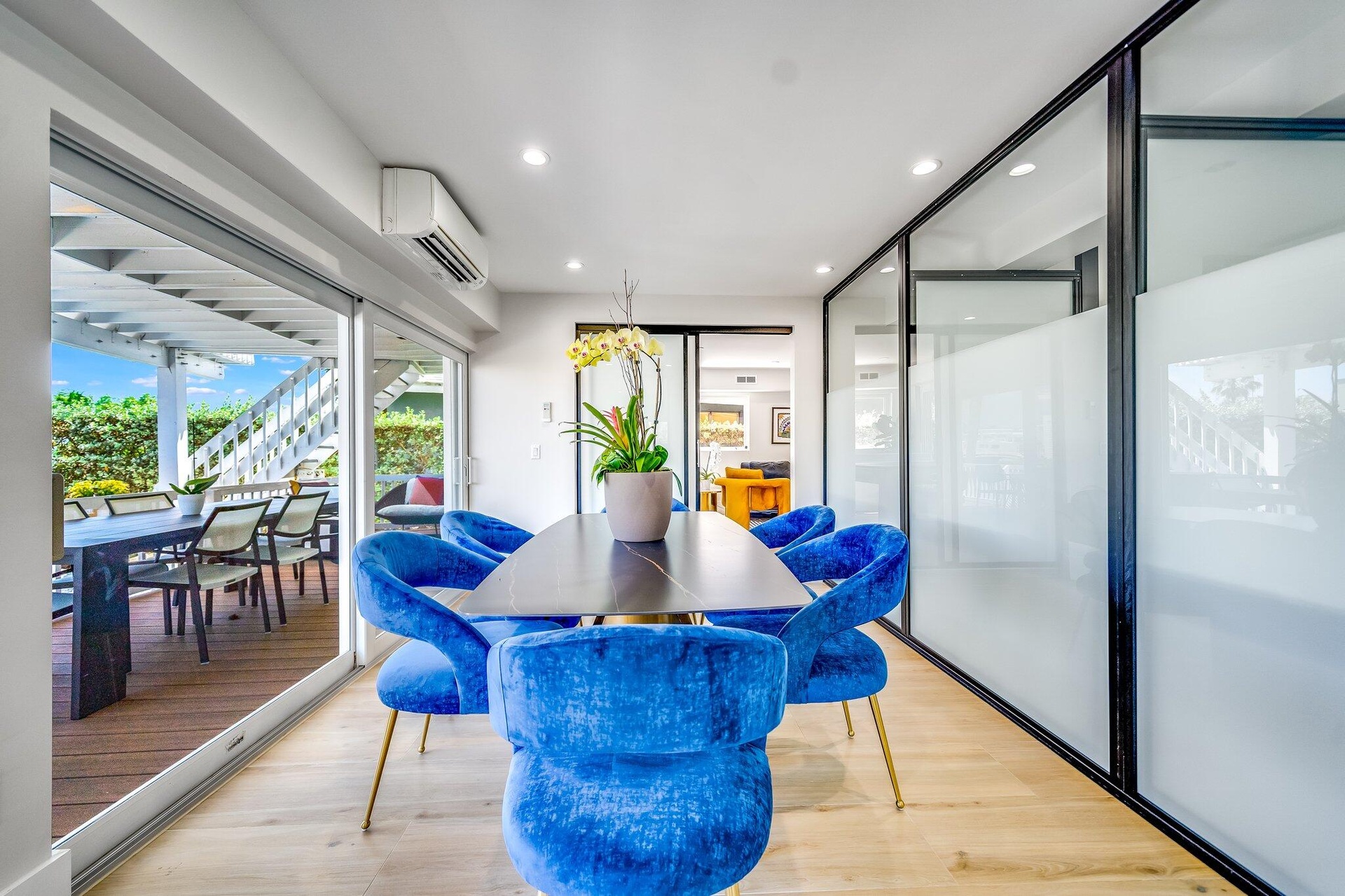 The first floor is commercial, currently configured as three bays, including a beautifully remodeled waterfront suite with modern glass partitions, a waterfront conference room, private offices, and upgraded finishes throughout. The bays can easily be combined into a larger contiguous commercial space, either two suites together or all three, offering exceptional flexibility for a variety of business uses. The first floor also includes three restrooms (one ADA compliant) and a covered 320 SF private waterfront deck.