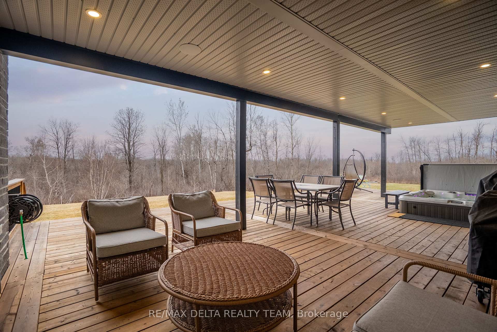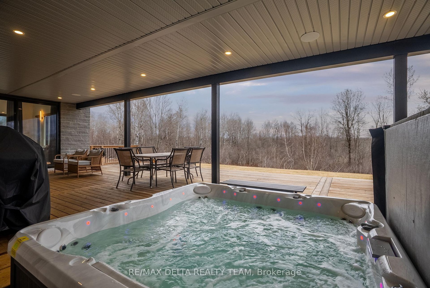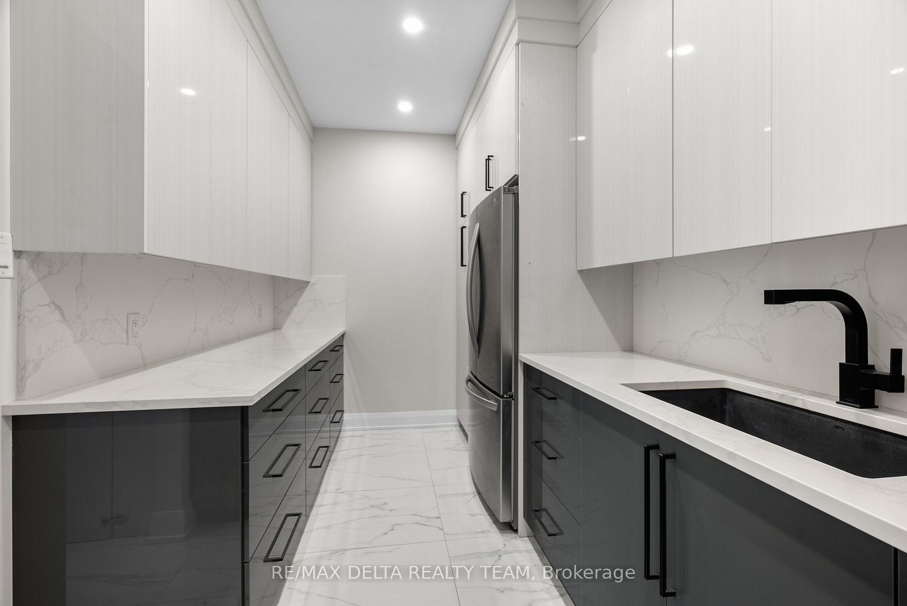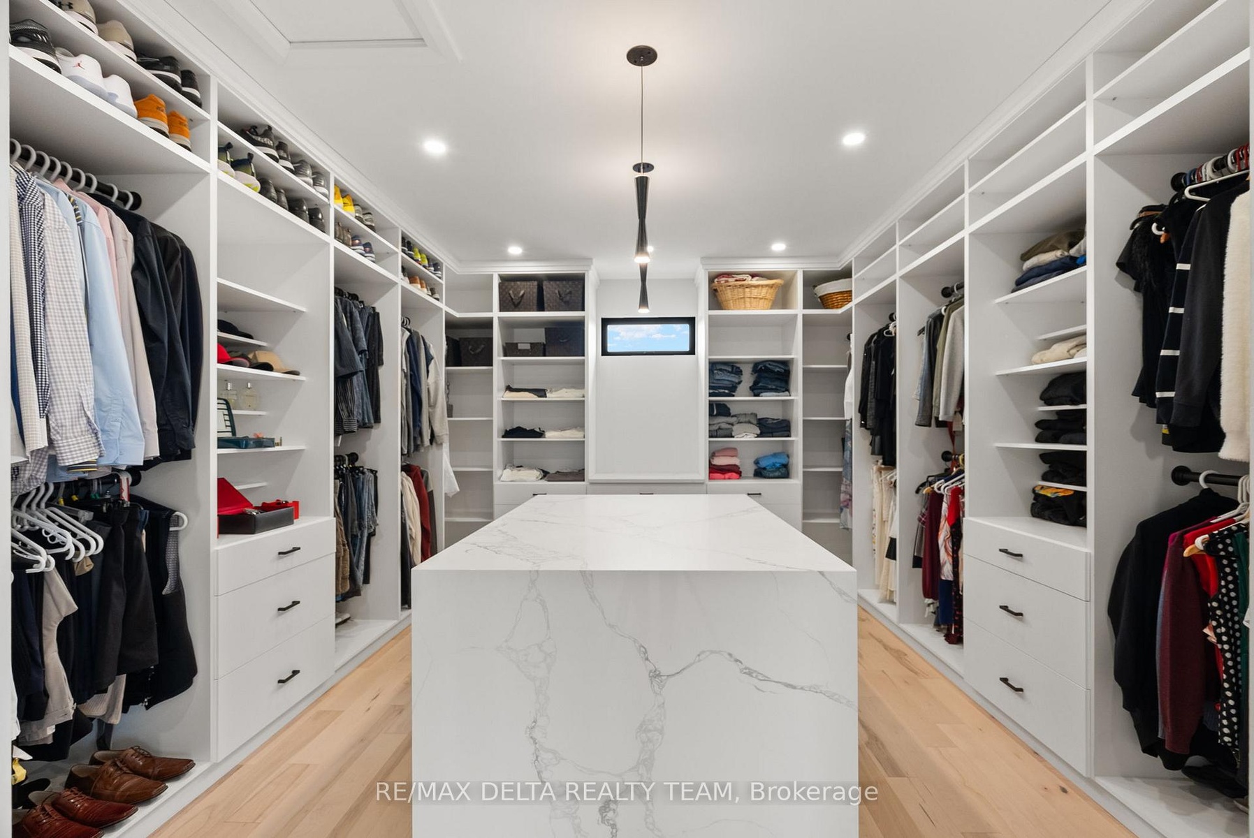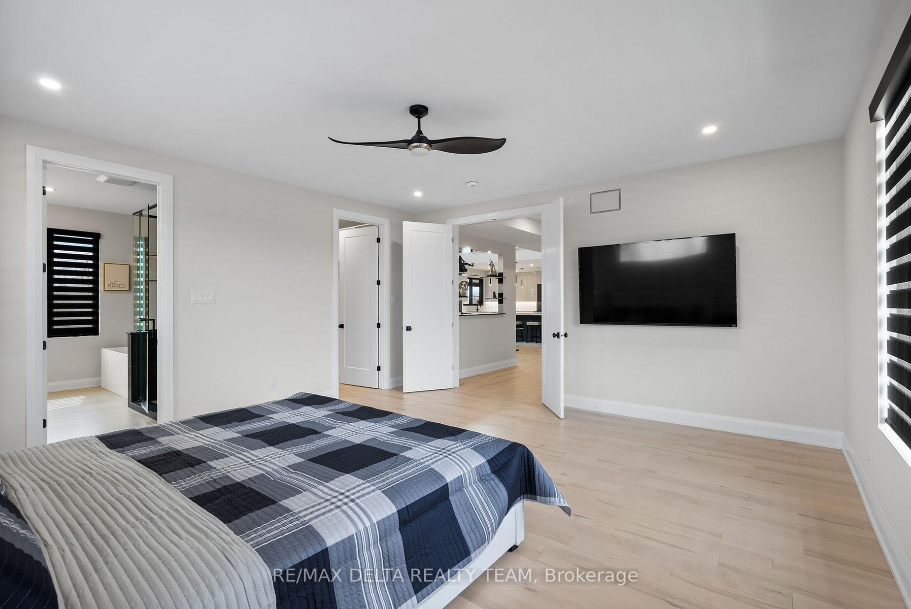 Tailored for the executive lifestyle, perfected for family living. Welcome to 663 Ballycastle Crescent a showstopping modern residence with commanding curb appeal, set on a quiet crescent lined with prestigious homes and backing onto peaceful open space. With over 5,700 sq. ft. of refined living space, this 5-bedroom, 6-bathroom home is a true architectural statement. The exterior offers bold, clean lines and grand scale, while inside, elegance meets innovation. Soaring 20-foot ceilings and a dramatic open-riser staircase set the tone in the main living area anchored by a double-sided porcelain-wrapped fireplace and lighted artwork niches. Maple and leather-finished porcelain floors run throughout the main level. The kitchen is both luxurious and functional, with dual waterfall quartz islands, Thermador appliances, a walk-in pantry, and a striking glass wine feature. A spacious main floor suite with walk-in closet and ensuite offers flexible comfort for guests or extended family. Upstairs, an 830 sq. ft. loft overlooks the great room, connecting two bedrooms each with private ensuites and walk-ins plus a bar area. The 540 sq. ft. primary suite offers a stunning gas fireplace, a dream walk-in closet with quartz island and a spa-inspired ensuite with freestanding tub, porcelain finishes, and custom-lit glass shower with rain heads and jets. The lower level features radiant-heated floors, a fireplace lounge, wet bar, theater, fifth bedroom and full bath, and a 900 sq. ft. commercial-grade gym with mirrors and glass dividers. Built-in media and smart systems run throughout. A 1,200 sq. ft. triple garage offers an oversized bay, loft storage, and backyard access. Two expansive decks add outdoor living space. Minutes from the new Hard Rock Casino and surrounded by luxury. This is a home that makes a statement.
