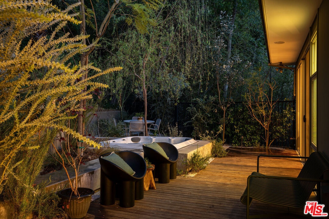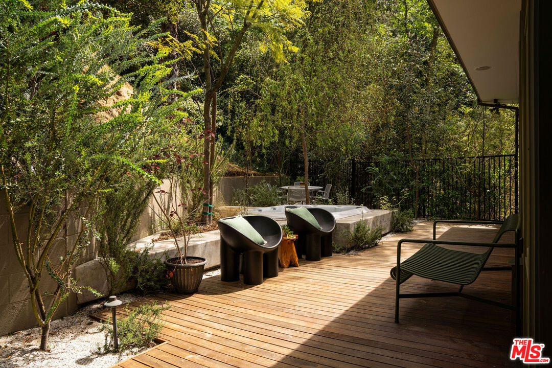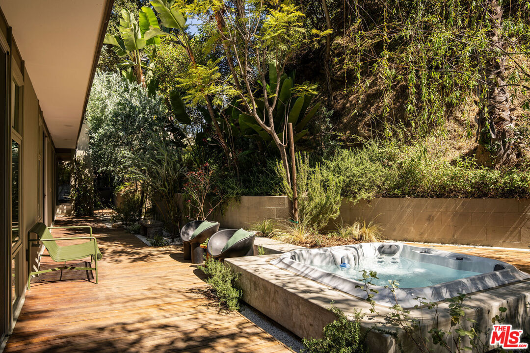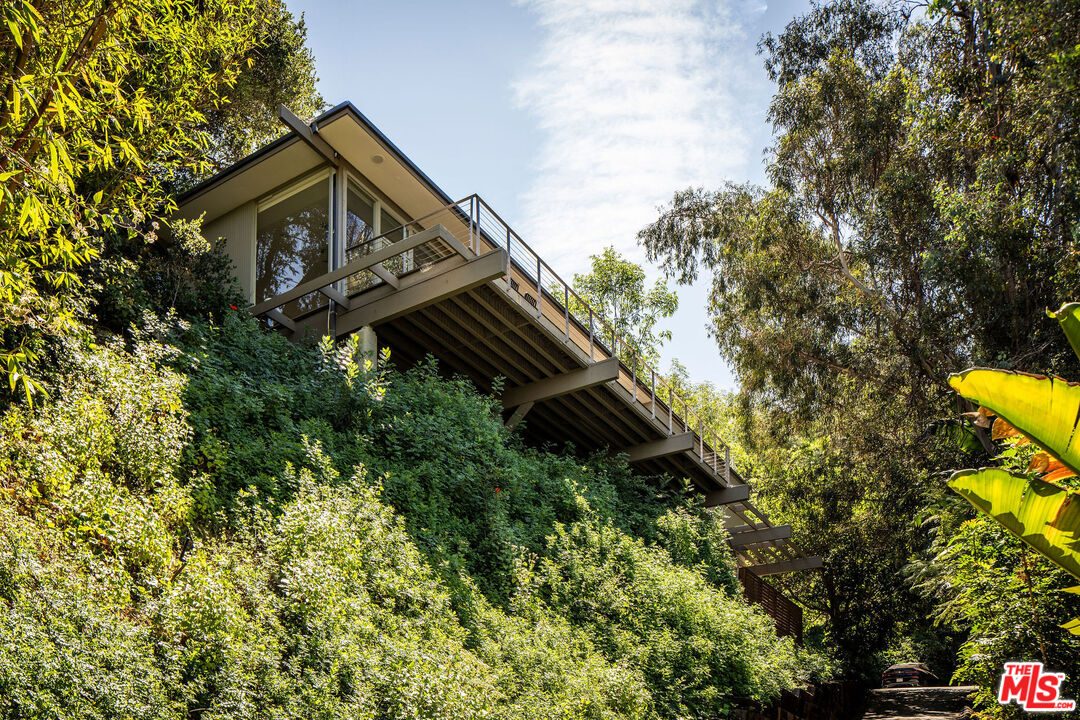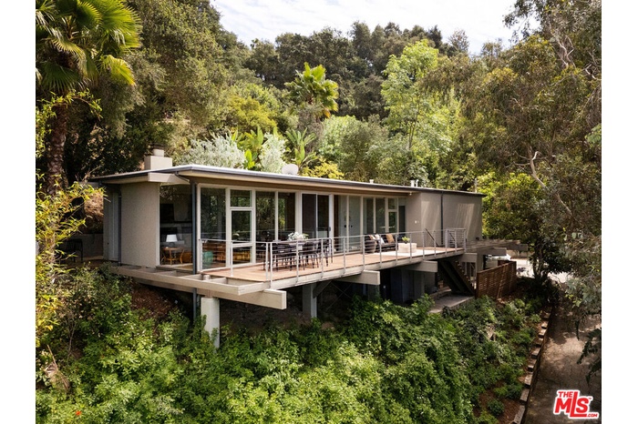 Iconic mid-century modern design by Pearson & Rawdon Architects defines this 1961 post-and-beam home in the Hollywood Hills. A recent design refresh by Allprace highlights the quintessential elements of this coveted era. Perched above the drive on a hillside west of the Cahuenga Pass, the home's airy, glass-lined design frames sweeping canyon and city-light views while embracing seamless indoor-outdoor living. The open-plan main level is flooded with natural light, with living and dining areas flowing directly onto a spacious patio and an oversized view deck. Two thoughtfully updated bedrooms offer privacy and natural light, while a lower-level bonus space, configured as a third en-suite bedroom with a separate entrance, offers flexible use as a guest suite or creative studio. Outside, multiple terraces and gardens create distinct areas for gathering or retreat, including a hot tub, BBQ zone, and serene meditation perch. A rare architectural offering, this home balances iconic design with calm, retreat-like living above the city.