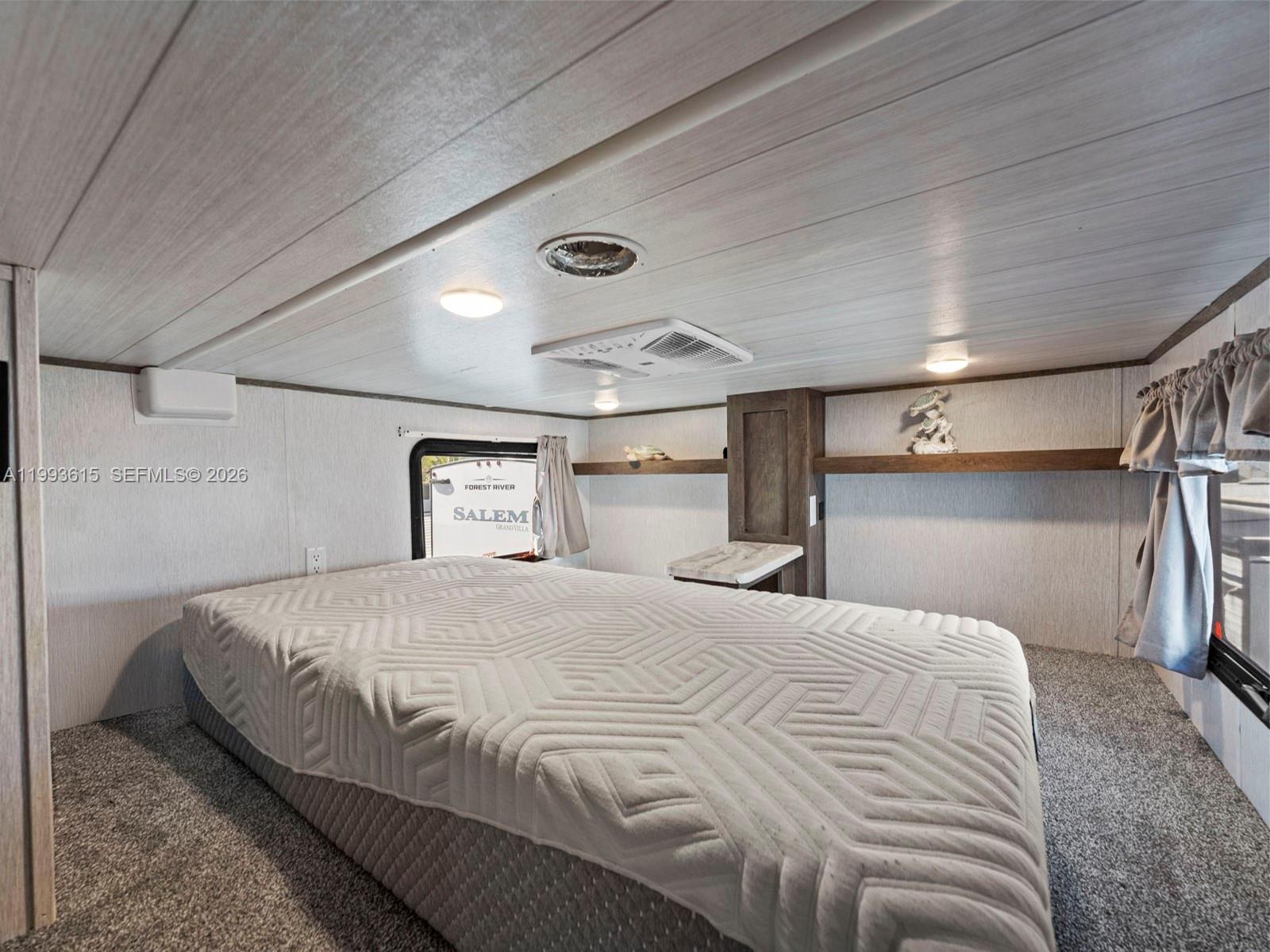Property includes a 2022 Forest River Salem Grand Villa 42FK destination trailer with approximately 360+ sq ft plus slide-outs, offering a private primary bedroom, spacious loft sleeping area, and open living/kitchen layout, ideal for personal use or rental potential.