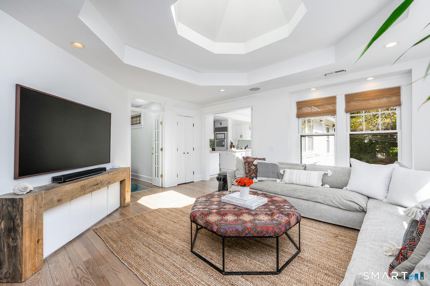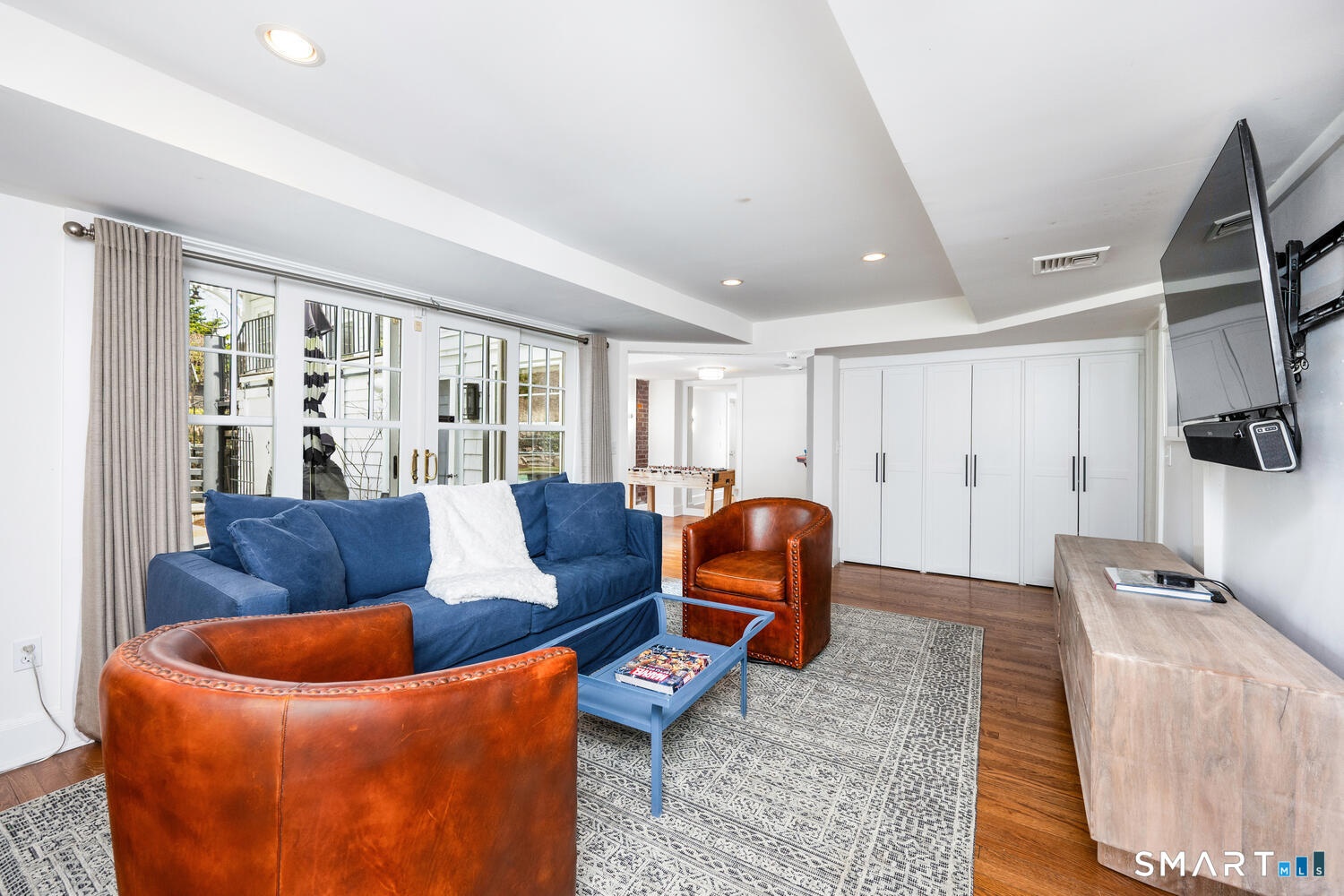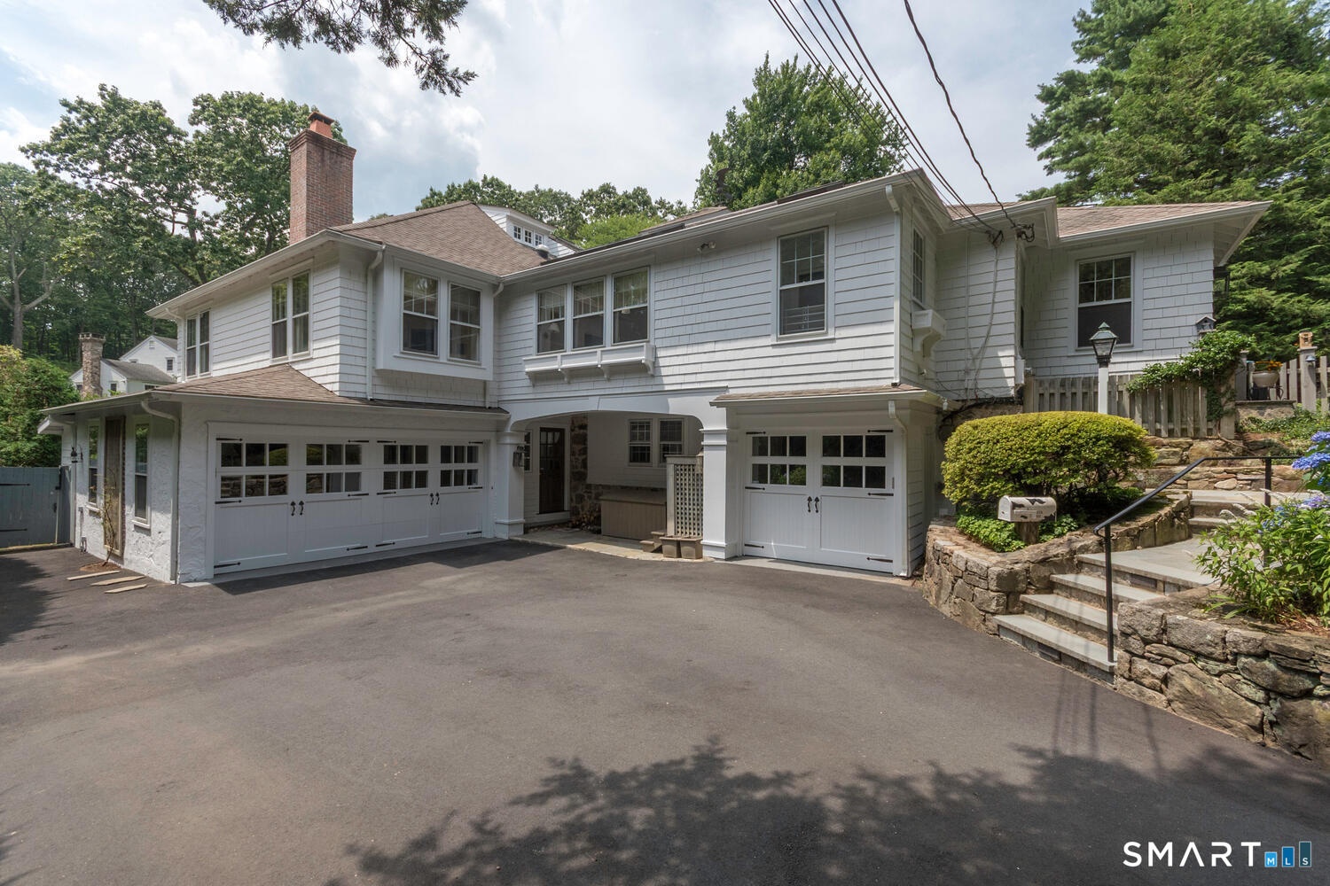Few homes in Darien offer this combination five bedrooms, five indoor entertainment spaces, a private elevator, gunite pool, hot tub, and pool cabana with wet bar all on a private.