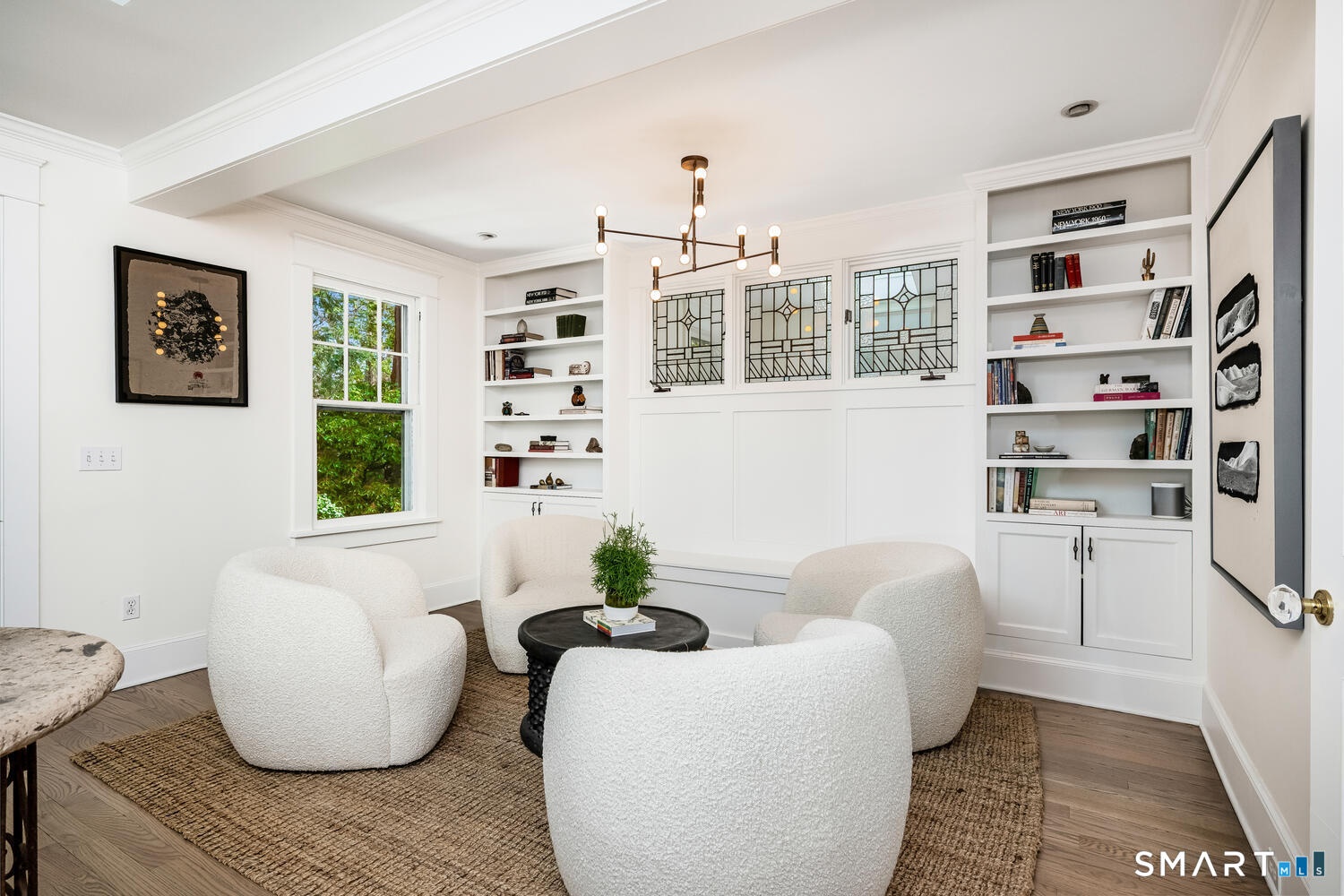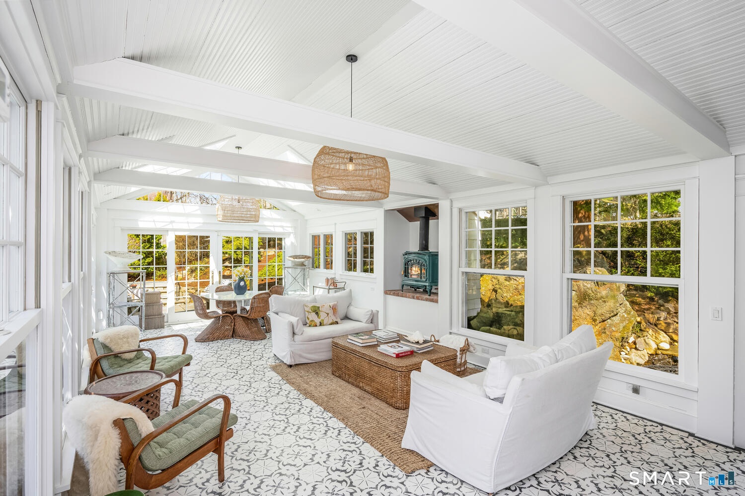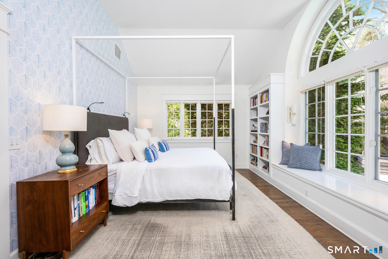 Few homes in Darien offer this combination five bedrooms, five indoor entertainment spaces, a private elevator, gunite pool, hot tub, and pool cabana with wet bar all on a private.