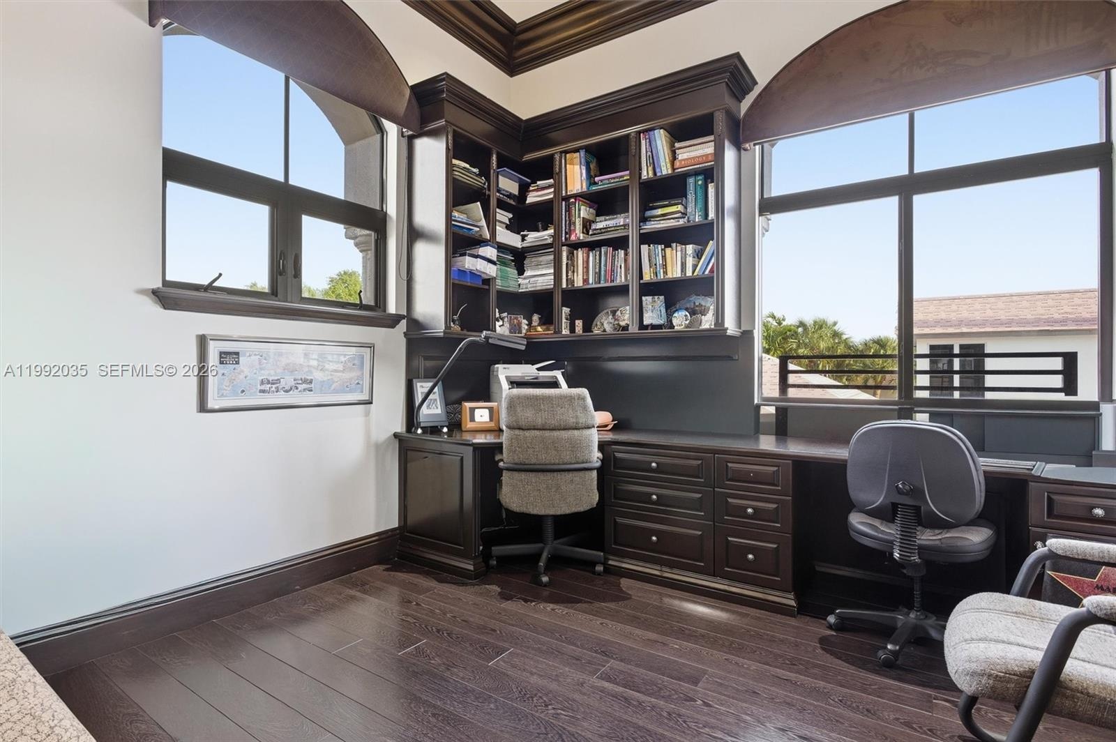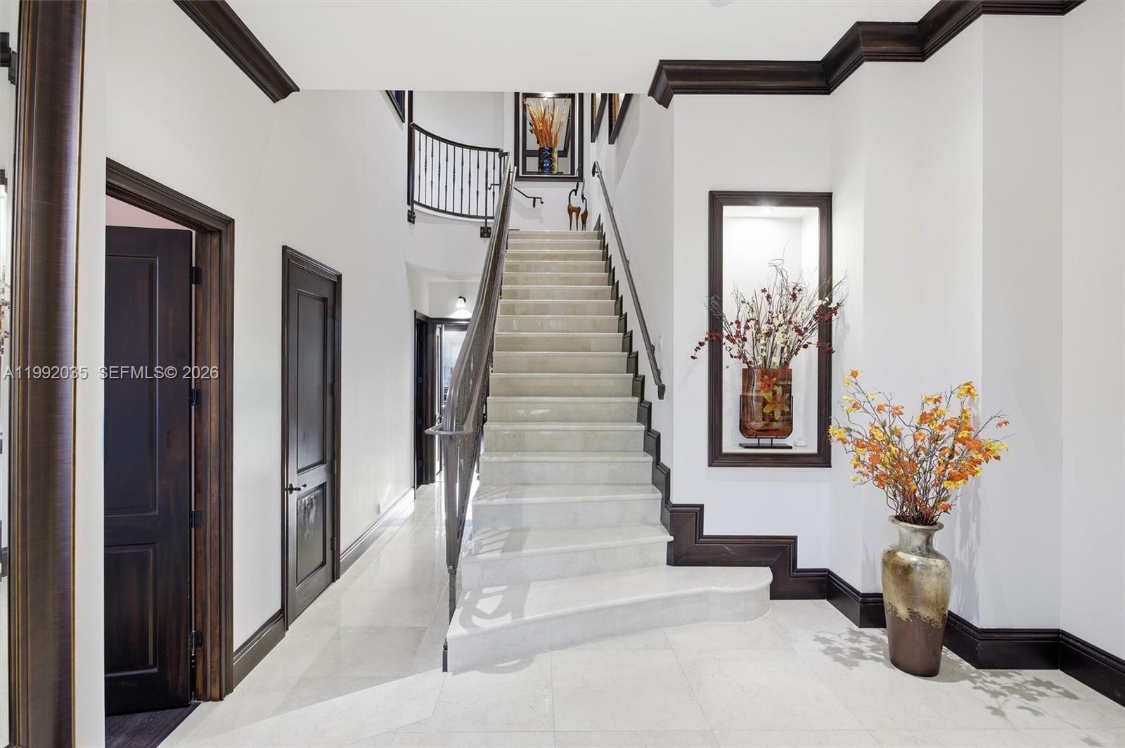 Step inside to soaring 12’ ceilings and a breathtaking 14’ ceiling in the grand room, elegant 24” marble floors, a grand staircase, and exquisite Brazilian wood doors. Enjoy impact windows and expansive 10’ sliding glass doors that flood the home with natural light.