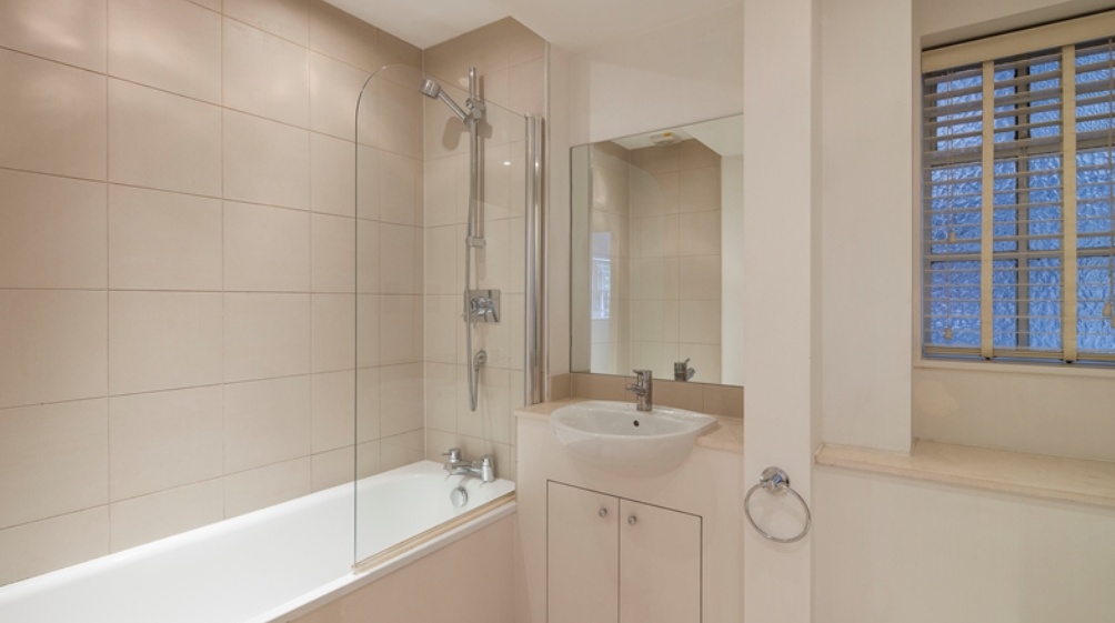 The property comprises two generously sized double bedrooms, a bright and airy reception/dining room with pleasant views over the communal gardens to the rear, and a fully fitted kitchen. There are two bathrooms, including a modern shower room and a well-proportioned family bathroom with shower over bath, providing added convenience for sharers or couples.