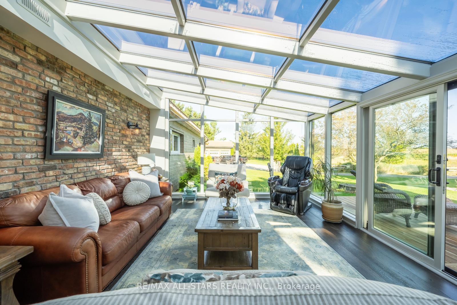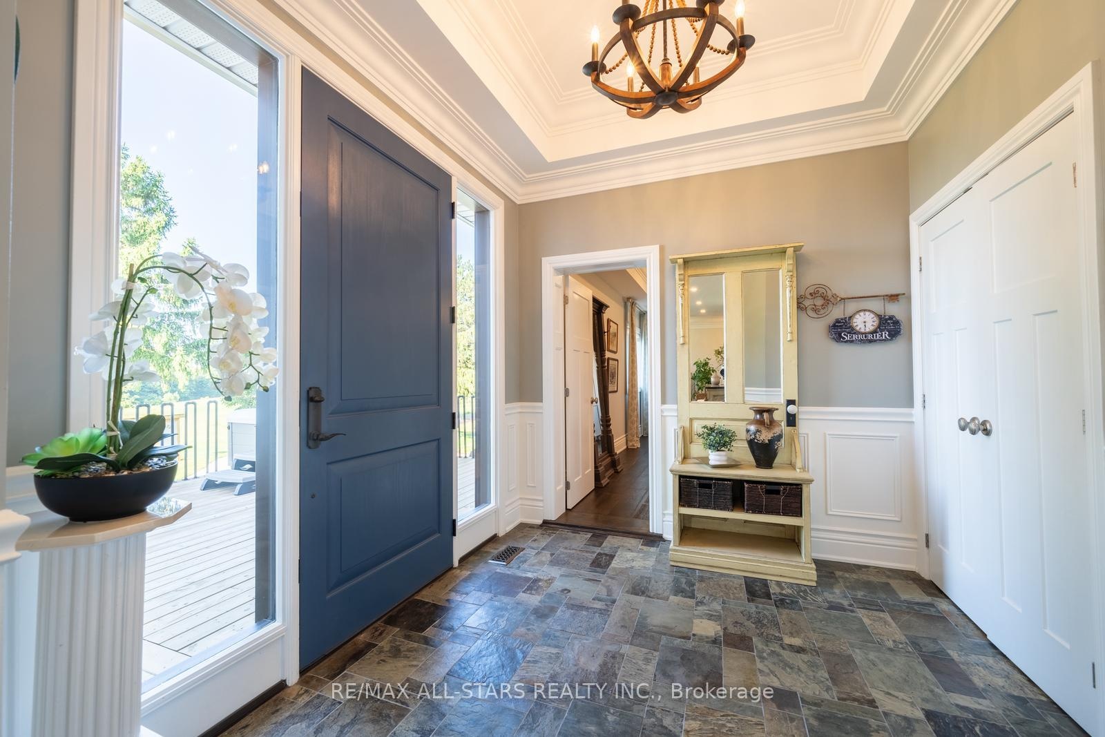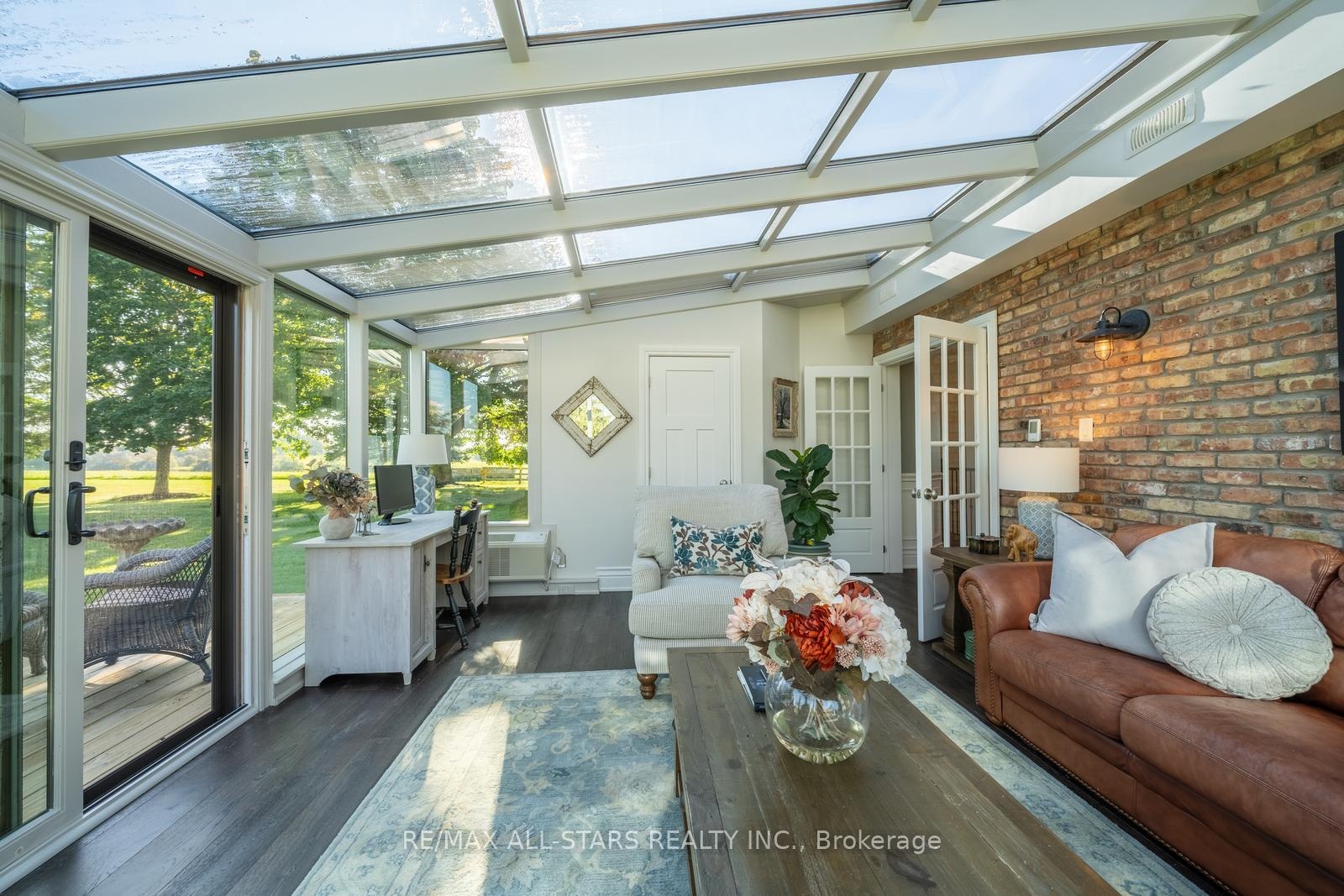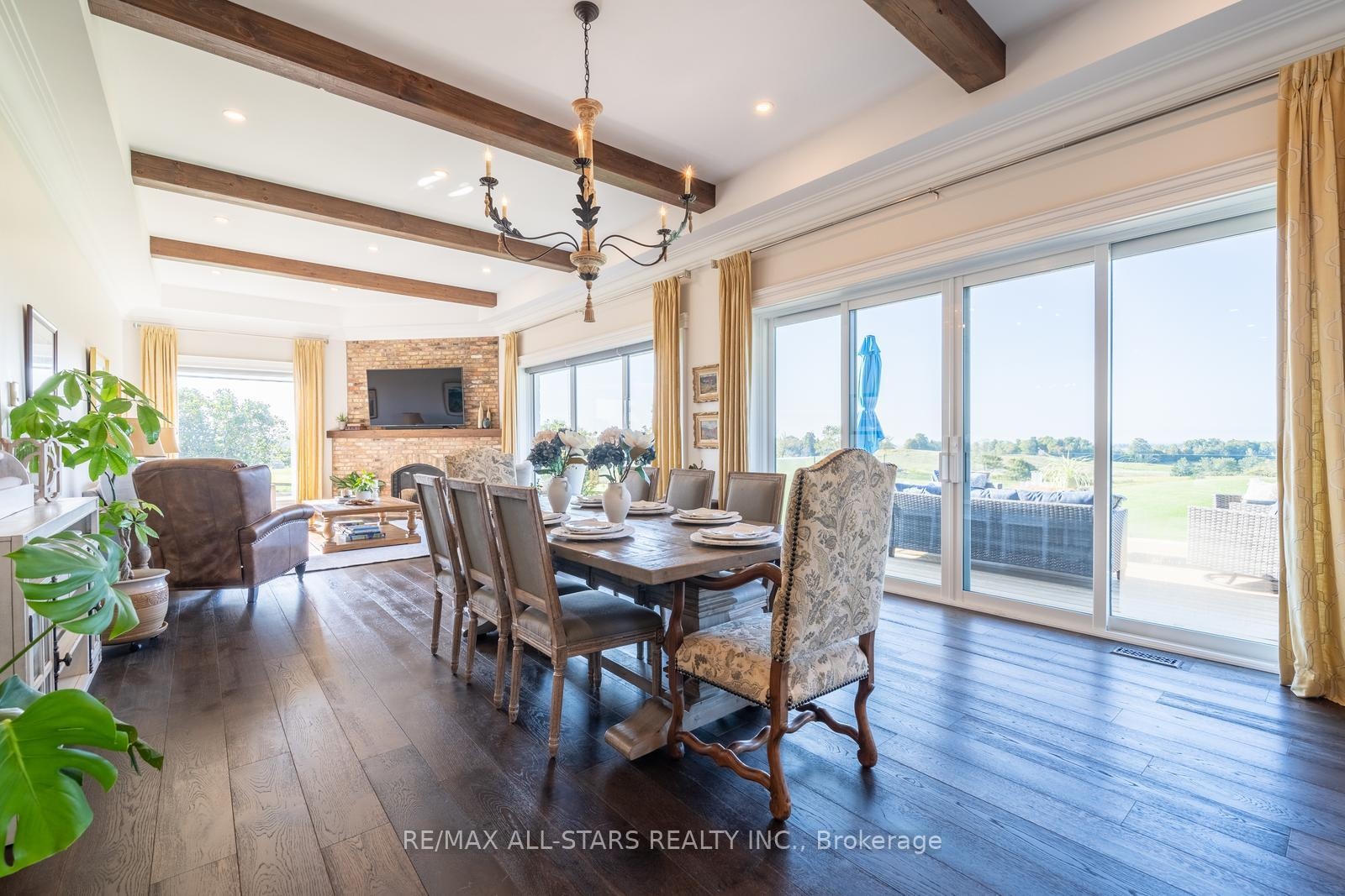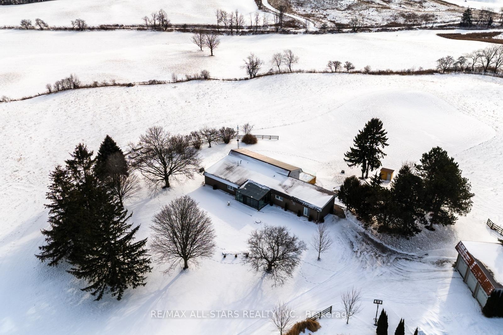 A Truly Exceptional 50-Acre Luxury Estate. Set atop rolling hills with sweeping countryside views, this remarkable estate offers a rare blend of privacy and tranquility-ideally located at the borders of Stouffville, Uxbridge, and Pickering. A long, winding driveway creates an impressive sense of arrival, guiding you through picturesque landscapes to the home. Inside, the light-filled main living area features 12-foot ceilings, exposed beams, and an antique-style brick fireplace. Expansive windows frame breathtaking west-facing views, bringing the outdoors in. The chef-inspired kitchen offers high-end appliances, European-style finishes, and a large island ideal for everyday living and entertaining. An expansive deck with glass railings extends the living space outdoors, showcasing panoramic views of rolling hills and, in the distance, the Toronto skyline. The primary suite is a private retreat with a walk-in closet, built-in wardrobe, 5-piece ensuite, and walkout to the east lawn. Three additional bedrooms and a beautifully updated 5-piece bath provide ample space for family and guests.The walkout lower level includes a spacious recreation area, two home offices, a full bath, and a large bedroom, all with stunning west-facing views. Outdoors, enjoy approx. 6 acres of maple bush, a seasonal pond, and a charming barn with original paddocks and vintage nameplates. An oversized garage accommodates three large trucks with hydro and roughed-in heated floors. Additional features include a heated in ground pool, hot tub, landscaped gardens, geothermal heating, in-floor heating, and extensive updates throughout. A truly special property that must be experienced to be appreciated. You won't want to miss this one!