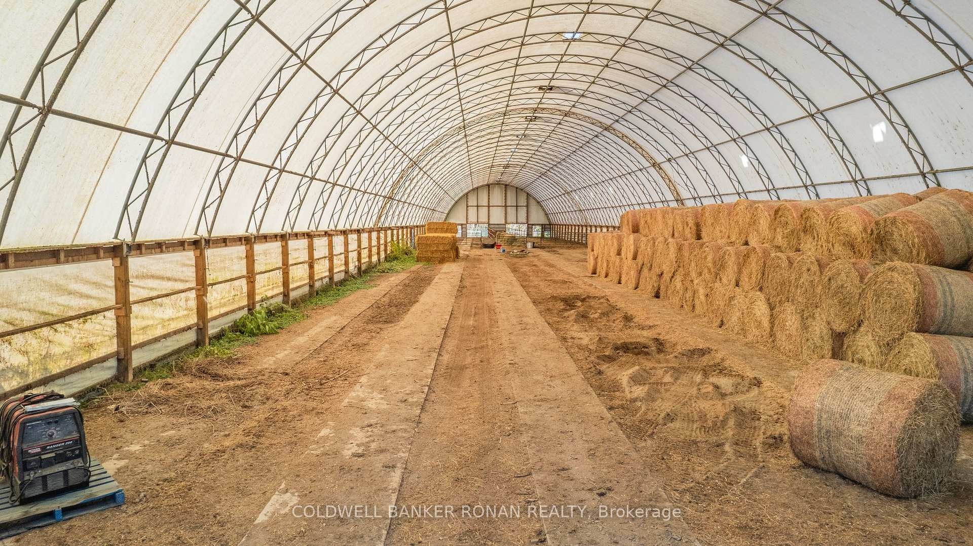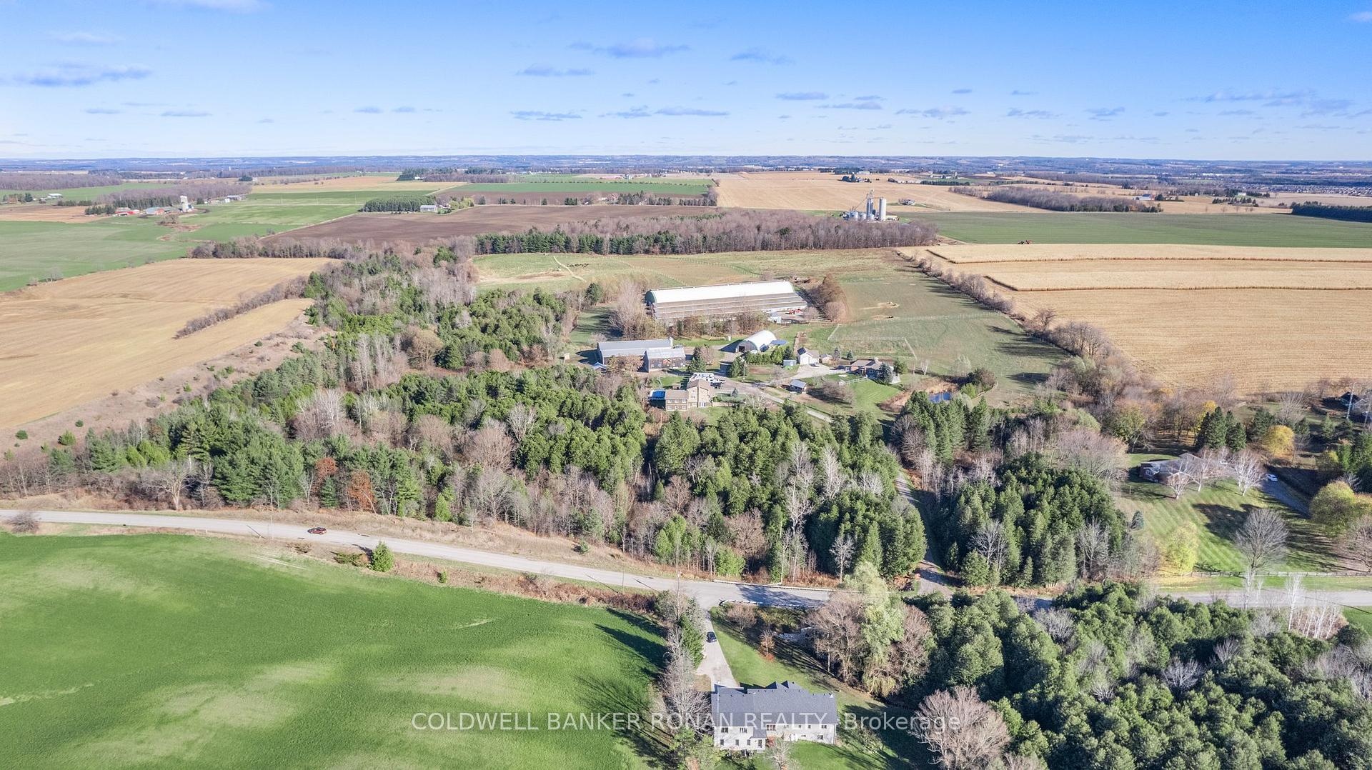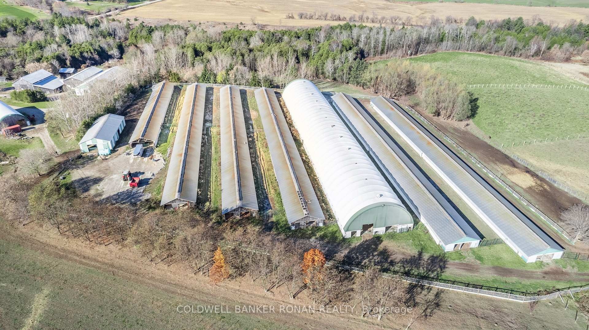 Exceptional 118-acre working farm just minutes from the thriving town of Alliston, offering a rare combination of agricultural income, multigenerational living, and business potential. Currently operating as a bison and Texas Longhorn cattle farm, this property is well-equipped for livestock or expanded agri-business use. Two custom homes provide flexible living options. The main residence features a spacious eat-in kitchen with walkout to a landscaped yard and in-ground pool, multiple living areas, main floor primary bedroom, office, and five additional bedrooms upstairs. The finished walkout lower level includes a recreation room, kitchenette, and bath. A second walkout bungalow (1998) offers 2+3 bedrooms, ideal for extended family or income potential. Extensive infrastructure includes 800-amp service and a 10kW microFIT solar system generating approx. $10,000/year. Farm buildings include six grazing sheds (32' x 360'), a 130' x 50' shop (approx. 40% cold storage) attached to a 50' x 80' building (approx. 90% cold storage), a 40' x 100' coverall, multiple run-in sheds, and a large bank barn with retail/event potential and possible living quarters, plus lower-level equestrian setup. Approx. 80 workable acres, with portions currently in pasture. A turnkey farm with scale, versatility, and long-term opportunity in a prime location.