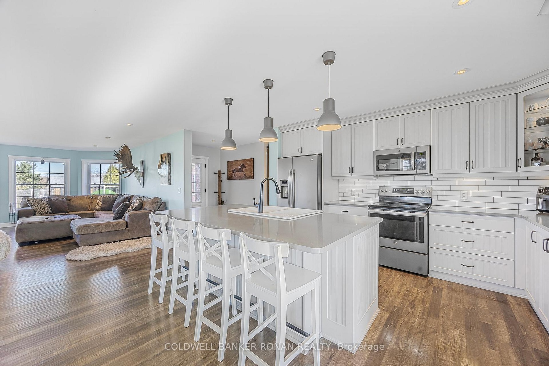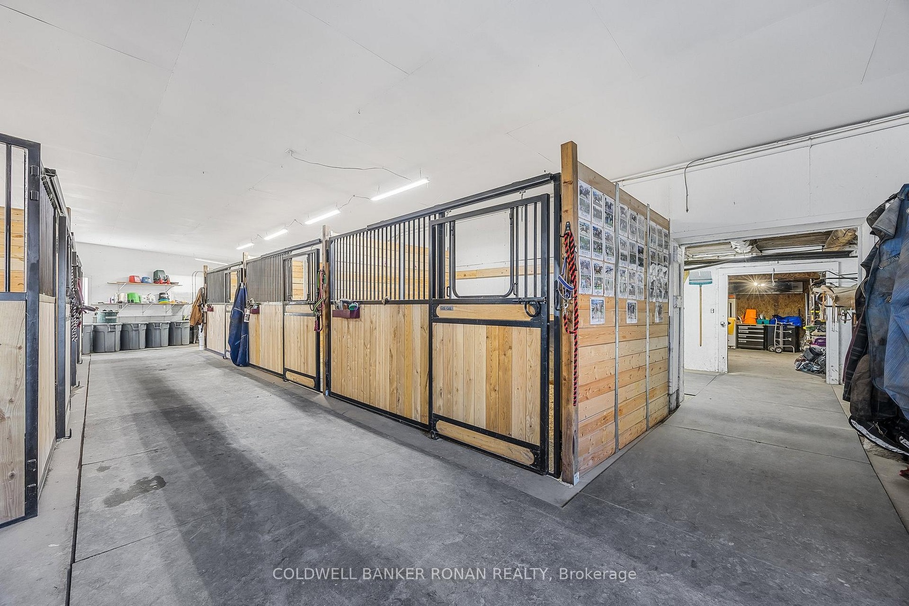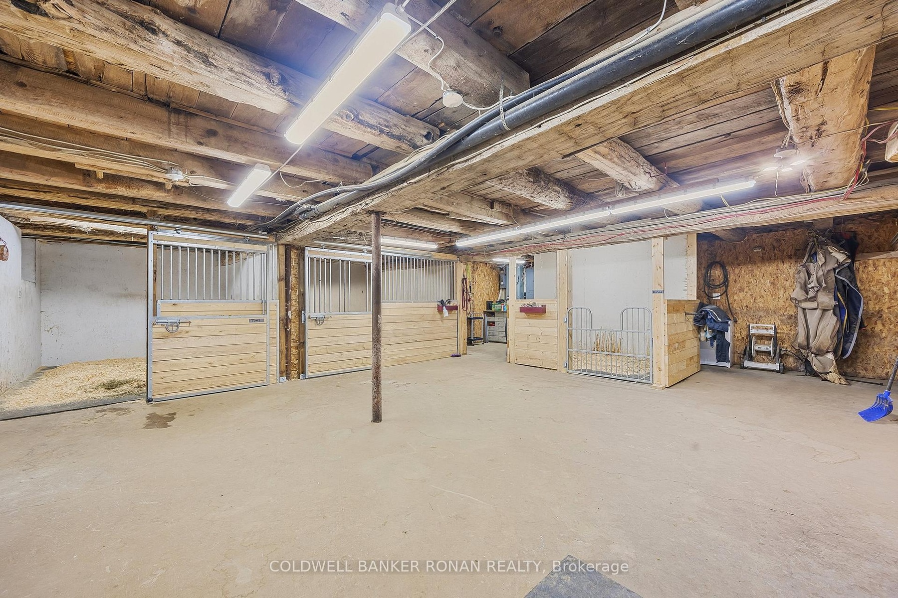 Exceptional 118-acre working farm just minutes from the thriving town of Alliston, offering a rare combination of agricultural income, multigenerational living, and business potential. Currently operating as a bison and Texas Longhorn cattle farm, this property is well-equipped for livestock or expanded agri-business use. Two custom homes provide flexible living options. The main residence features a spacious eat-in kitchen with walkout to a landscaped yard and in-ground pool, multiple living areas, main floor primary bedroom, office, and five additional bedrooms upstairs. The finished walkout lower level includes a recreation room, kitchenette, and bath. A second walkout bungalow (1998) offers 2+3 bedrooms, ideal for extended family or income potential. Extensive infrastructure includes 800-amp service and a 10kW microFIT solar system generating approx. $10,000/year. Farm buildings include six grazing sheds (32' x 360'), a 130' x 50' shop (approx. 40% cold storage) attached to a 50' x 80' building (approx. 90% cold storage), a 40' x 100' coverall, multiple run-in sheds, and a large bank barn with retail/event potential and possible living quarters, plus lower-level equestrian setup. Approx. 80 workable acres, with portions currently in pasture. A turnkey farm with scale, versatility, and long-term opportunity in a prime location.