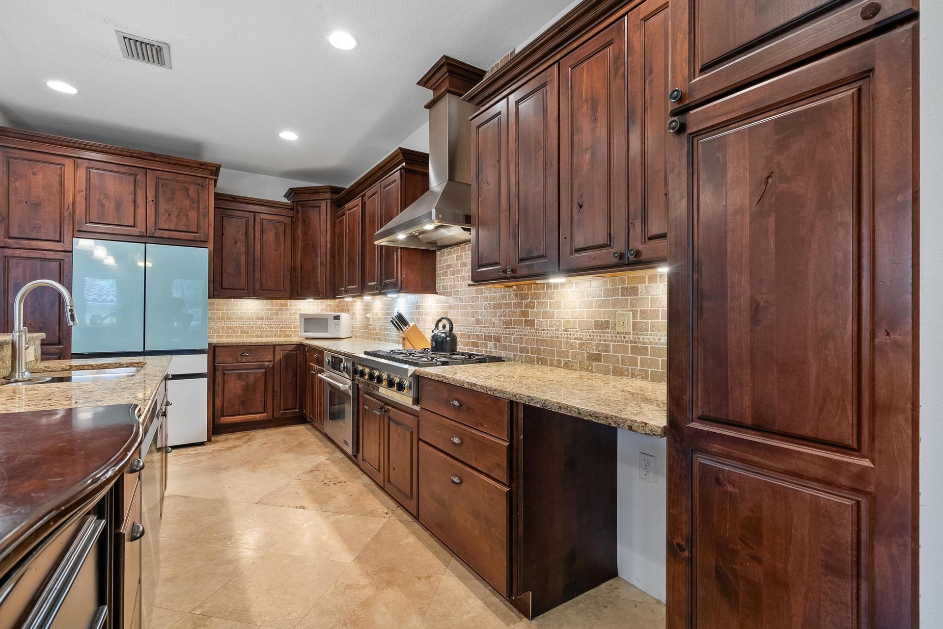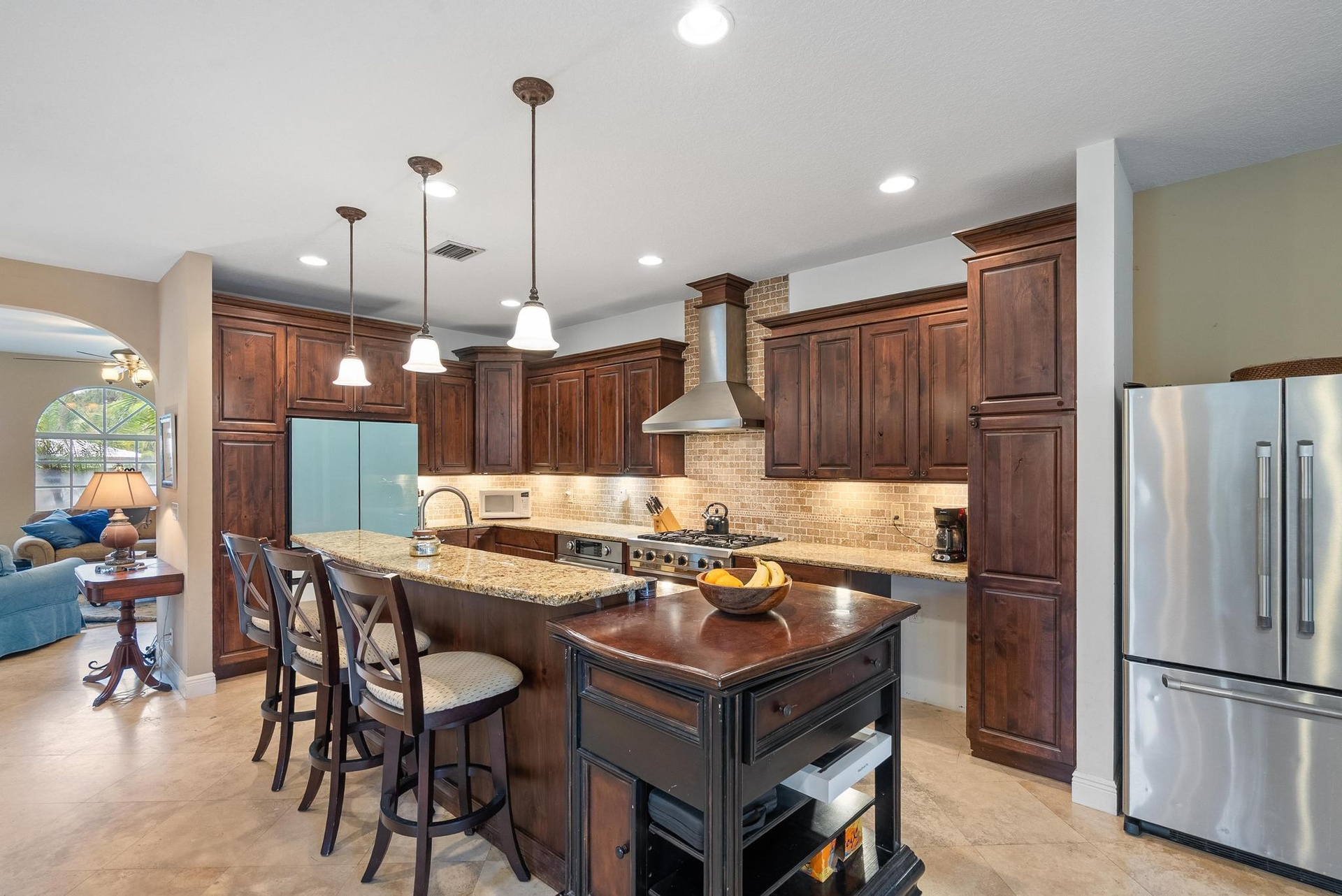 Welcome to this exceptional newer-built residence offering over 2,500 sq ft of luxury, space, and a walkable coastal lifestyle. Thoughtfully designed, the open-concept layout features granite countertops, recessed lighting, and a chef-inspired kitchen with a premium Viking gas range and wine cooler—perfect for elevated entertaining. Enjoy two expansive living areas and seamless indoor-outdoor flow to a wrap-around balcony and lush, low-maintenance landscaping. All bedrooms are privately located upstairs, including a spacious primary suite with a walk-in closet and a spa-like bath featuring a soaking tub, glass-enclosed shower, and dual vanities. Additional highlights include impact windows and doors, whole-home speaker system, upstairs laundry, oversized 2-car garage, extended driveway with room for a boat or RV, and a flexible, functional floor plan—all just moments from downtown, dining, and the waterfront.