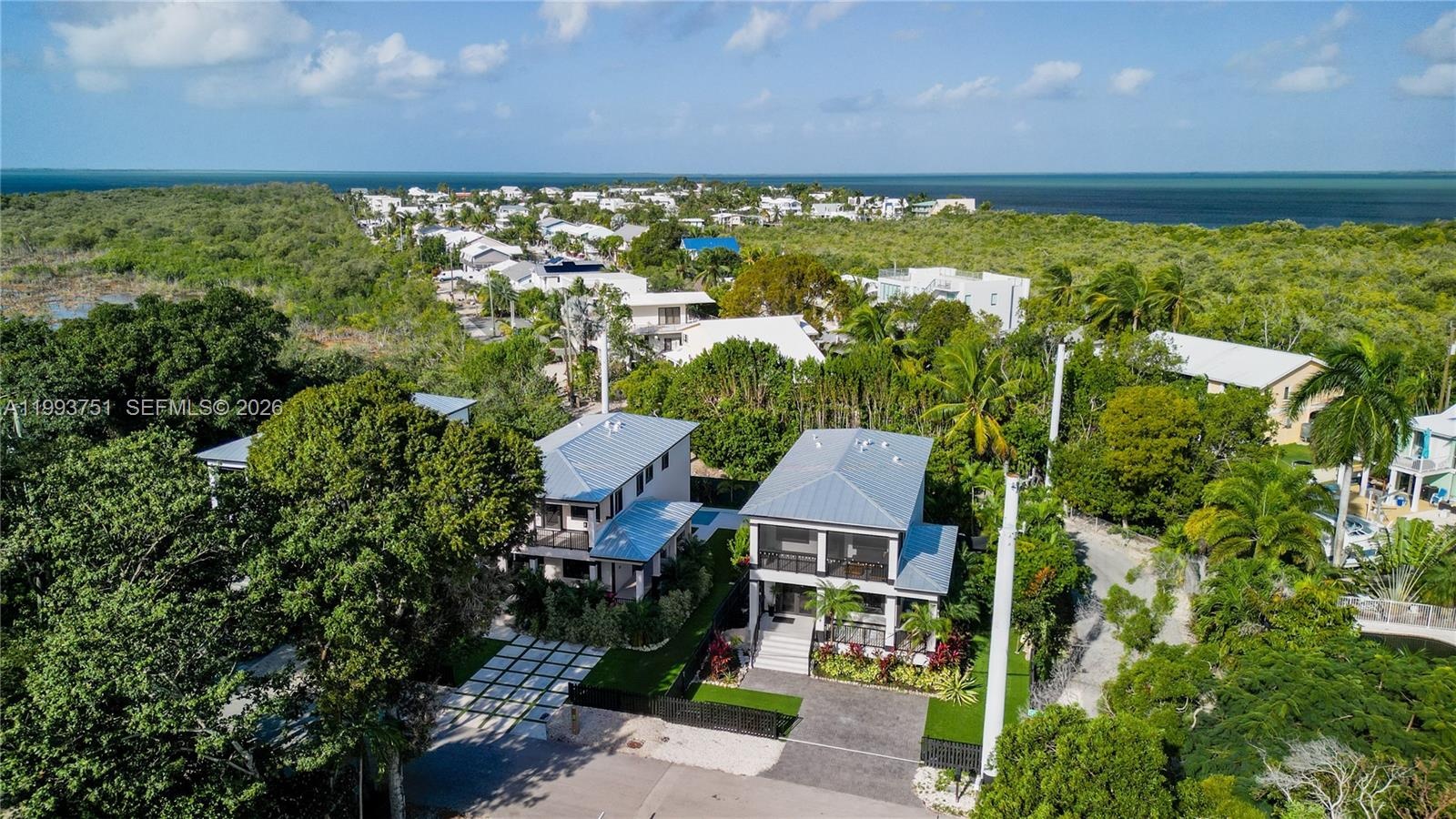Elegant two story concrete home in Key Largo! Built in 2022, this modern yet timeless residence is just under 2000sqft, located on a fully fenced & beautifully landscaped corner lot. The gated paver driveway leads to the covered wrap around porch, perfect for enjoying lazy afternoons in the shade. Inside, the open living area offers large impact windows and doors letting in lots of light. An open gourmet kitchen is complimented with quartz countertops, tile backslash, modern stainless steel appliances along with an oversized island, perfect for entertaining family & friends. On this floor is a powder room, large storage closet/pantry & a guest room with ensuite bath. Upstairs, is the primary bedroom with a walk in closet, en suite bath and private screened patio for enjoying your morning rituals. Down the hall past the laundry & linen closets is another large bedroom with two closets and an ensuite bath. The desirable corner lot is landscaped for privacy and has turf for ease of maintenance. There is room for a pool as well. 2022 concrete construction, metal roof, impact windows give you piece of mind along with lower insurance rates. This location offers an easy commute to the mainland, Ocean Reef Club, the College of the FL Keys new campus, and of course the dining, shopping & marinas the Keys are known for. The island lifestyle can be yours!