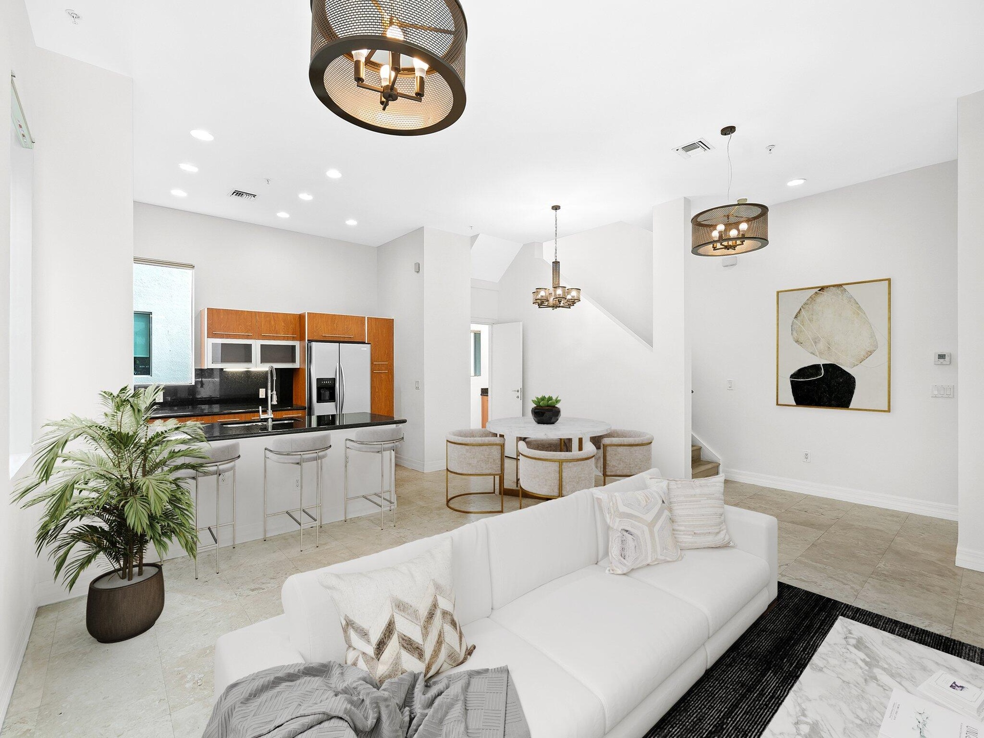 Stunning and spacious 3-bedroom, 3.5-bathroom Bamboo Flats townhome rarely available and ideally located in the heart of downtown Fort Lauderdale's vibrant Flagler Village. Enjoy breathtaking city views from your private rooftop terrace, complete with a built-in bar, cozy lounge area, and unobstructed western exposure for unforgettable sunset views. Inside, the open-concept floor plan is perfect for both entertaining and everyday living, filled with natural light and featuring an inviting eat-in kitchen. Additional highlights include a two-car garage, a beautifully renovated primary bathroom, a private community pool, and secure gated entry. This residence truly feels like a single-family home offering comfort, convenience, privacy, and an unbeatable location.