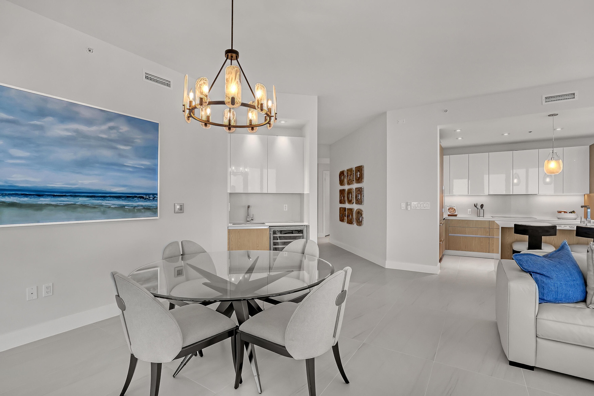 Welcome to Amrit Ocean Resort & Residences, an extraordinary oceanfront community on Singer Island where luxury living meets a world-class wellness lifestyle. This beautifully appointed 2-bedroom, 2.5-bath residence spanning 2,065 square feet offers a rare opportunity to enjoy breathtaking Atlantic Ocean views from a higher vantage point within one of South Florida's newest and most innovative resort residences. Upon entering, the home immediately opens to sweeping water views through floor-to-ceiling impact glass, filling the living spaces with natural light and connecting seamlessly to a spacious private terrace overlooking the ocean. Designed for both comfort and entertaining, the residence features a sleek European-style kitchen equipped with premium Miele appliances, quartz countertops, a wine refrigerator, and a fully integrated wet bar. Life at Amrit is centered around wellness, relaxation, and elevated resort-style service. Residents enjoy access to multiple oceanfront pools, spa pools and hot tubs, beachfront cabana service, and a serene outdoor yoga terrace overlooking the Atlantic. The property's expansive spa and wellness center offers advanced treatments and cutting-edge therapies designed to enhance health and well-being. Beyond the wellness offerings, Amrit delivers a true five-star resort experience with four on-site dining venues, 24-hour security, valet service, EV charging stations, and a fully staffed lobby with concierge services. Residents also enjoy private amenities including a heated ocean-view pool, daybed lounges, whirlpool spa, state-of-the-art fitness center, meditation garden, social lounge with bar, catering kitchen, billiards and entertainment space, private card room, and outdoor social terrace with grilling area. Don't miss this incredible opportunity to own the best residence in all of the Amrit.