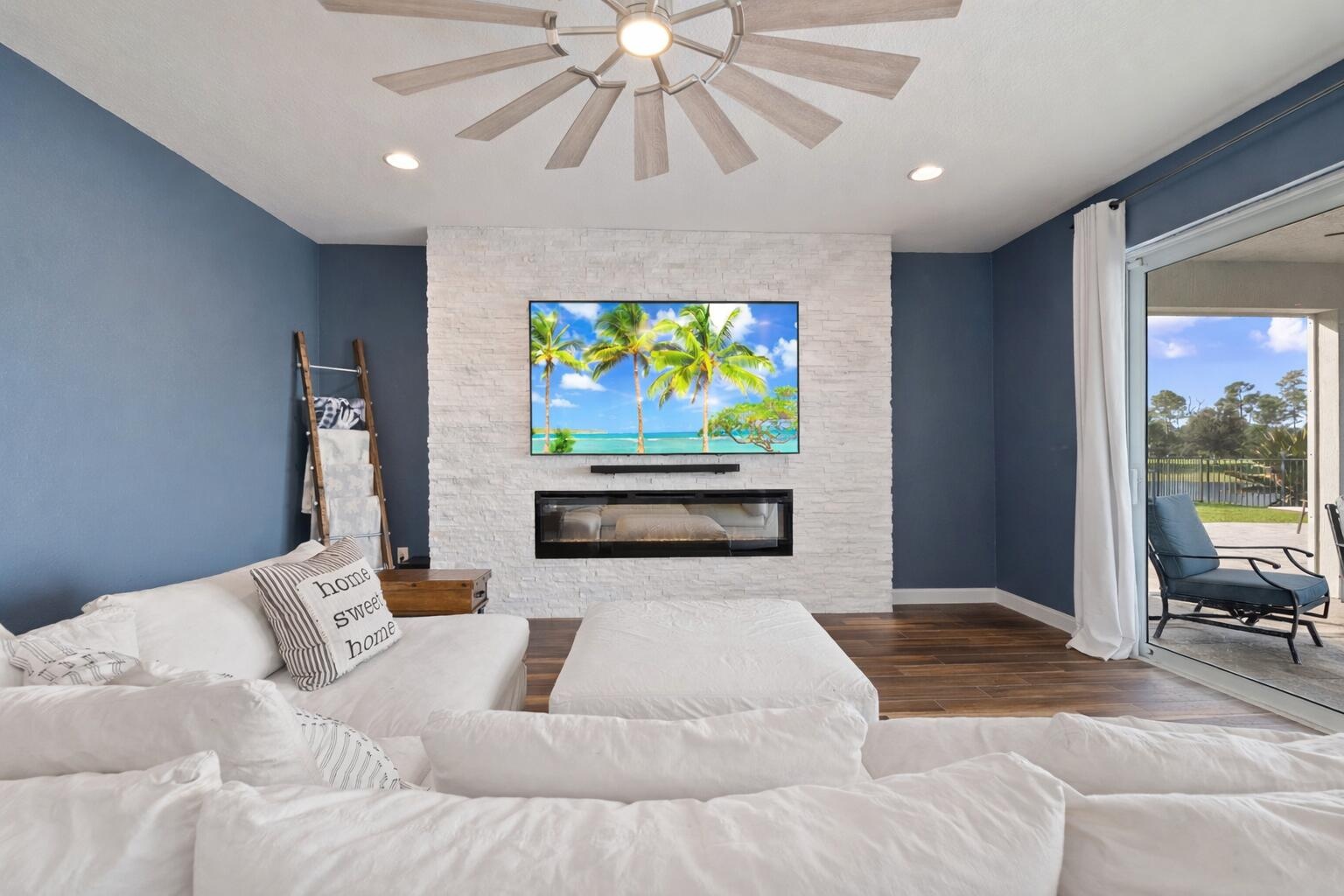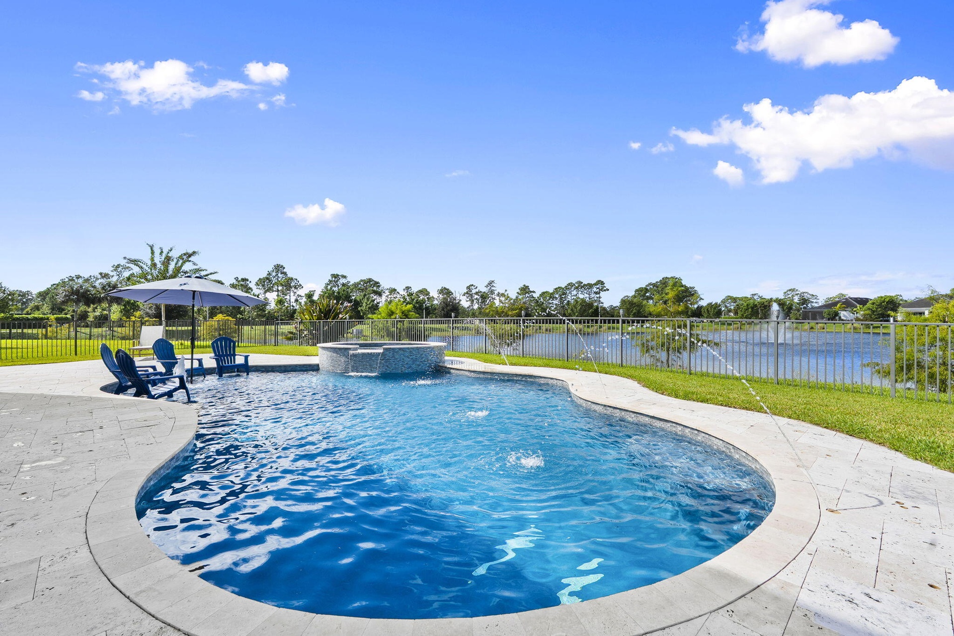 This rare home in the gated community of Banyan Bay offers 5 bedrooms, 2.5 baths, and a 3-car garage on a large pie-shaped lot at the end of a quiet cul-de-sac with serene lake views. Built in 2018, it features impact windows and doors, two air-conditioning systems, and a unique floor plan not found elsewhere in the community. With 3,271 square feet under air, the home includes an extended front porch and a fenced backyard with a spa-like pool, hot tub, and electric roll-down screens. Enjoy luxury, privacy, and modern Florida living close to shopping, dining, beaches, and top-rated schools. This rare offering in one of Stuart's most desirable gated communities features a 5 bedroom, 2.5 bath home with a three car garage, situated on a large pie-shaped lot at the end of a quiet cul-de-sac with beautiful lake views.