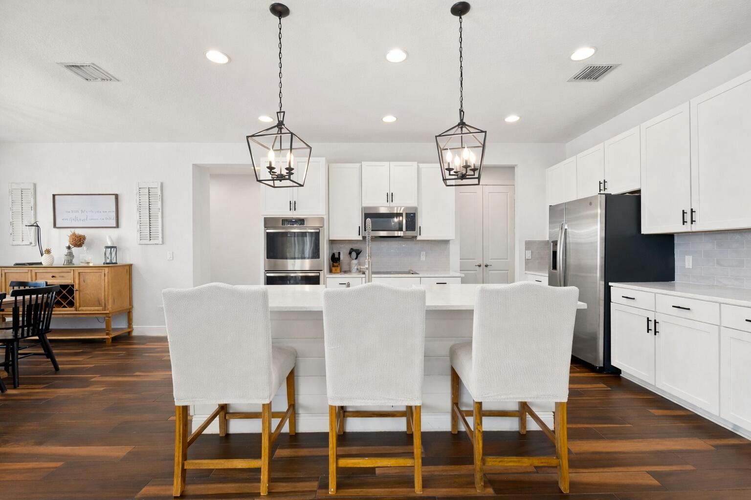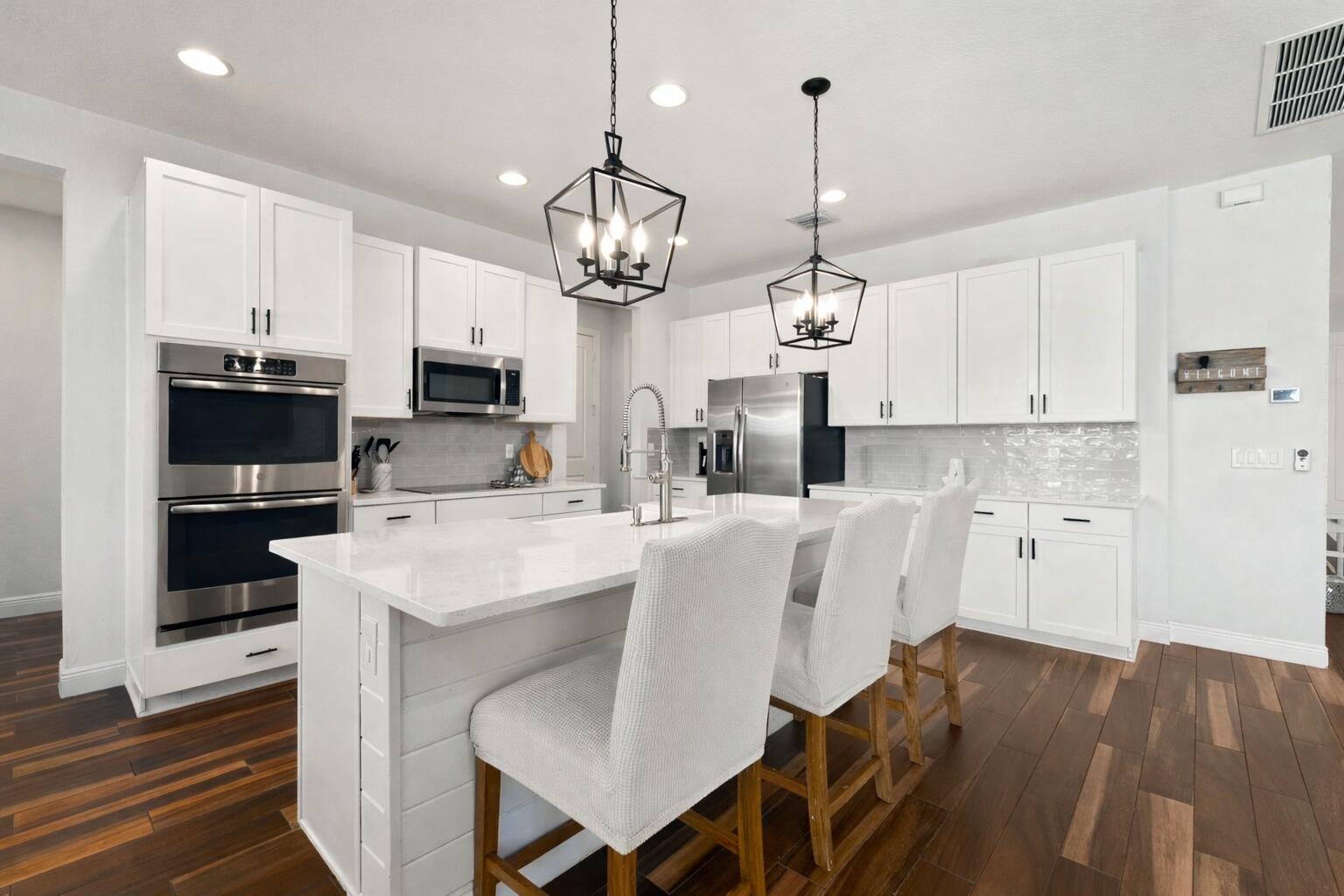 The extended front porch provides a welcoming space to relax outdoors, while the fenced backyard is a private retreat featuring a spa-like pool and hot tub. Electric roll-down screens add convenience and comfort, allowing you to enjoy the outdoor space year-round.