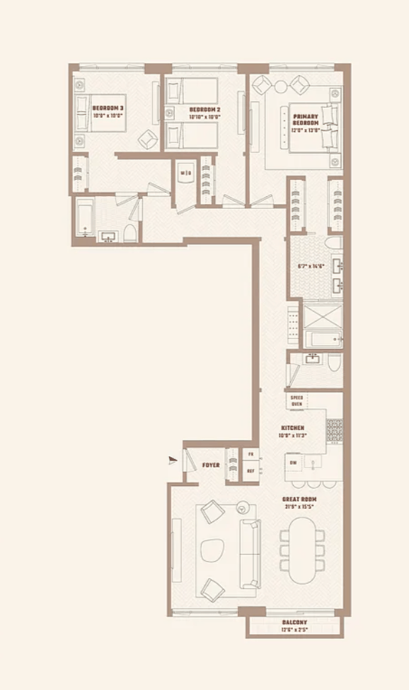 Residence 5B is a beautifully designed three bedroom, two and a half bathroom home spanning approximately 1, 700 square feet.