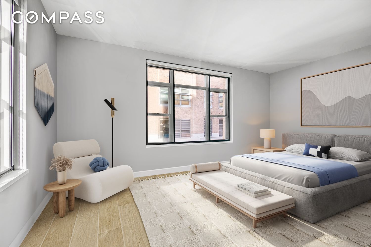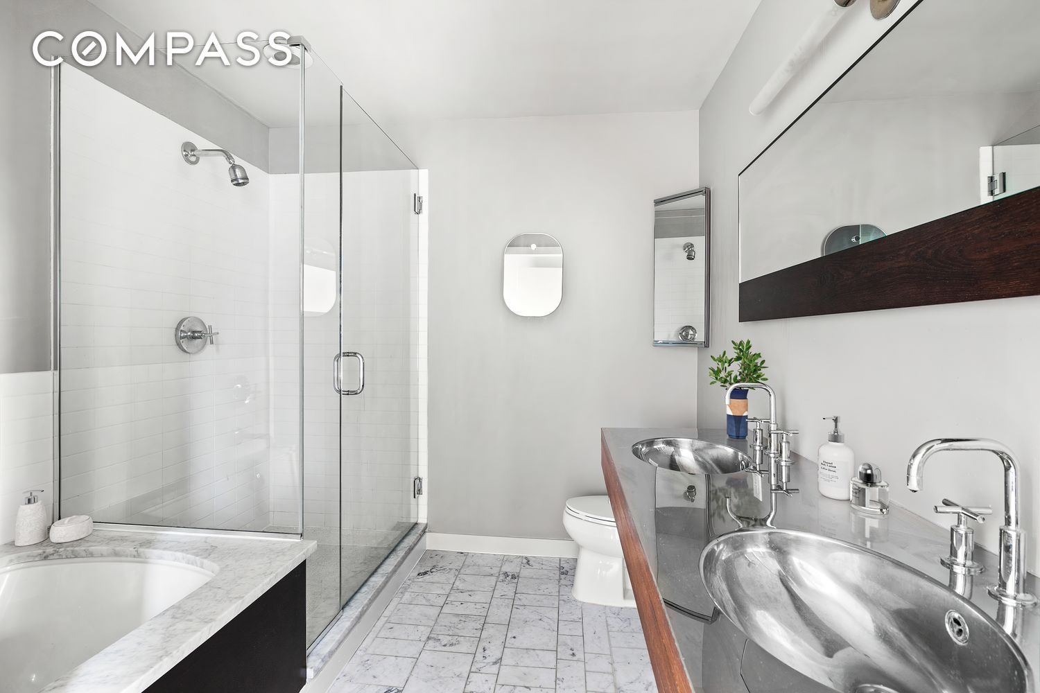 Delight in the spacious primary-bedroom suite with beautiful corner exposures and en-suite bathroom with soaking tub and shower. The primary, as well as the secondary, are outfitted with whisper-quiet CitiQuiet windows which creates an unfathomably peaceful living space.