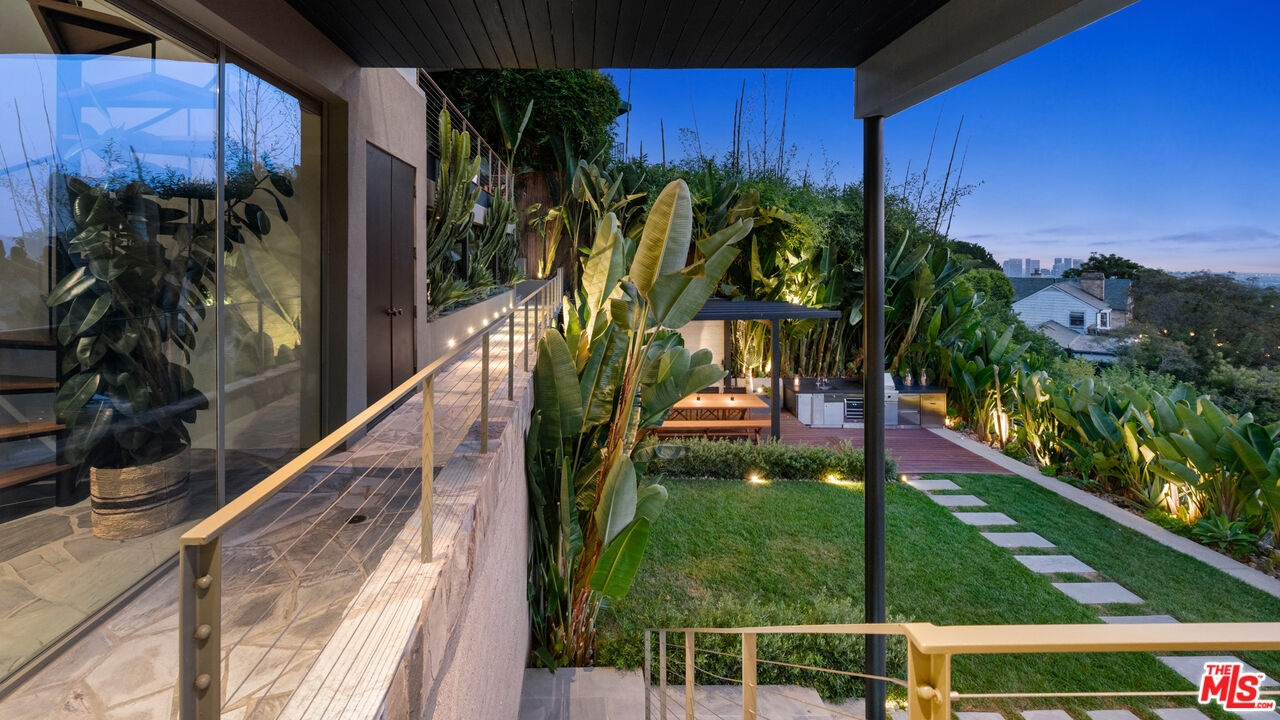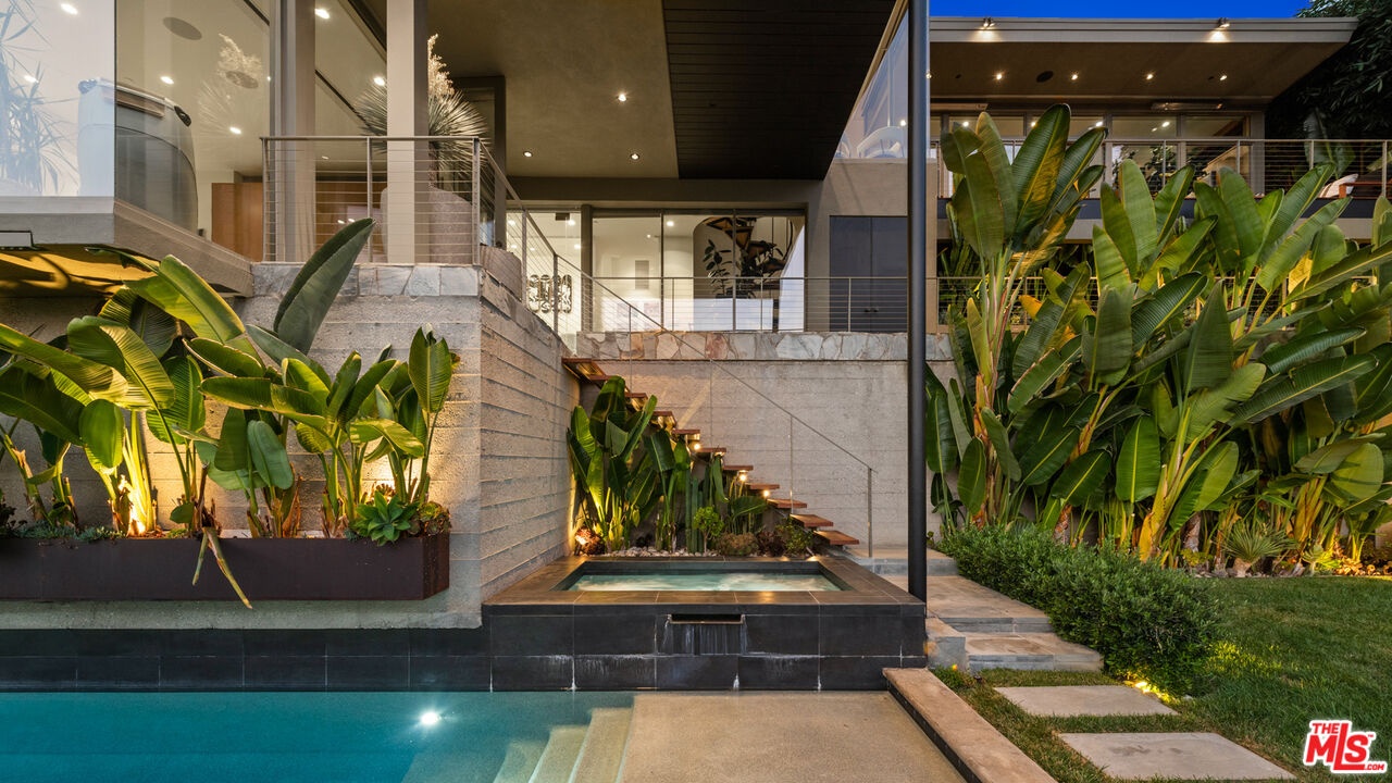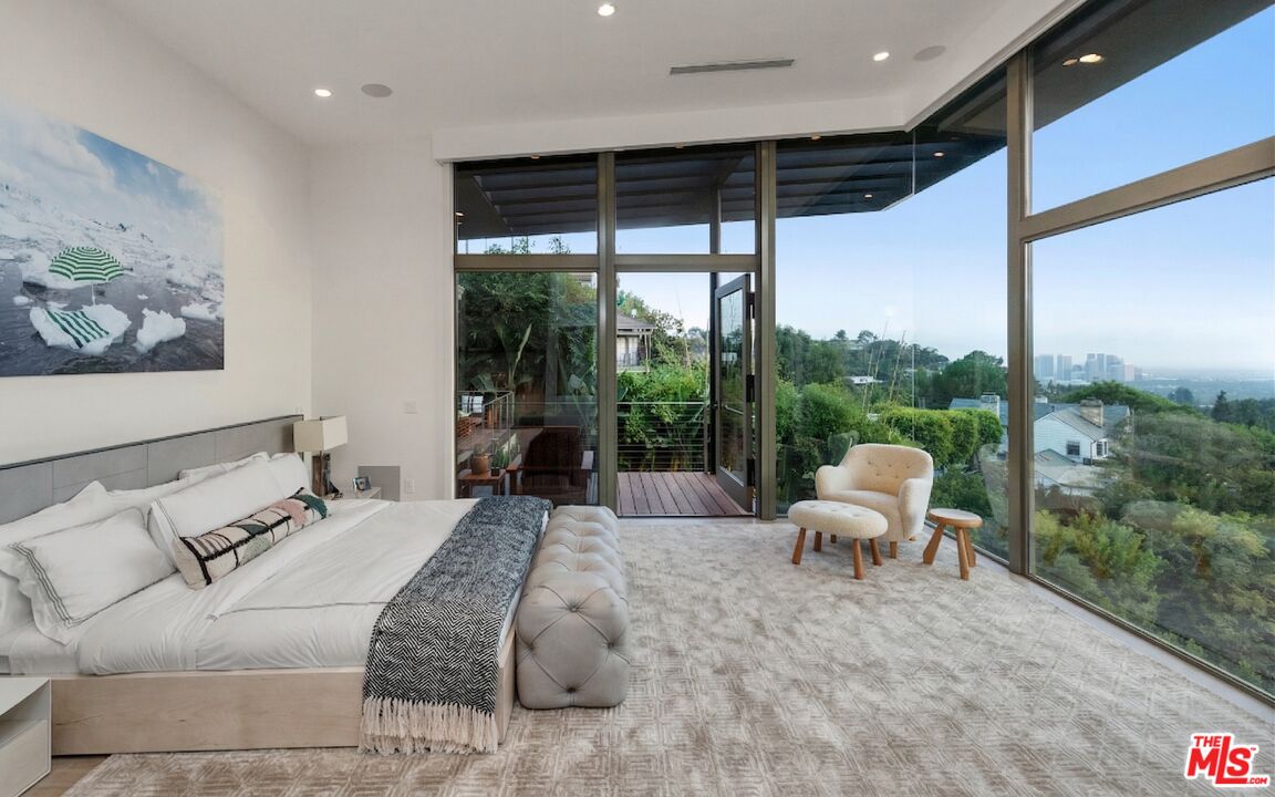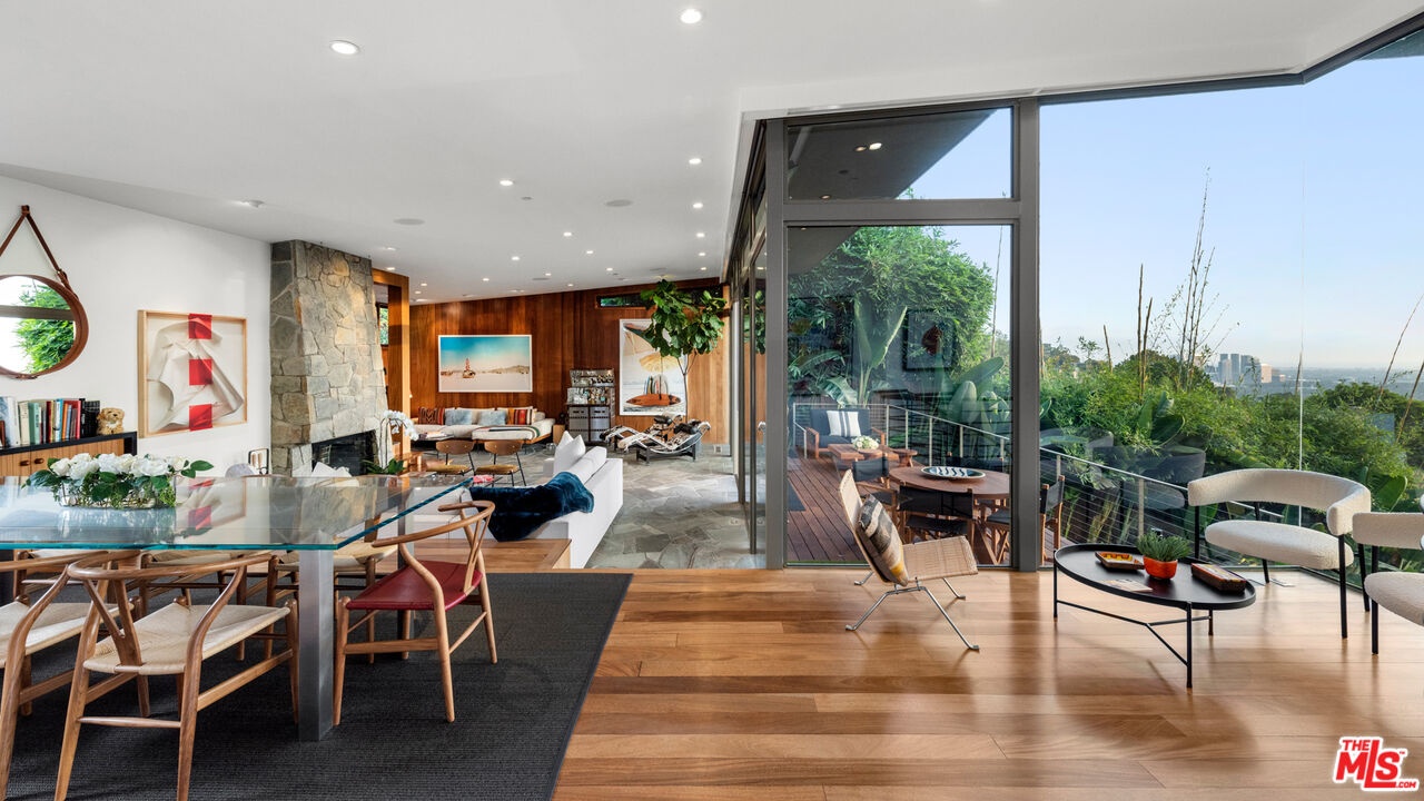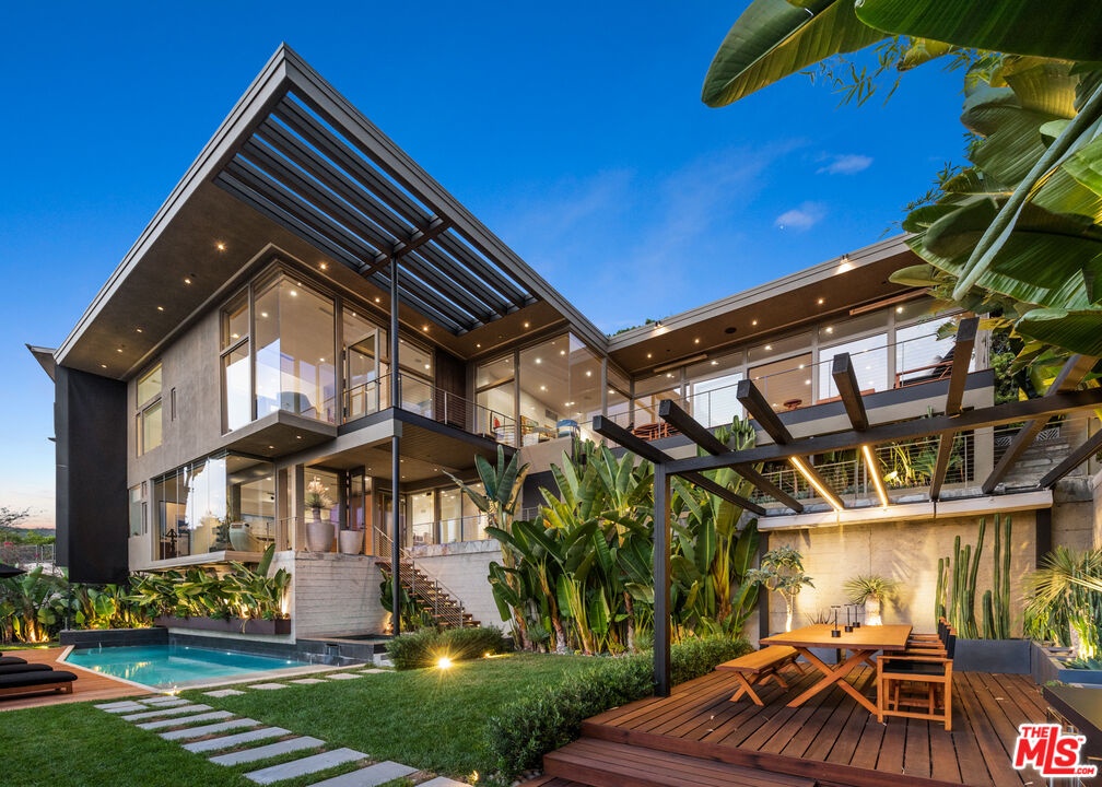 Perched on a quiet street in the coveted Crest Streets of Beverly Hills, this iconic mid-century architectural masterpiece originally designed in 1948 by legendary designer Greta Grossman as her personal residence seamlessly blends timeless design with modern luxury. A dramatic arrival opens into sun-drenched living spaces where walls of glass frame sweeping city lights and lush canyon views, creating an effortless indoor-outdoor flow that defines the best of Southern California living. The open living and dining areas spill onto expansive patios and decks, perfect for sunset cocktails or intimate gatherings under the stars, while a sleek, thoughtfully updated kitchen anchors the home with style and functionality. Upstairs, serene bedrooms - including a stunning primary suite with breathtaking views and a private terrace - offer tranquil retreats above the city, with a total of 3 bedrooms plus a dedicated office. Downstairs, a versatile media lounge or guest suite adds flexibility for entertaining or extended stays. Outside, a private resort-style setting awaits with a sparkling pool, spa, grassy yard, and multiple outdoor entertaining areas surrounded by mature landscaping and total privacy. A rare architectural gem with pedigree, views, and undeniable Beverly Hills sophistication, this one-of-a-kind residence delivers the ultimate mid-century lifestyle in one of the city's most coveted hillside enclaves.