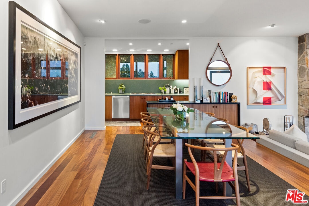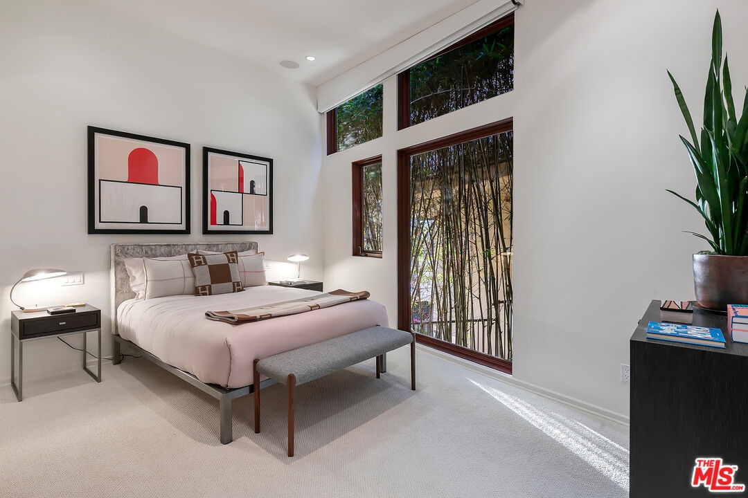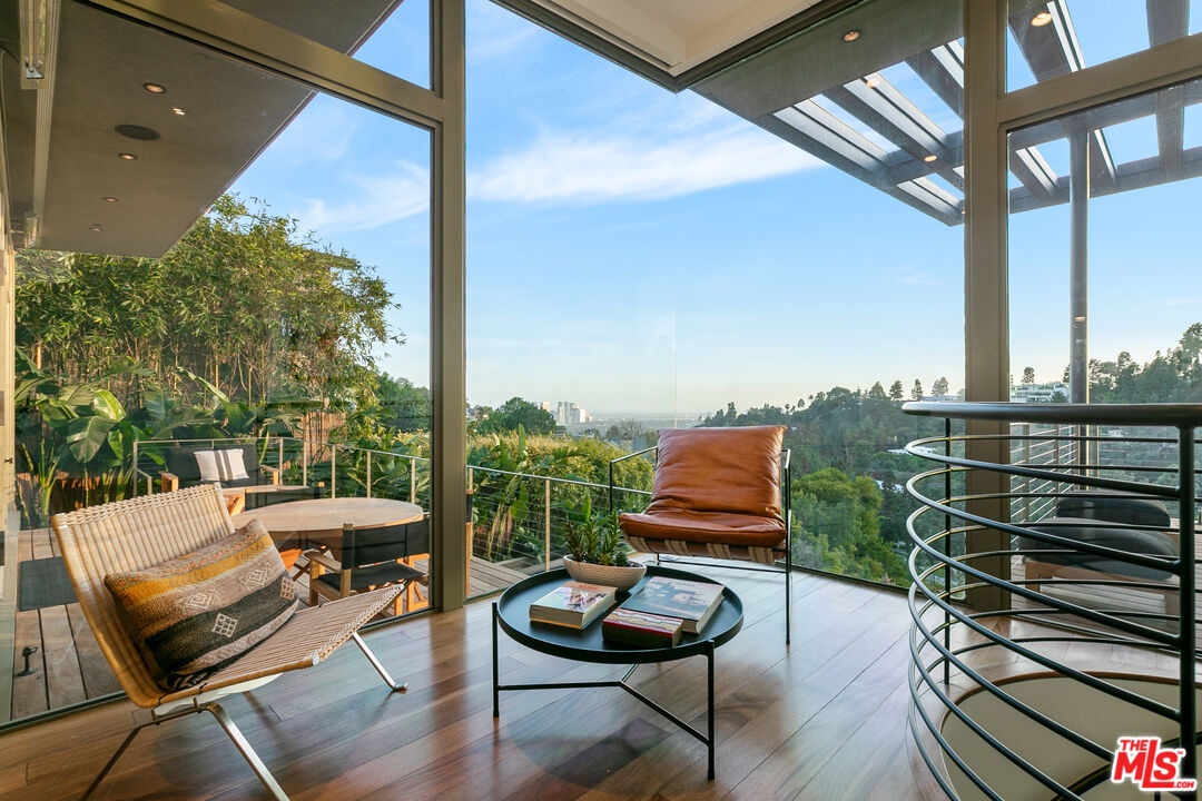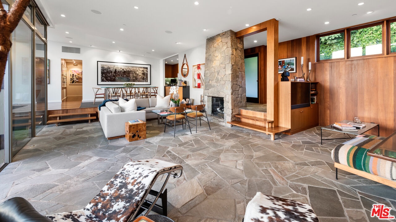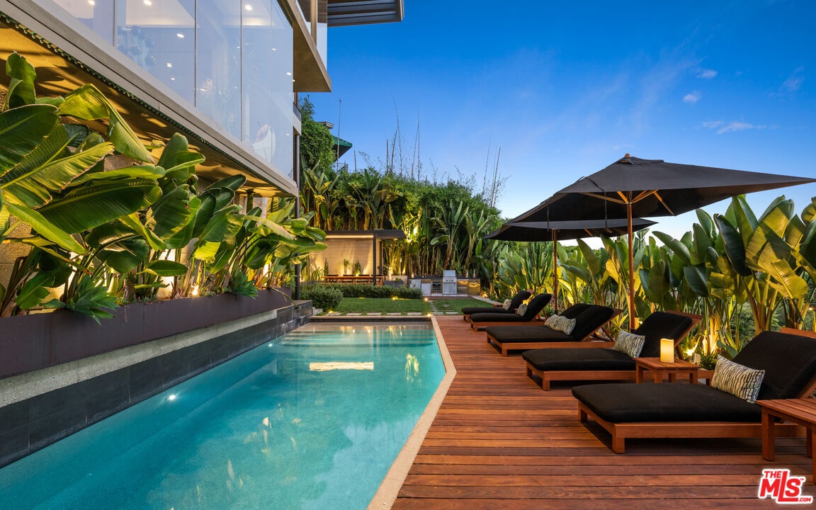Perched on a quiet street in the coveted Crest Streets of Beverly Hills, this iconic mid-century architectural masterpiece originally designed in 1948 by legendary designer Greta Grossman as her personal residence seamlessly blends timeless design with modern luxury. A dramatic arrival opens into sun-drenched living spaces where walls of glass frame sweeping city lights and lush canyon views, creating an effortless indoor-outdoor flow that defines the best of Southern California living. The open living and dining areas spill onto expansive patios and decks, perfect for sunset cocktails or intimate gatherings under the stars, while a sleek, thoughtfully updated kitchen anchors the home with style and functionality. Upstairs, serene bedrooms - including a stunning primary suite with breathtaking views and a private terrace - offer tranquil retreats above the city, with a total of 3 bedrooms plus a dedicated office. Downstairs, a versatile media lounge or guest suite adds flexibility for entertaining or extended stays. Outside, a private resort-style setting awaits with a sparkling pool, spa, grassy yard, and multiple outdoor entertaining areas surrounded by mature landscaping and total privacy. A rare architectural gem with pedigree, views, and undeniable Beverly Hills sophistication, this one-of-a-kind residence delivers the ultimate mid-century lifestyle in one of the city's most coveted hillside enclaves.