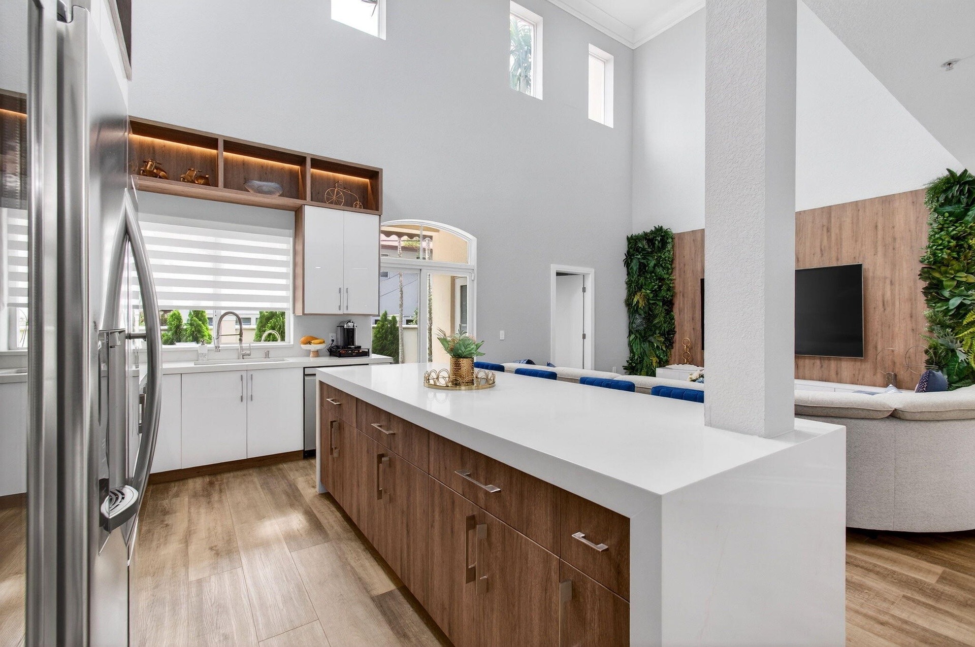 Don't miss this exceptional three-story townhome, masterfully remodeled with luxurious finishes and offered fully furnished for a truly turnkey experience. Just two blocks from award-winning Deerfield Beach, this residence embodies the ultimate coastal lifestyle — enjoy effortless day-to-night strolls along the shoreline, with vibrant dining, boutique shopping, and entertainment just moments away. Impeccably maintained, this home reflects true pride of ownership at every turn. Inside, you'll find impact glass throughout, stunning wood-look tile flooring, and designer lighting that creates a sophisticated, cohesive aesthetic. The thoughtfully curated kitchen opens seamlessly to the main living area, perfect for both refined entertaining and relaxed everyday living. The second level features two spacious ensuite bedrooms, while the entire third floor is dedicated to a private primary retreat — complete with a loft-style sitting area and an expansive balcony offering wide-open, tranquil views. Ample, well-designed storage enhances both form and function. Additional features include a cabana bath, a lushly landscaped private backyard oasis, an elevator shaft for future installation, and a spacious two-car garage. A rare opportunity to own a meticulously designed coastal residence where luxury, comfort, and location converge.