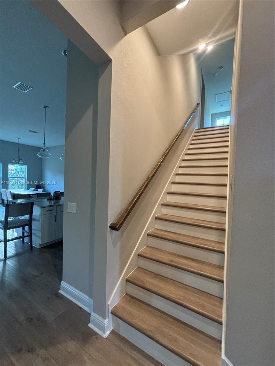 This stunning Swann IV two-story home offers a versatile layout designed to accommodate any lifestyle. The interior showcases a light, coastal-inspired design with Sonoma Linen-style cabinets, quartz countertops, and luxury vinyl plank flooring throughout. The open-concept main living area provides a seamless flow for everyday living and entertaining, while the owner’s suite is privately situated away from other rooms for added comfort. The master bath includes a walk-in shower, dual vanities, and an oversized walk-in closet. Upstairs, you’ll find a spacious den and powder room, offering plenty of space for family activities or guests. Additional highlights include a den with stylish swing doors and a private fourth bedroom and bath, perfect for visiting family or overnight guests.