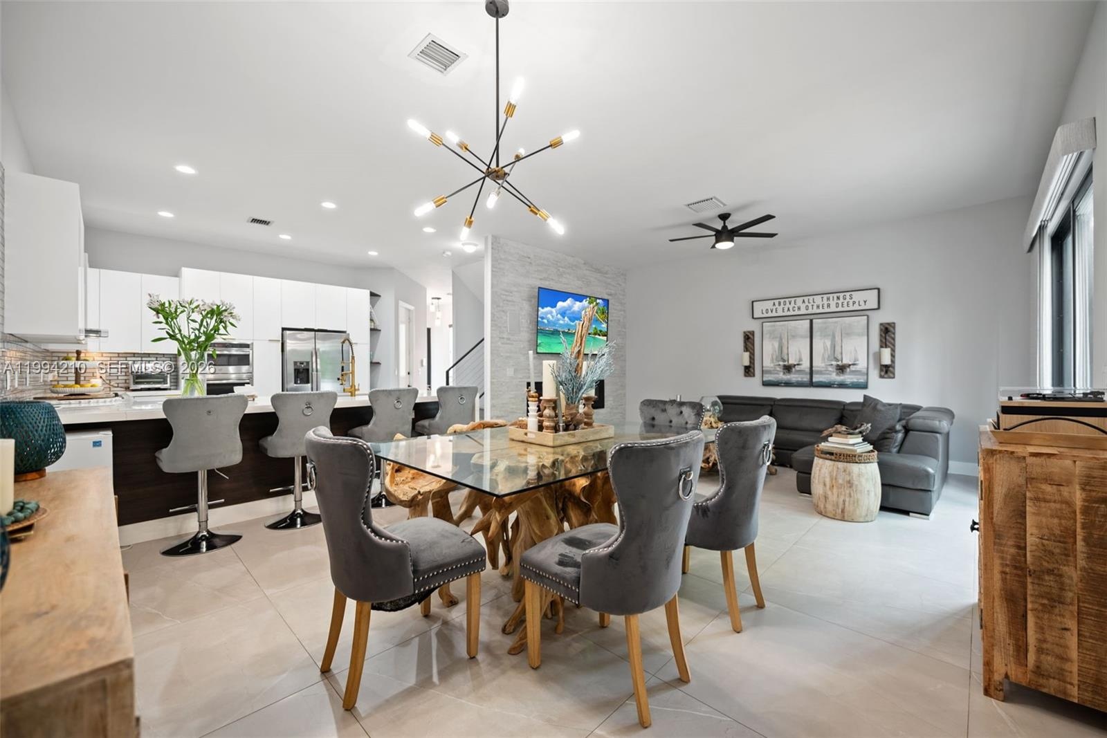 Step into refined South Florida living in this 2020 impeccably designed corner-unit newer construction townhome residence. The open-concept living space is anchored by a show-stopping chef’s kitchen featuring quartz countertops with a dramatic waterfall edge, custom Italian cabinetry, gold hardware, premium stainless steel appliances, and a built-in wine cooler—perfect for entertaining in style. The living area is a true centerpiece, showcasing a striking stacked stone feature wall with a 72” electric fireplace and integrated surround sound, while a designer chandelier defines the dining space. The first level is completed by a stylish powder room and oversized 2-car garage with an epoxy finished floor. Upstairs, the expansive primary suite offers a private retreat with a spacious walk-in closet and spa-inspired bath featuring dual vanities, a soaking tub, and a rainfall shower. Three additional bedrooms, a full bath, and a dedicated laundry room provide plenty of space for everyone. Ideally located in the heart of Dania Beach, just minutes from Dania Pointe, pristine beaches, fine dining, and major highways including Interstate 95, 595, and Florida Turnpike—this home delivers the perfect blend of luxury, lifestyle, and location.