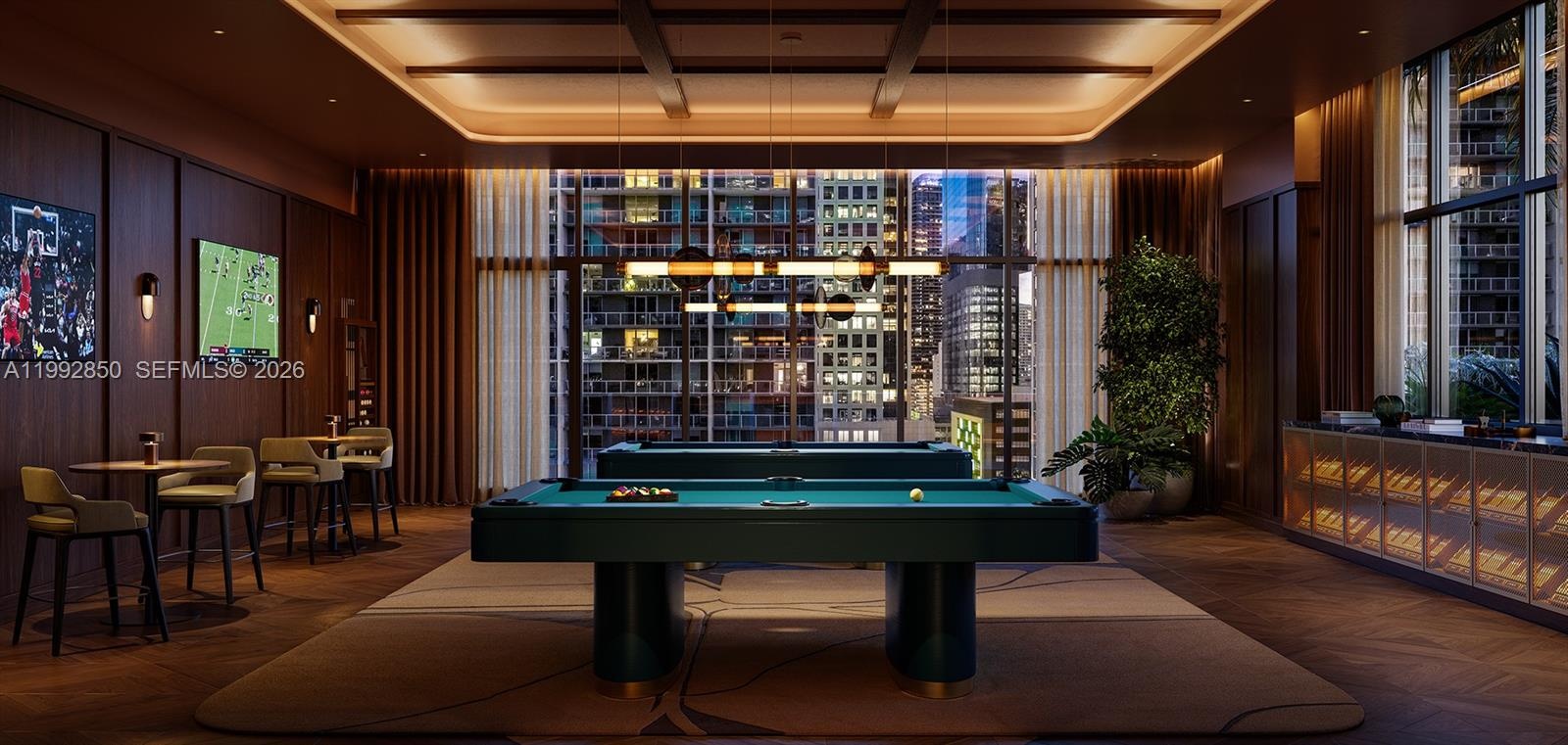 Resort-style amenities include pool deck, fitness center, simulators, private cinema, wine lounge, concierge, valet, and 24-hour security.