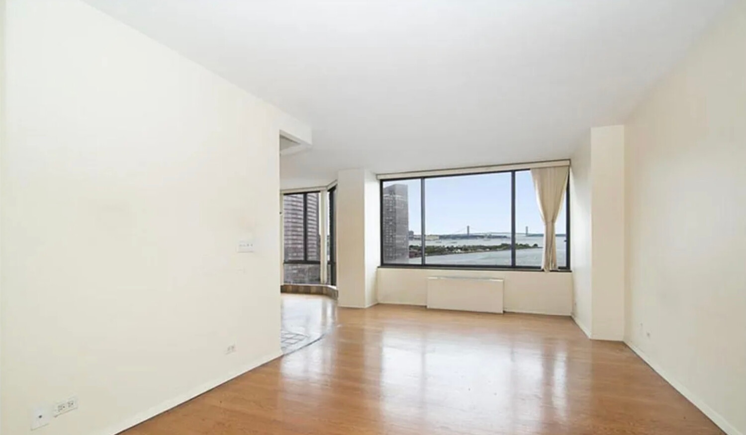 Perched on a high floor, this sun drenched residence offers stunning views of the Hudson River, the Statue of Liberty, and Downtown Manhattan.