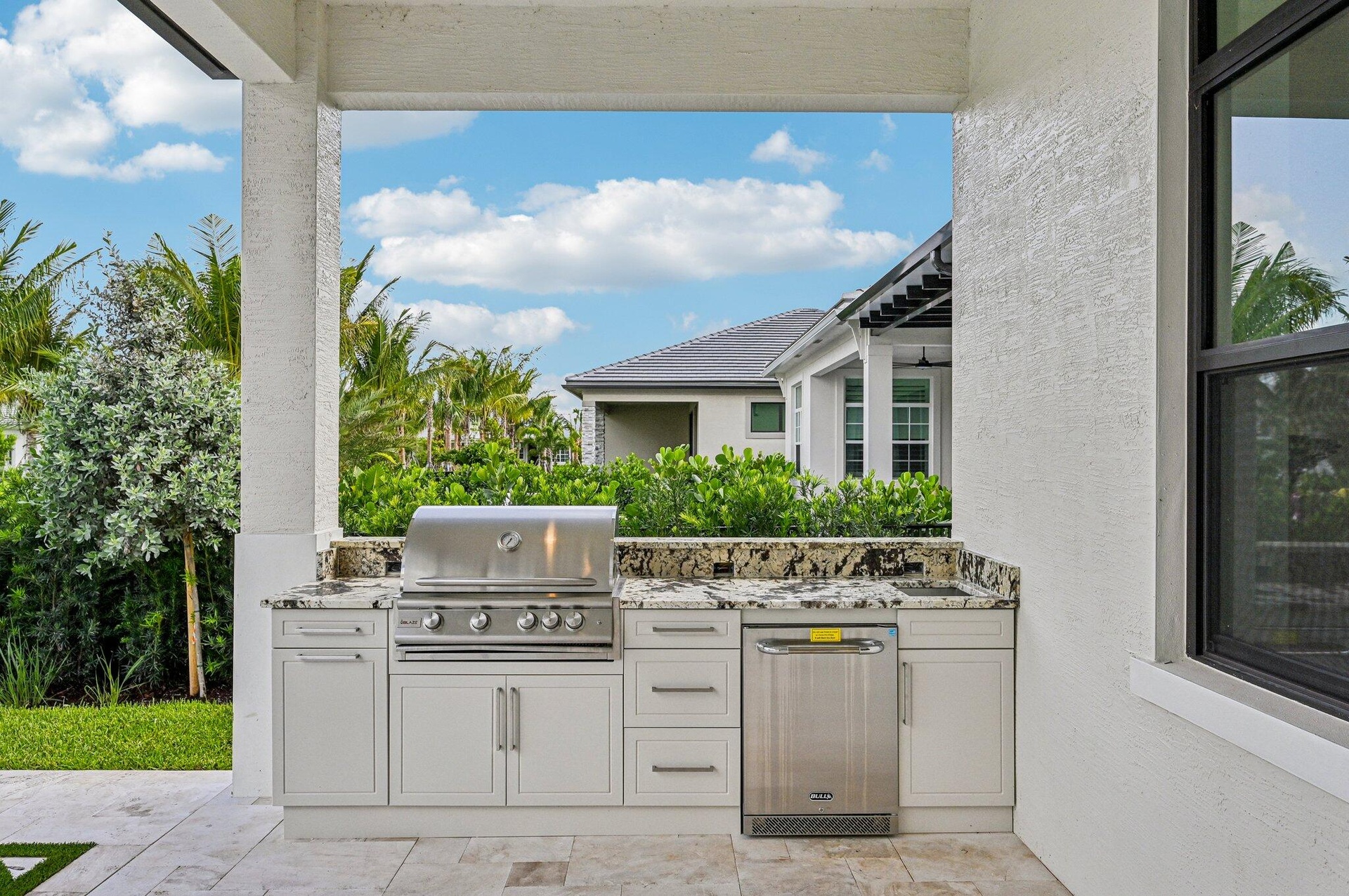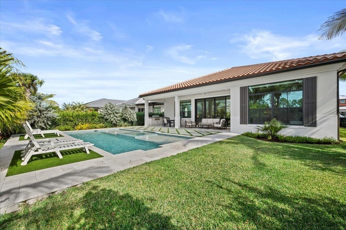 Available Fully Equipped and Furnished for 6 Months+. This stunning home is located in the prestigious community of L'Ambiance at Avenir. This thoughtfully designed 3-bedroom, 3-bathroom home offers a spacious single-level layout, perfect for those seeking style, comfort, and ease of living. The heart of the home is the open-concept great room and chef's kitchen, featuring premium quartz countertops, stainless steel Cafe appliances, a large center island, and a walk-in pantry, ideal for entertaining or everyday living. Step outside and experience your private backyard retreat complete with a custom pool, soothing spa with therapeutic jets, and a fully equipped outdoor kitchen, dining and lounge areas, under a covered lanai w/ 2 ceiling fans, perfect for relaxing or hosting gatherings. The owner's suite is a true sanctuary, offering a spa-like bath with dual vanities, a walk-in shower, and a generous walk-in closet. Two additional bedrooms, each with access to their own full bath, provide privacy and comfort for guests or family. Designer upgraded light fixtures and modern ceiling fans throughout the home add a touch of elegance. This home offers access to world-class amenities at the grand Great Egret Clubhouse with everything imaginable including Cutting Edge Sports Complex, 12 Pickleball Courts, 9 Tennis Courts, Pro Shop, 24/7 Fitness Center with State-of-the-Art Equipment, Open Play Field, Full-Sized Basketball Court, Sauna & Steam Rooms, Massage Rooms, Massage Rooms, Indoor & Outdoor Bars, Pool Area with Hammocks & Cabanas with Daybeds, Resort-Style Pool with Beach Entry & Spa, Lap Pool, Lounge Area, Catering Kitchen, 2 Card Rooms, Outdoor Party Pavilion, and a Playground. Don't miss the opportunity to make this TURNKEY home your residence for the next 6+ months, schedule your private tour today!