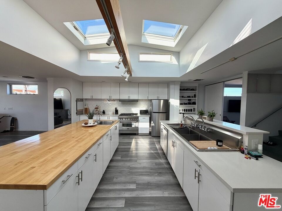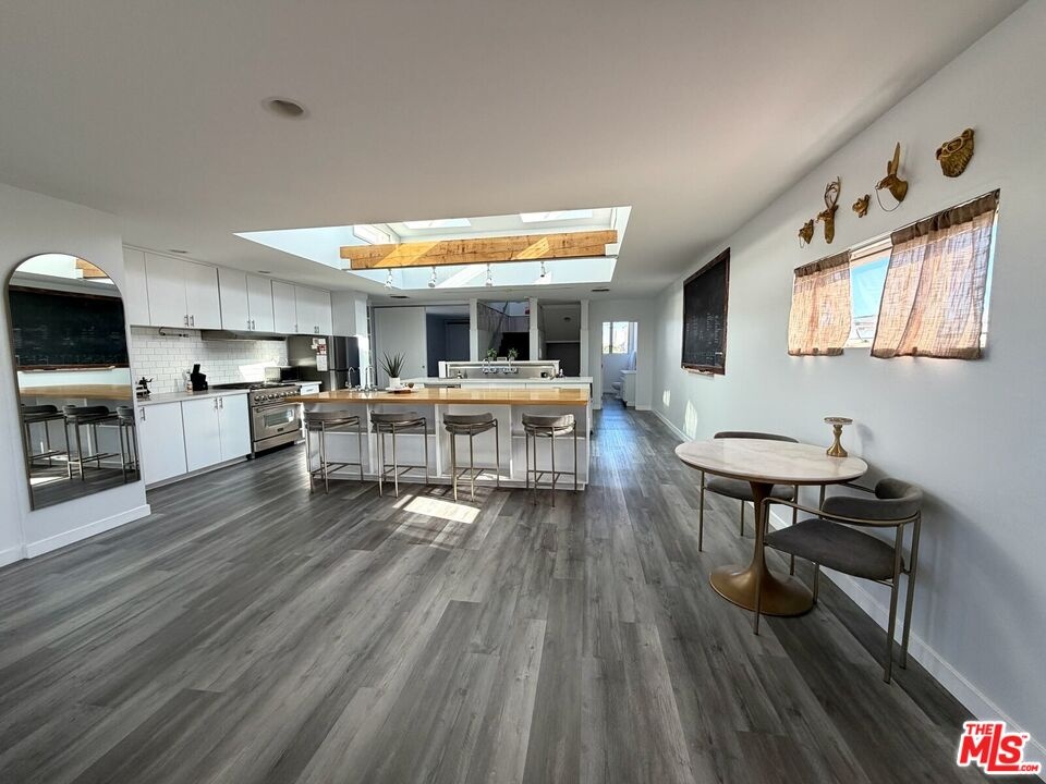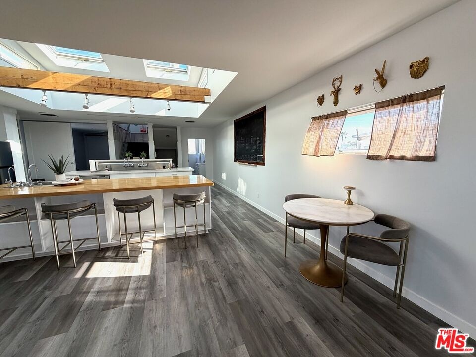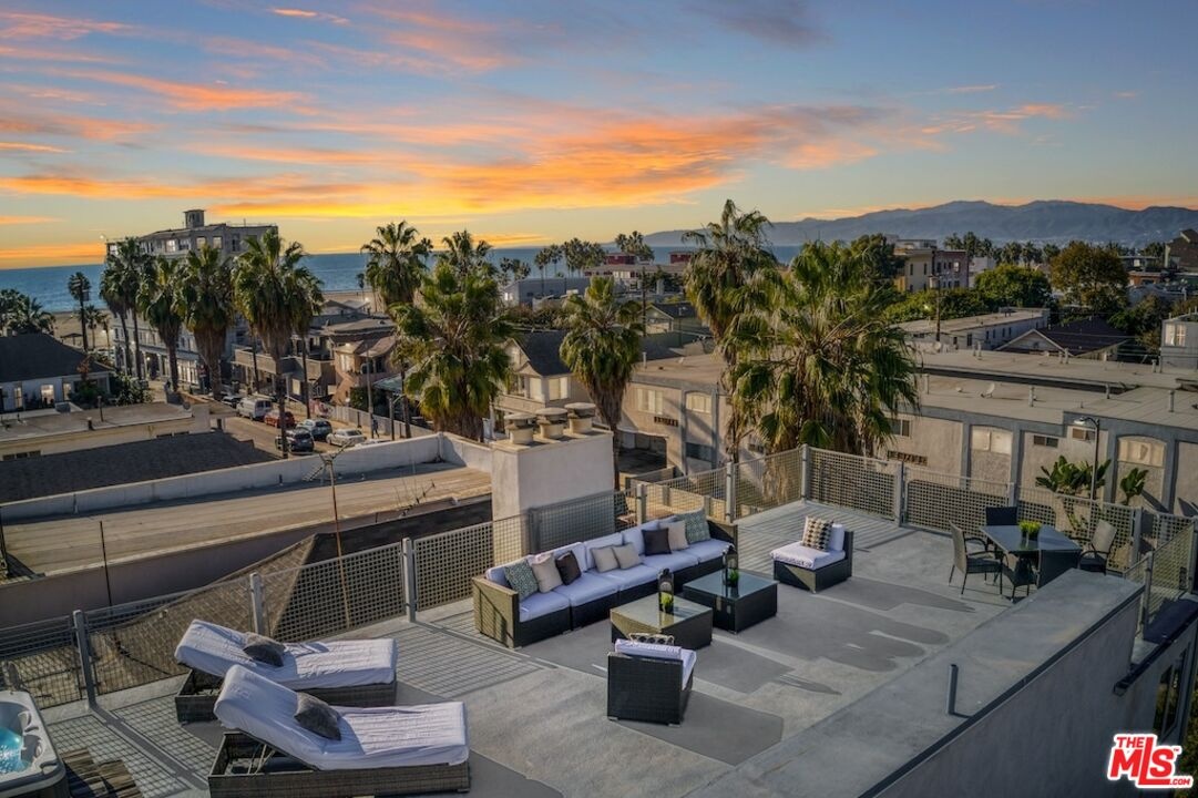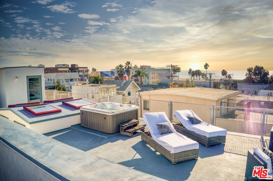 Soho Meets Venice Beach - One Block from the Sand! This expansive and airy 1 bedroom, 2 bath upper unit spans 2,400 sq. ft., with a versatile den that can serve as a second bedroom. The industrial chic design boasts high ceilings, skylights, floor to ceiling windows, polished concrete floors, a wide open kitchen, and a fireplace. A private staircase leads to a sprawling rooftop deck with a jacuzzi and lounge area, offering spectacular 360 degree panoramic views of the San Bernardino Mountains and the ocean, perfect for sunset watching. Additional features include a dumbwaiter elevator, gated 2 car parking, and a prime location near the beach and Main Street. Just a short walk to the trendy Abbot Kinney Blvd. and Rose Avenue shopping districts, with upscale boutiques, restaurants, and wine bars. This home is also near Silicon Beach, the Venice Canals, and top rated schools like Coeur d'Alene Elementary and Claire Fountain School. Experience the best of Venice Beach living in this unique and contemporary space! PS: Furnishings are not included in the lease; however, the current tenant is open to selling them separately.