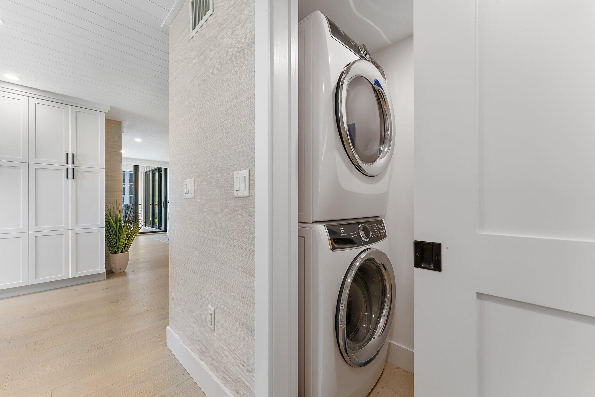 This uniquely designed, professionally renovated home is situated just steps from the Caribbean clear Intracoastal Waterway, offering unobstructed views from all main rooms! The 3 bedroom, 2.5 bath split bedroom floor plan lives more like a single family home, offering privacy for all. Unit features include full size washer and dryer, huge master closet, full ice machine and refrigerated wine storage.The ground floor end unit allows for private entry and back door access, closest to the heated community pool, clubhouse and grilling area. Take advantage of the kayak, paddleboard and bike storage, as well as private tennis and pickleball courts. The village of Tequesta is a special, cozy community where a 5-10 minute walk reaches many local restaurants from fun dining to fine dining! Electric, cable, internet, water, sewer, and biweekly cleaning included in rent.