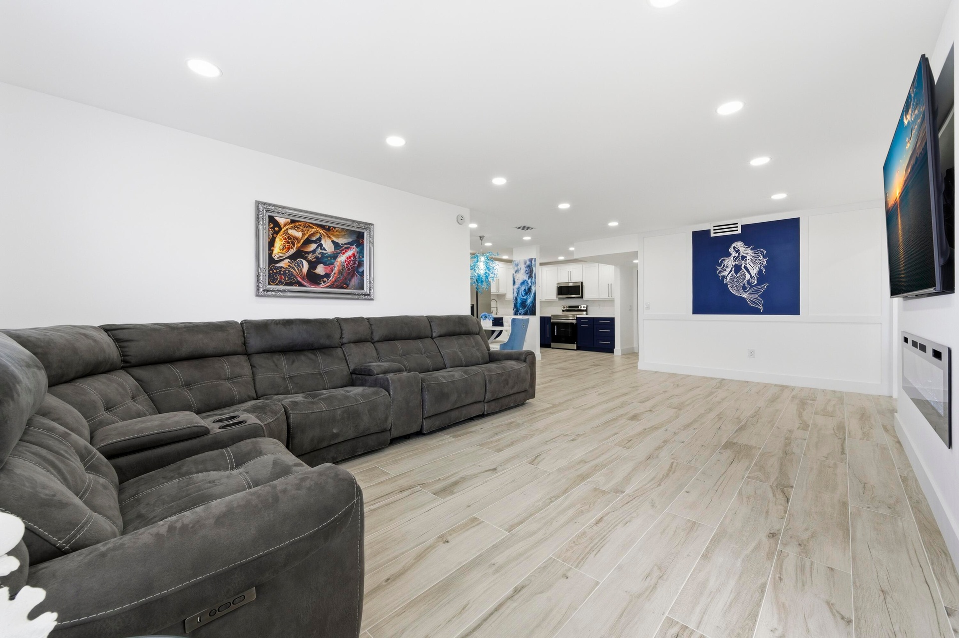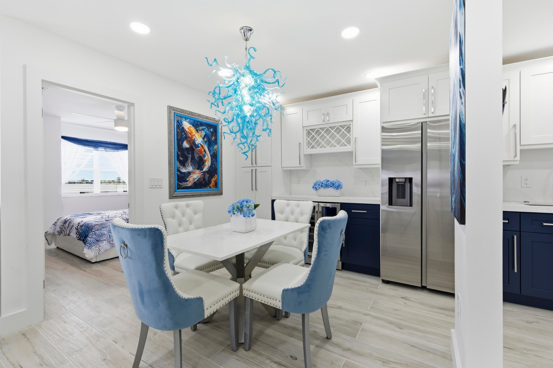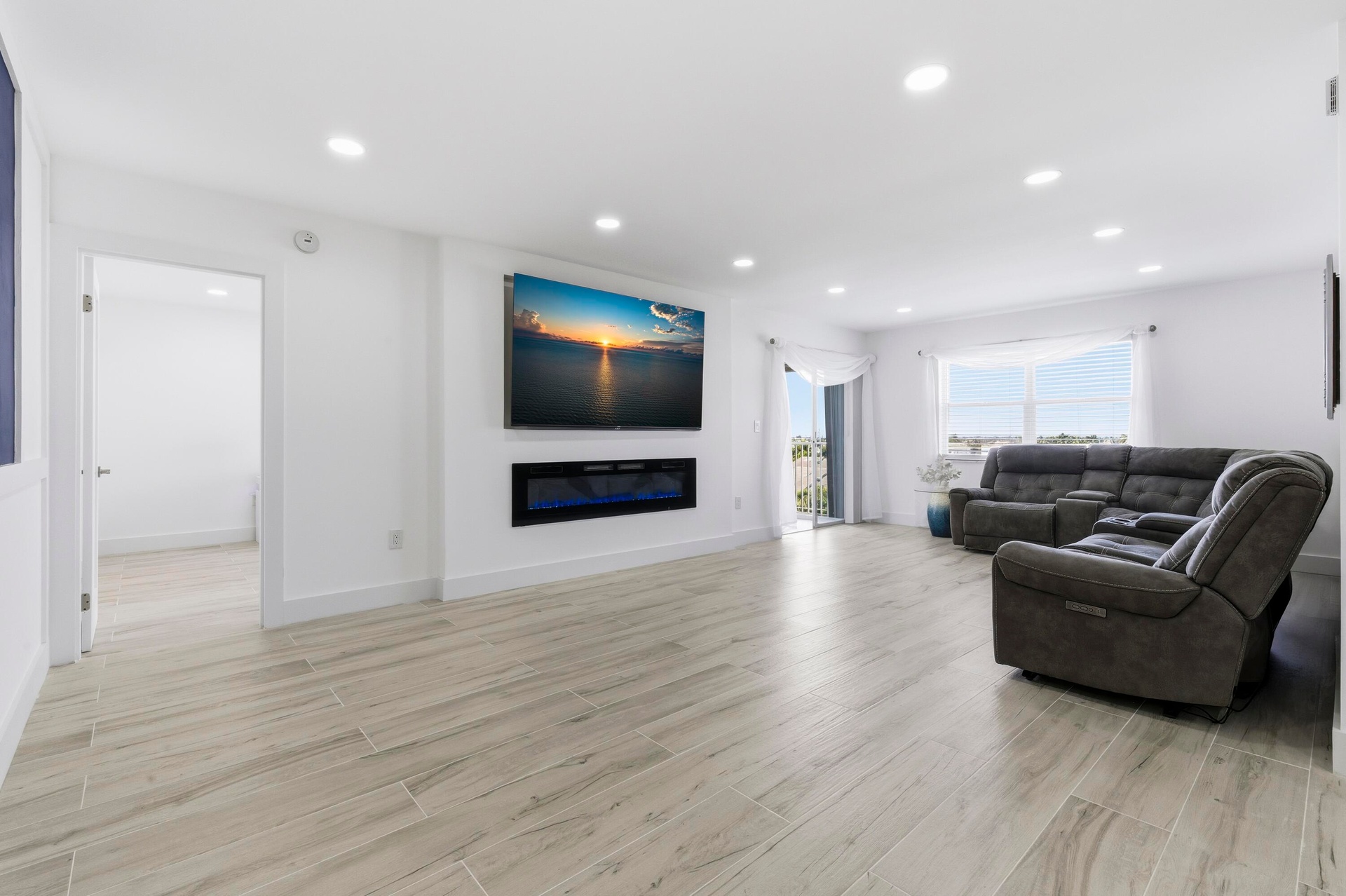Experience beachfront luxury in this fully renovated 2-bedroom, 2-bath condo. This sophisticated residence features an open floor plan with brand-new kitchen cabinets, stainless steel appliances, and a bar area with a wine cooler, perfect for entertaining. The bathrooms have been modernized with double sinks and upscale fixtures. Enjoy the seamless tile flooring throughout, complemented by high hats and stylish finishes. Relax in the spacious living area with an 86'' TV and a cozy fireplace. The master suite boasts a walk-in closet and 2 additional closets; the condo comes fully furnished with an in-unit washer and dryer. The community offers an array of amenities, including a pool, gym, billiard room, cards room, barbecue area, party room, and sauna, providing a resort-style lifestyle. Short term lease with utilities such as water, trash, cable, internet, and electricity are all included, making this an ideal turnkey residence for those seeking comfort, style, and beachside living. Walking distance to EAU Palm Beach Resort & spa, coffee shops, bars, restaurants, and supermarket.