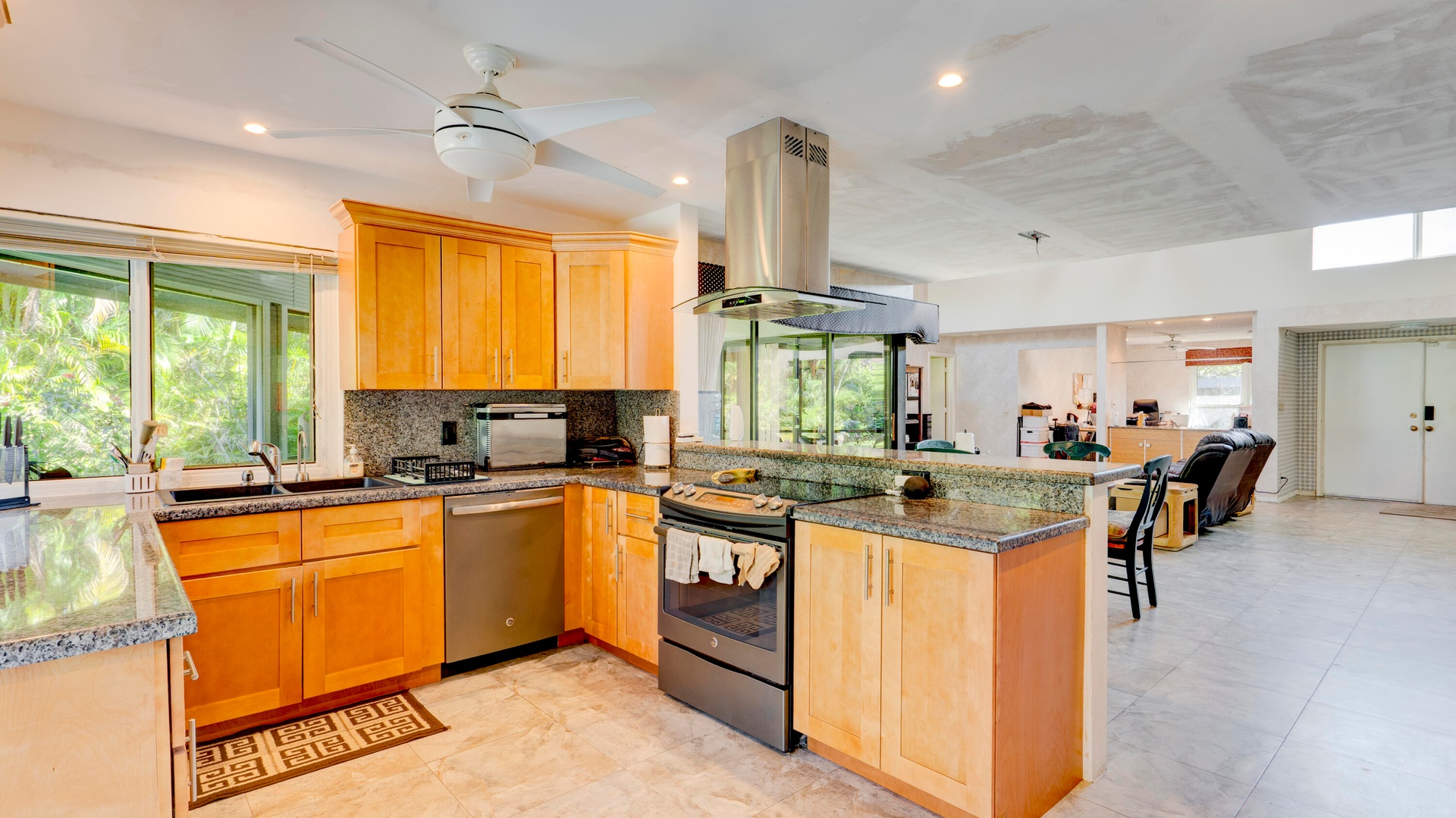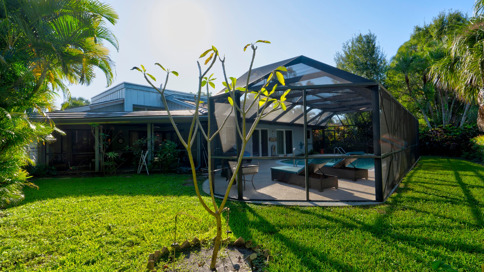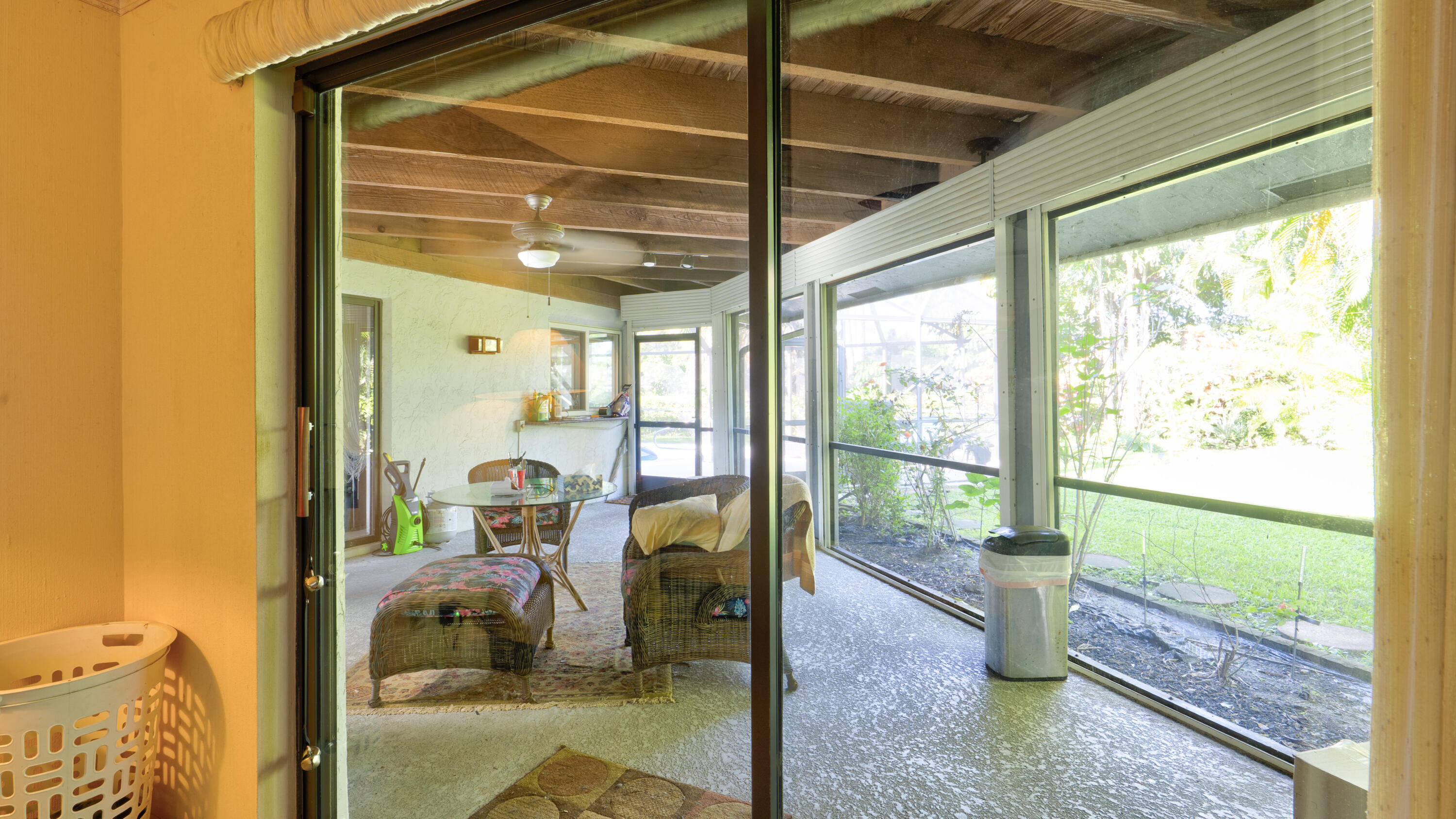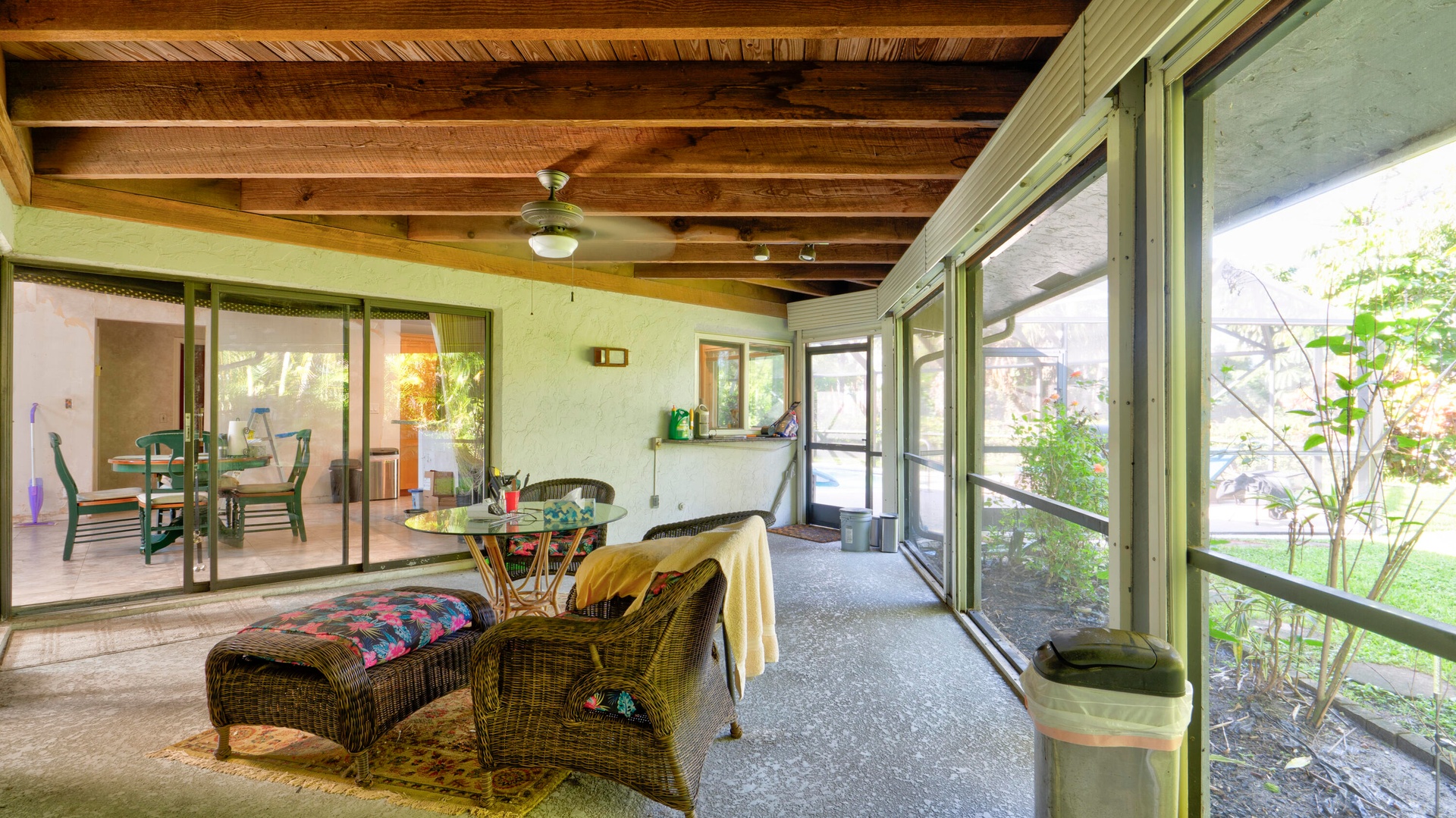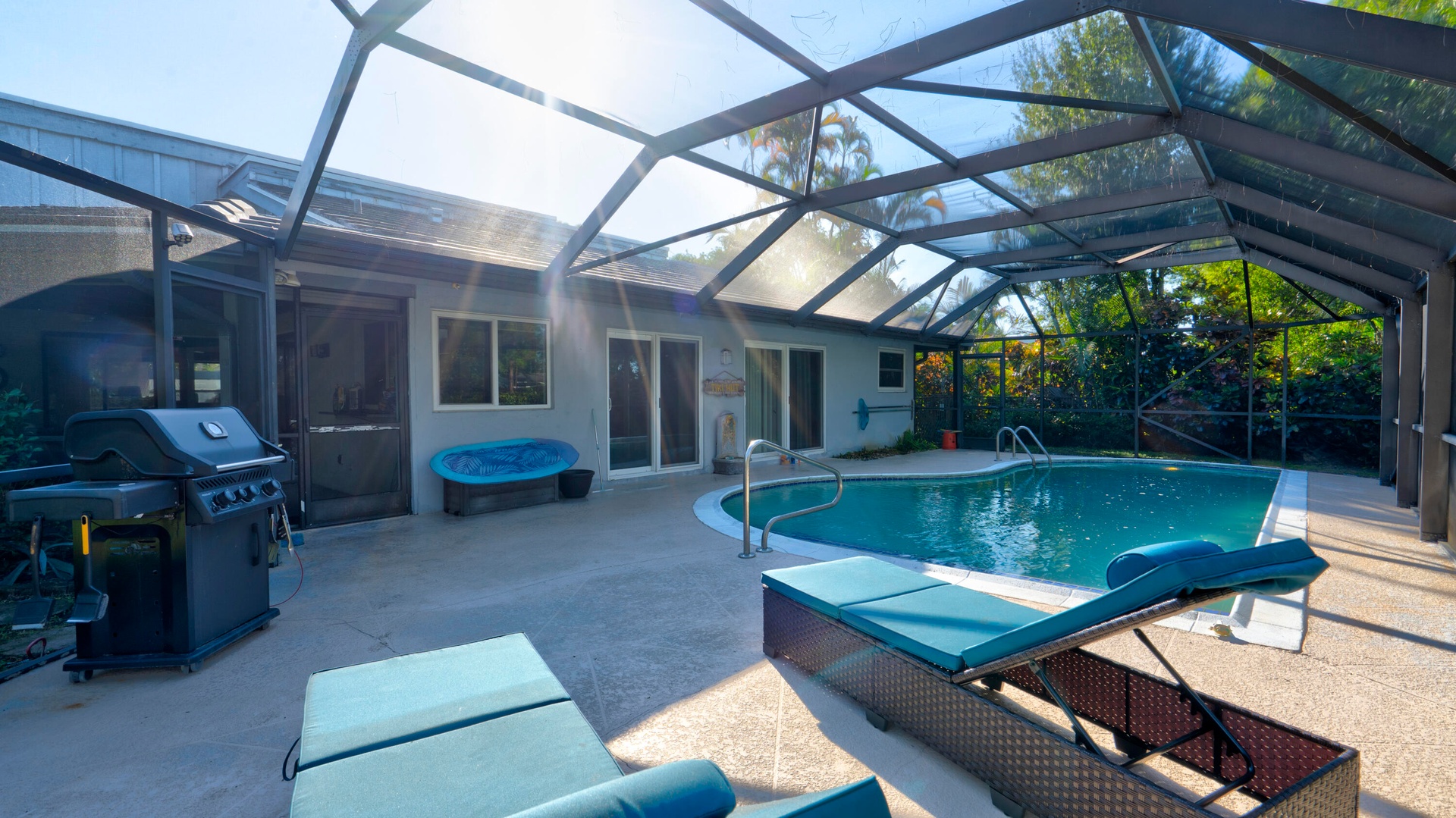 The living areas flow effortlessly to the outdoors through sliding glass doors that open to the pool and patio. A lanai with screened pool enclosure creates the perfect setting for all-weather barbecues, entertaining, or simply relaxing poolside. Beyond the pool, the backyard borders a peaceful bird sanctuary, where the sounds of chirping birds and a variety of local wildlife bring nature to your doorstep. Recent renovations add tremendous value and peace of mind. In 2025, a new refrigerator was installed (still under warranty). Major updates in 2023 include a brand-new kitchen, new roof, gutters, tile flooring (with additional tiles available for finishing the bathrooms), impact windows by Storm Tight in all windows with exception of the patio and dining room sliders which are protected by the lania and the surrounding roladens. In 2021 both HVAC and water heater was installed and The pool was resurfaced in 2020, pool heater added in 2023, ensuring years of enjoyment ahead. This thoughtfully updated home combines modern conveniences with seamless indoor-outdoor living, and an opportunity to still make this your very own masterpiece, like an open canvass where your imaginantion is then the only limitation! This serene natural backdrop is a rare opportunity within the prestigious Seagate Golf Club at the Hamlet community.