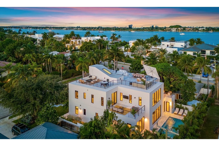 Experience contemporary elegance at 214 28th Street, a sophisticated residence in the highly desirable Northwood Historic District of West Palm Beach. This 4-bedroom, 5.1 bath home combines modern design with exceptional amenities, offering both comfort and style in a prime location. Designed for elevated living and entertaining, the home's defining feature is its expansive nearly 2,000-square-foot rooftop terrace, an impressive private retreat ideal for dining, lounging, and taking in panoramic city and intracoastal views. The interior features a spacious open layout, a dedicated home office, and a luxurious ground floor primary suite with a freestanding soaking tub, designer finishes and his and hers custom walk-in closets. The second floor features four bedrooms each with custom walk-in closets, along with three private balconies that extend the living space outdoors and create a seamless indoor-outdoor flow.The inviting backyard includes a pool, jacuzzi, and steam room, perfect for relaxation or entertaining. With a two-car garage and proximity to downtown West Palm Beach, the Intracoastal Waterway, and Palm Beach Island, this property delivers the best of luxury living.