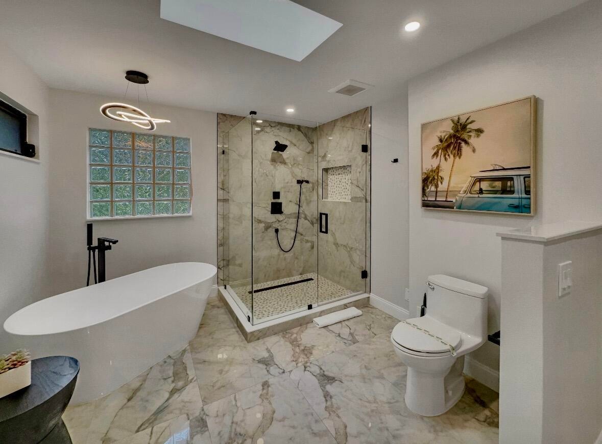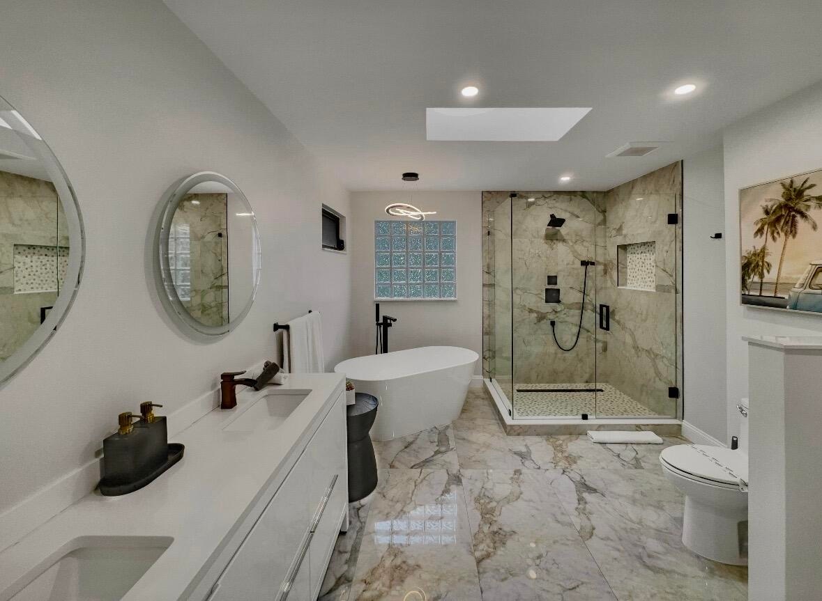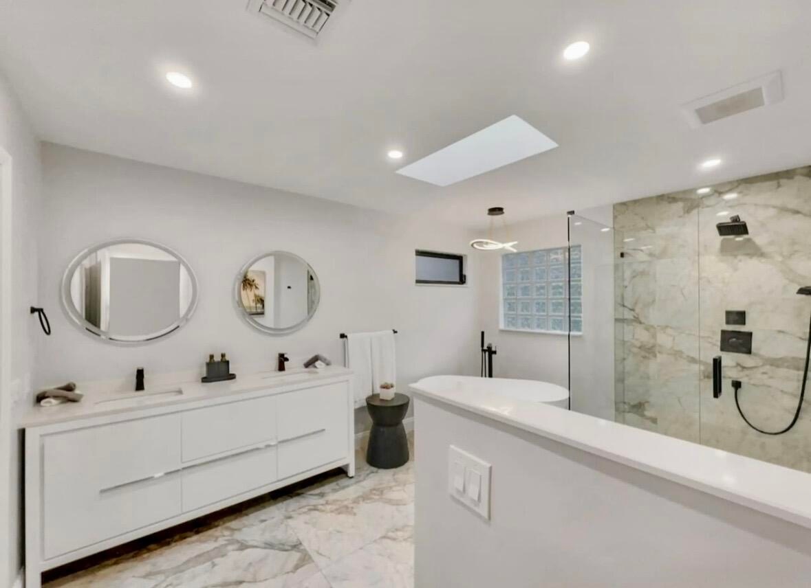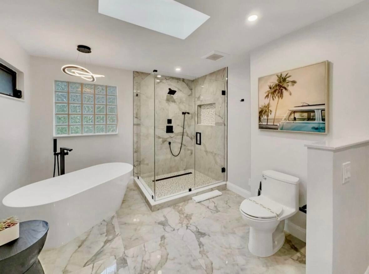 Step into the ultimate Florida lifestyle in this immaculately renovated 4BR/3BA pool home in the heart of Imperial Point. This rare find features two primary suites—one upstairs with a private dressing room and sunrise balcony, and another on the main level for ultimate flexibility. Inside, you'll find the perfect blend of warmth and luxury with real oak wood floors, a cozy wood-burning fireplace, and a chef's kitchen complete with granite countertops and stainless steel appliances. Every bathroom has been redesigned with marble flooring and high-end finishes to create a true spa-like feel. The backyard is a private resort built for entertaining, featuring a saltwater heated pool and hot tub surrounded by stylish pavers and a built-in outdoor bar with a dedicated TV area. Located just three miles from the beach and minutes from elite private schools, this home offers the perfect balance of comfort and convenience. Complete with a barrel tile roof and full storm protection, it's move-in ready and waiting for you.