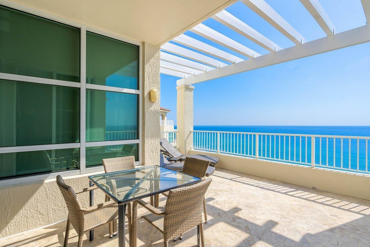 Top Floor Penthouse with stunning views from two balconies. Features include marble floors, designer furnishings, and an open floor plan. Toscana offers top-notch amenities like tennis courts, pools, valet, concierge, and a private beach club.