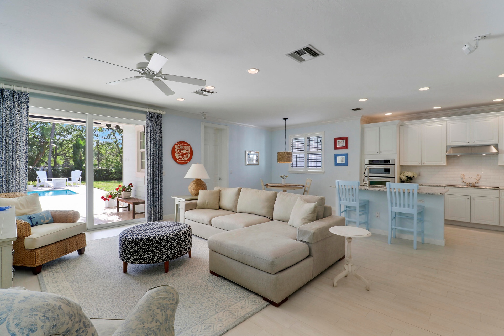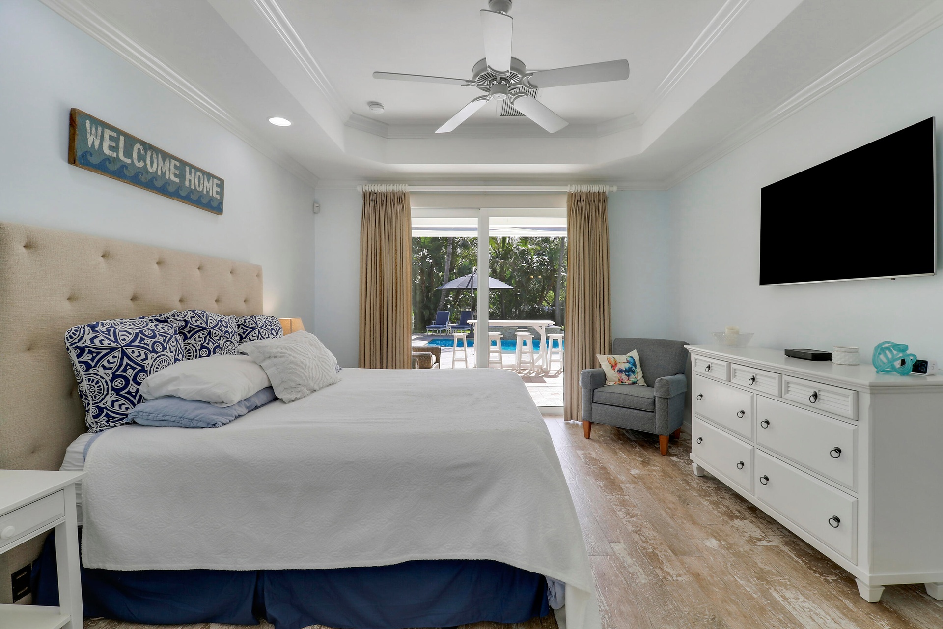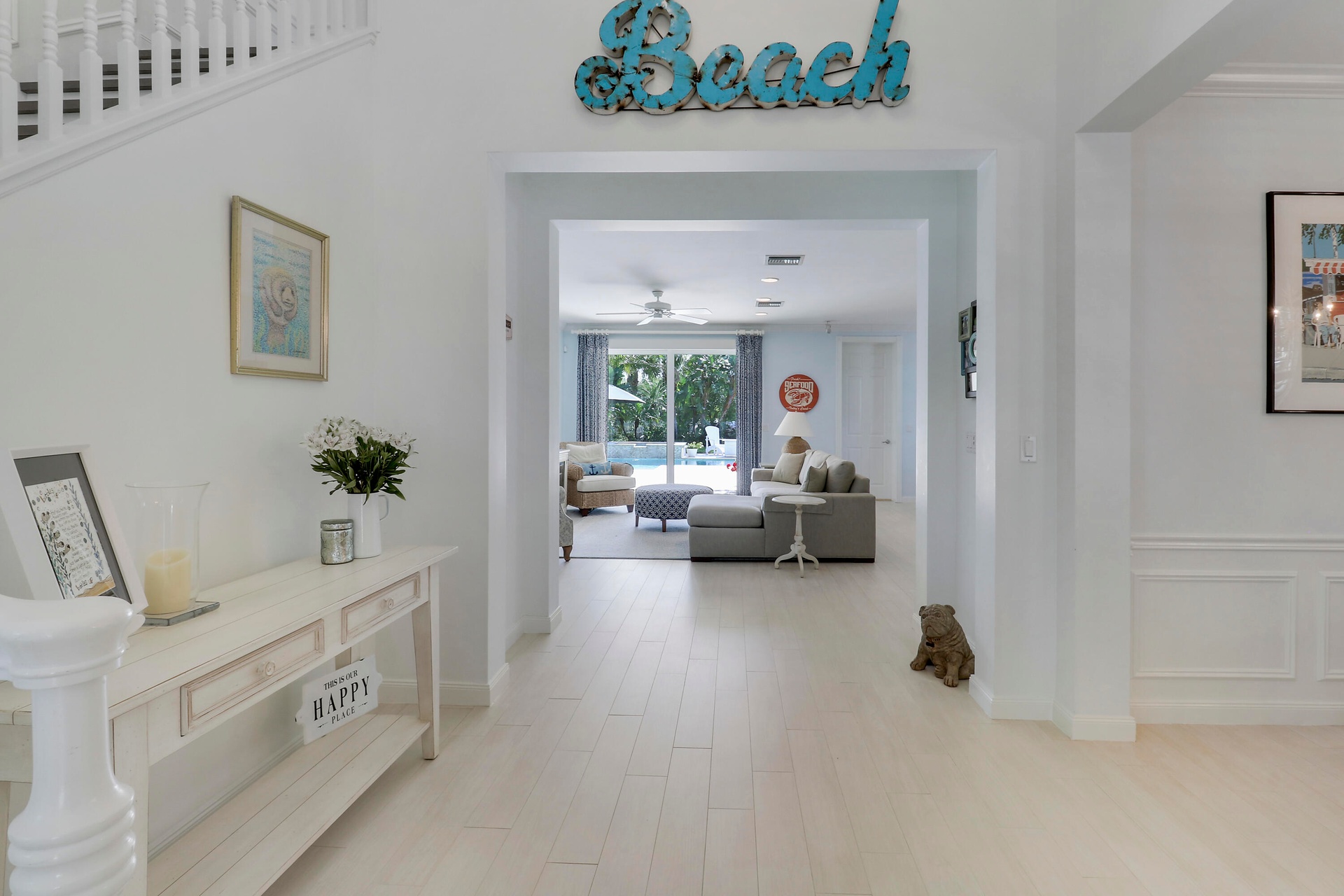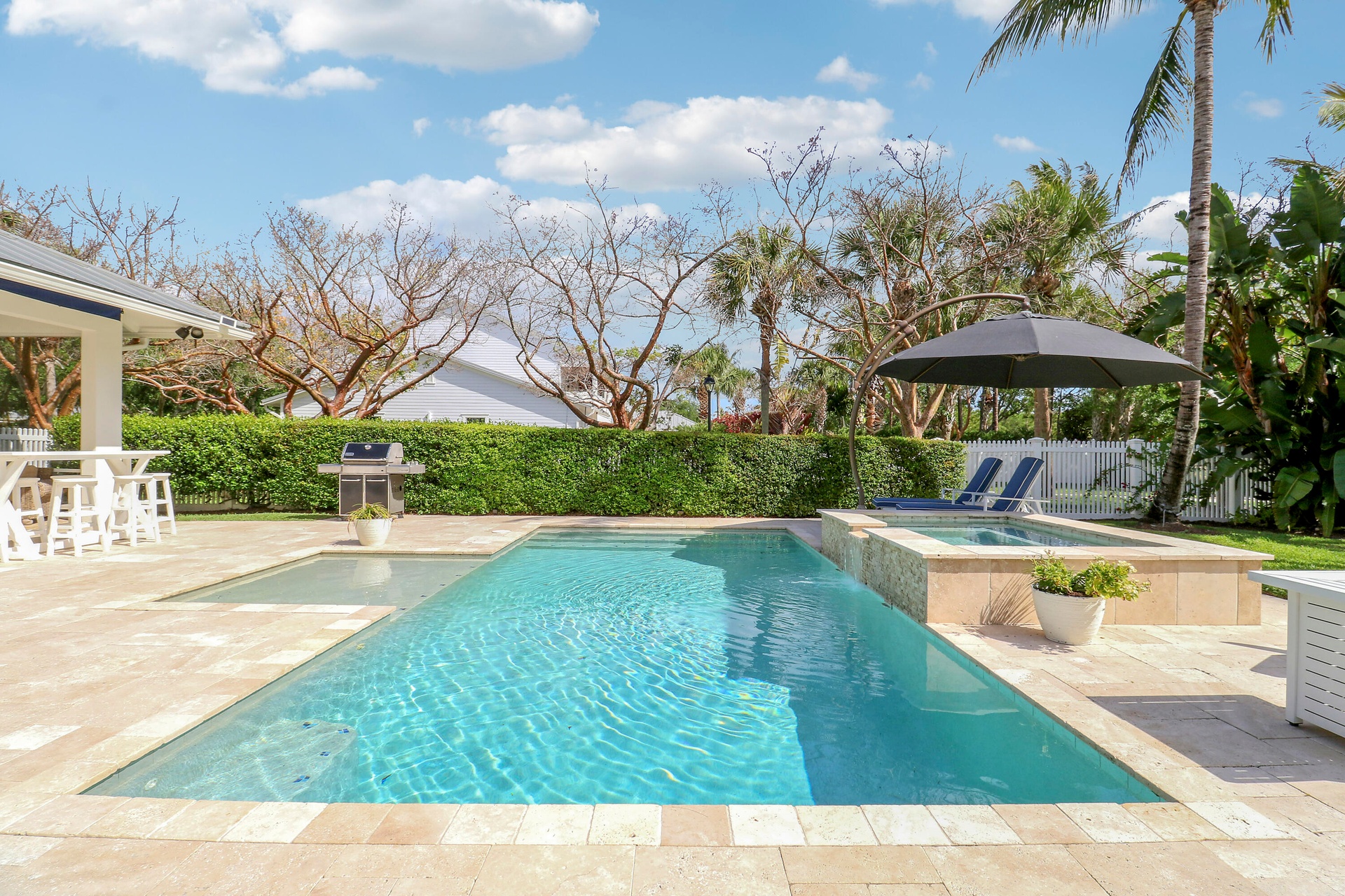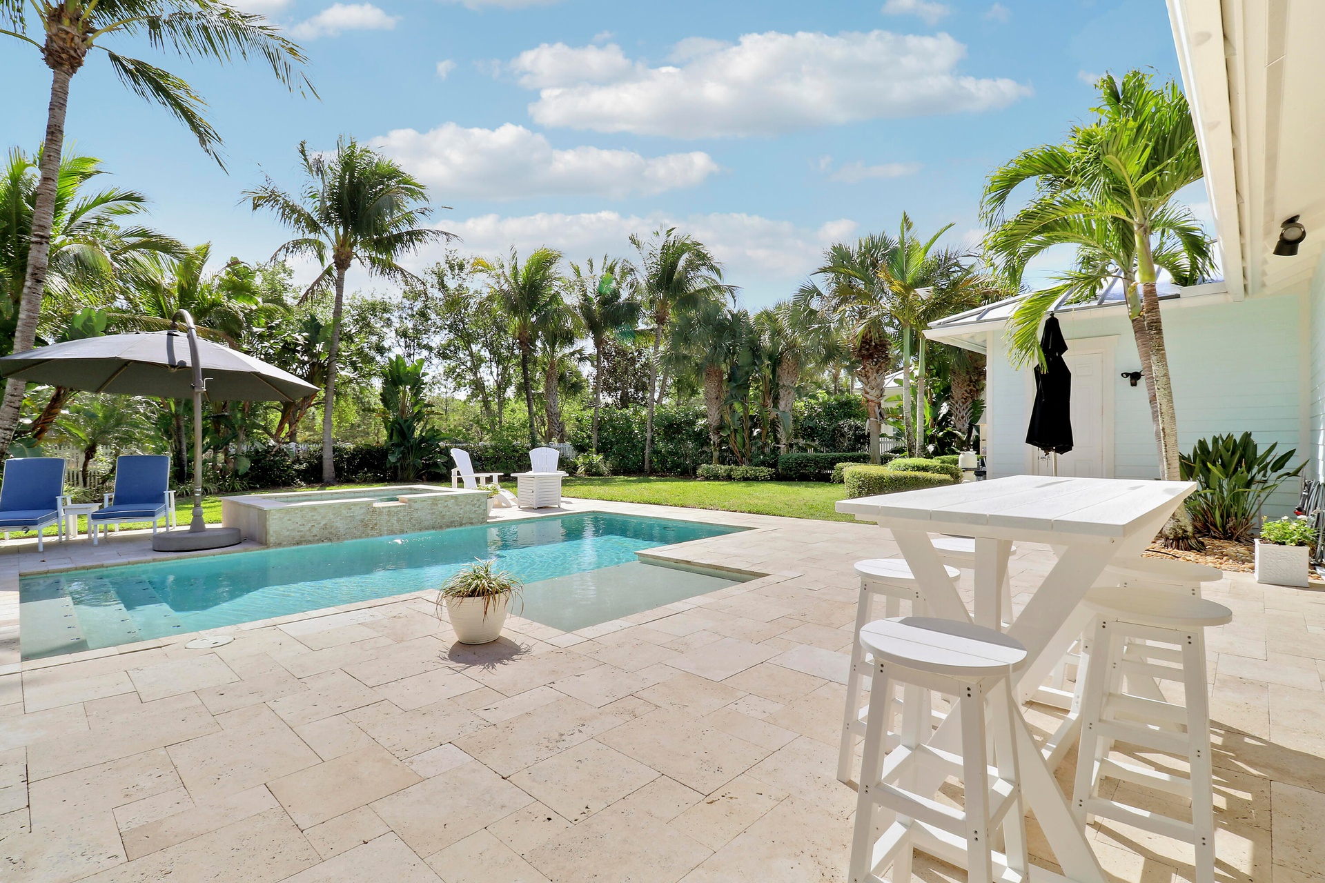 Rare oversized lot in the coveted Key West-style community of Mallory Creek in Abacoa. This beautifully upgraded home features wood plank-style flooring throughout, remote-controlled blinds, and full hurricane-impact windows and doors complemented by a durable metal roof. The private, fully fenced backyard is a true tropical retreat with a heated pool and spa, waterfall feature, extended travertine deck, covered lanai, and retractable awning—perfect for effortless indoor-outdoor living and entertaining. Recent upgrades include a 2024 A/C, 2025 pool heater, and 2024 pool pump. Impeccably maintained. Mallory Creek is a pet friendly community that offers 2 community pools, gym & in walking distance to Downtown at Abacoa events, Roger Dean Stadium, Pickleball and tennis courts and much more!