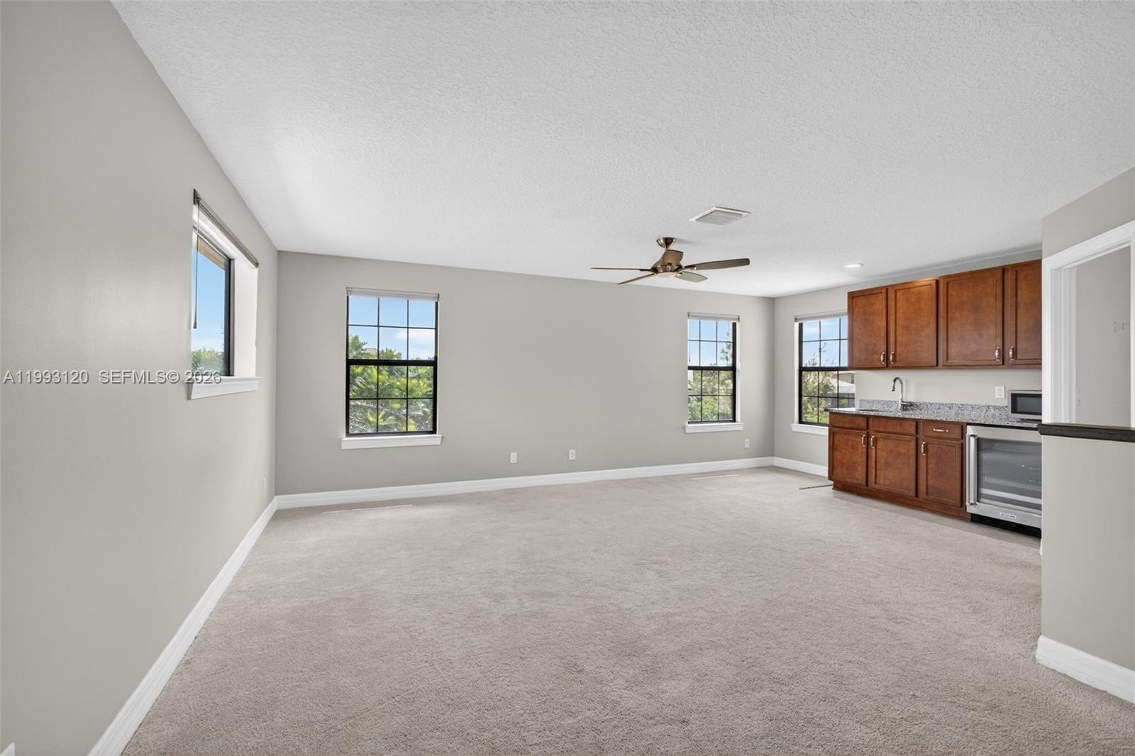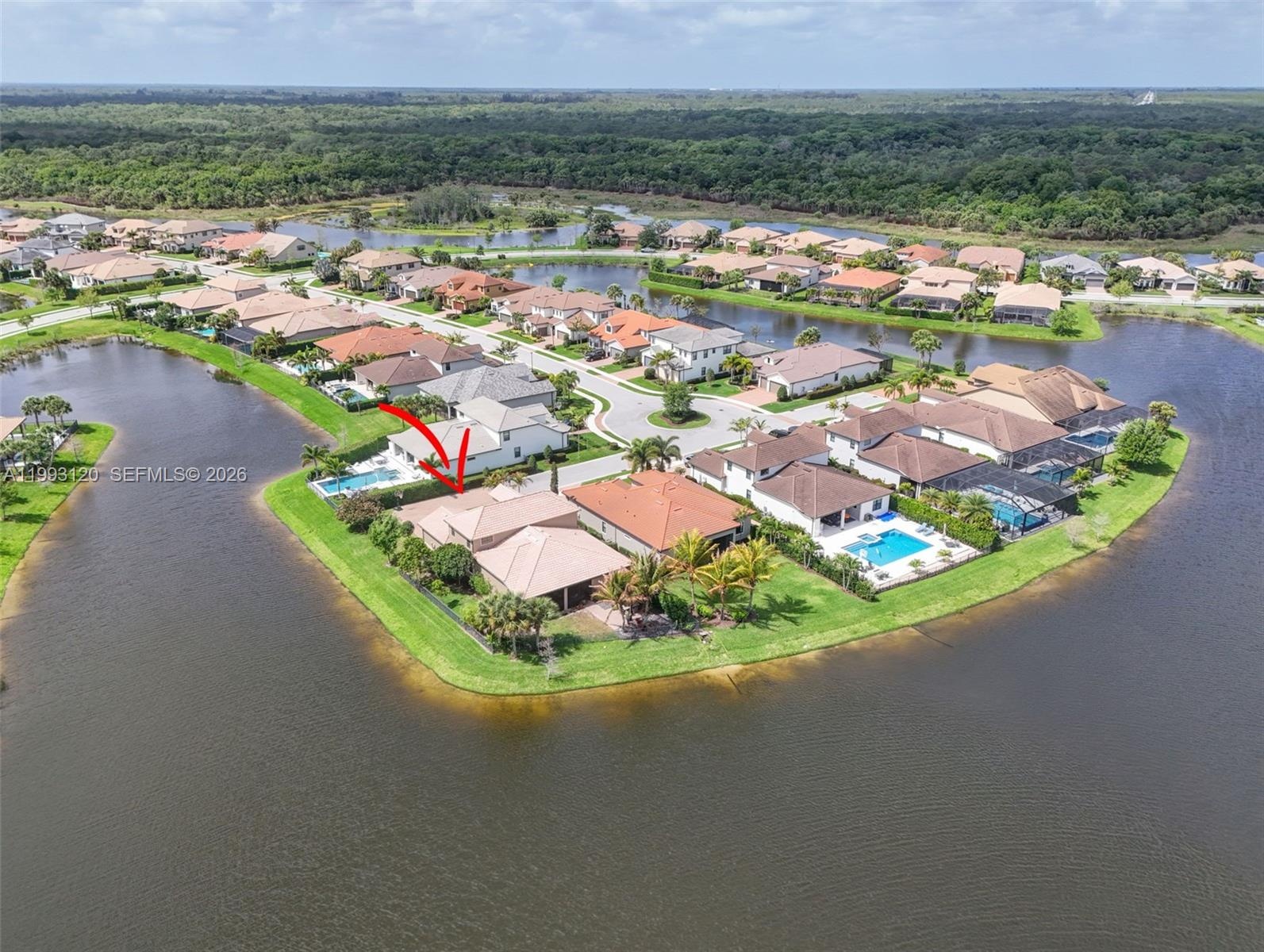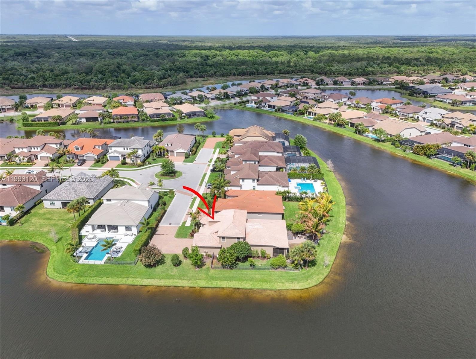 Experience breathtaking wraparound lakefront views from this exceptional 4 bedroom plus flex space, 4 bath Stonewater model home, ideally located on a quiet cul-de-sac within the highly sought after, gated community of Sonoma Isles. An extra long multi car driveway enhances curb appeal and provides ample parking for family and guests. Designed with elegance and functionality in mind, the home features a bright, open floorplan centered around a beautifully upgraded kitchen with espresso cabinetry, quartz countertops, oversized island, gas range, wall oven, & walk in pantry—perfect for entertaining and everyday living. The primary suite offers a peaceful retreat with tray ceilings, custom California closets, and a luxurious spa style bath. Additional highlights include a coffered ceiling great room, generously sized guest bedrooms, and a large second-floor loft/game room w/ kitchenette, private en suite, ideal for guests or multi-generational living. Outdoor living shines with an expansive covered and screened lanai, custom pergola, lush tropical landscaping, fenced yard, and room to add a pool, all overlooking tranquil lake views. A whole house natural gas generator adds convenience and peace of mind. Residents enjoy resort style amenities: clubhouse, pool/spa, fitness center, tennis/pickleball, gathering rooms, fire pit, and tot lot. Minutes from Jupiter’s beaches, golf, shopping, dining, and top rated schools, this home offers luxury Florida living at its finest.
